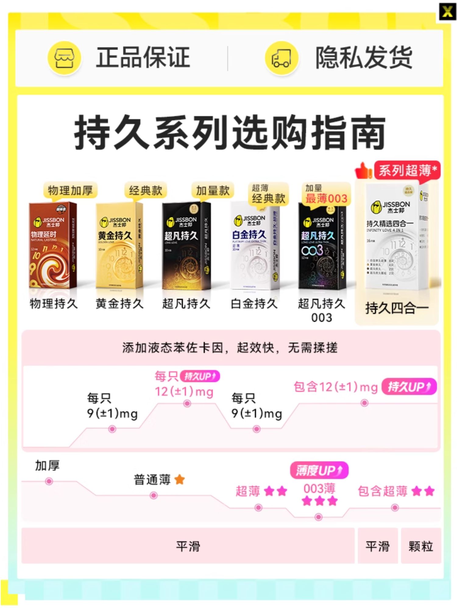 【年末亏本清仓】杰士邦黄金持久避孕套安全套 3只/6只/10只