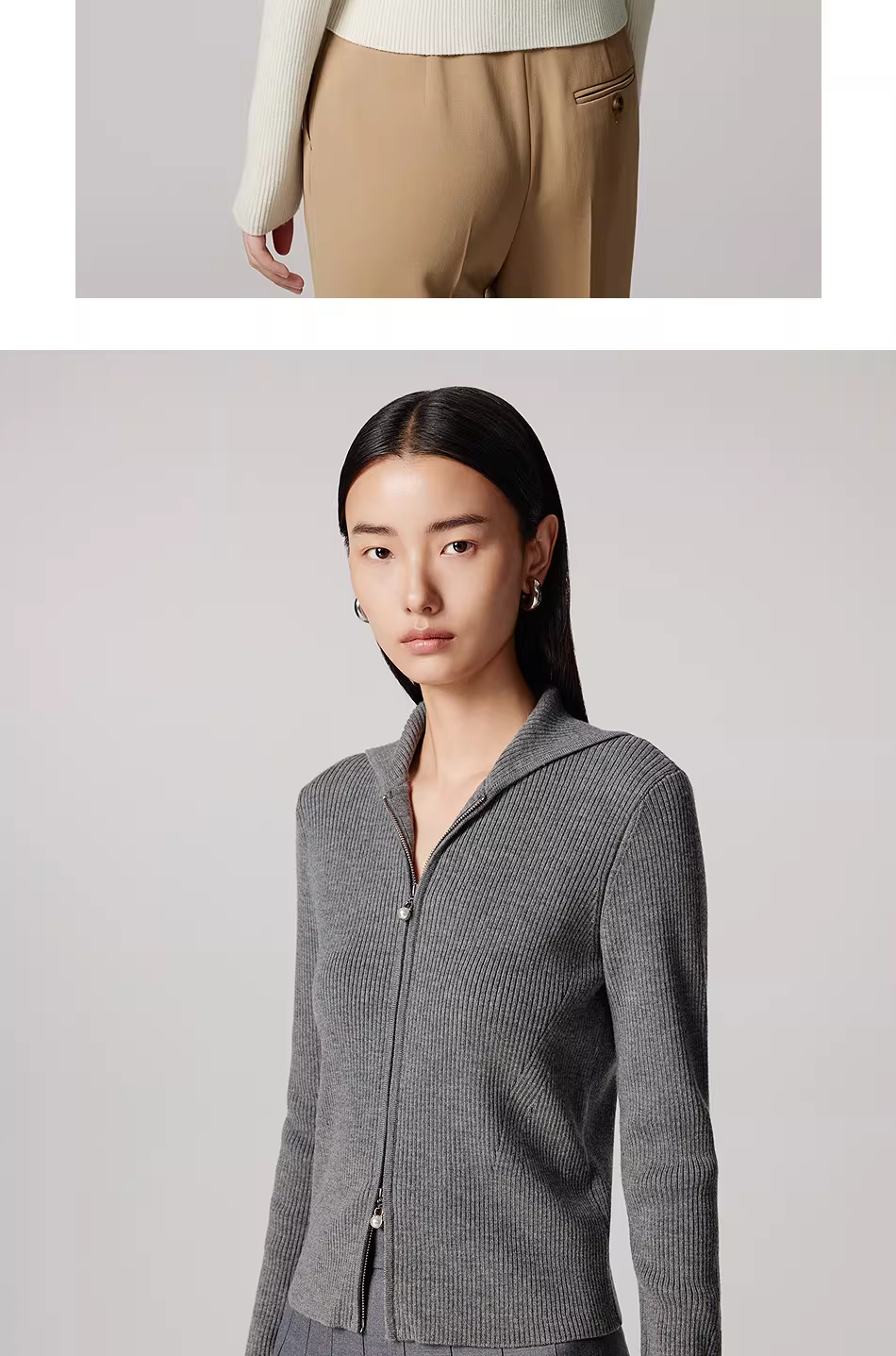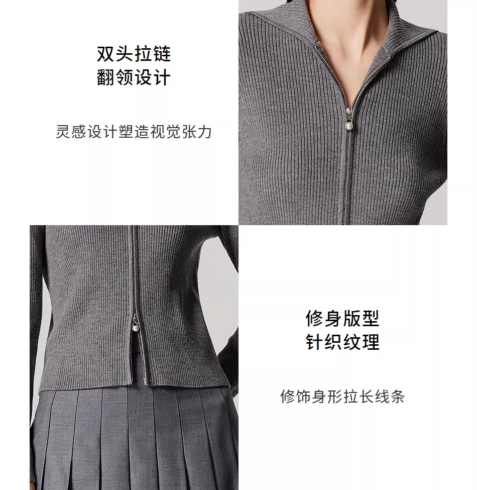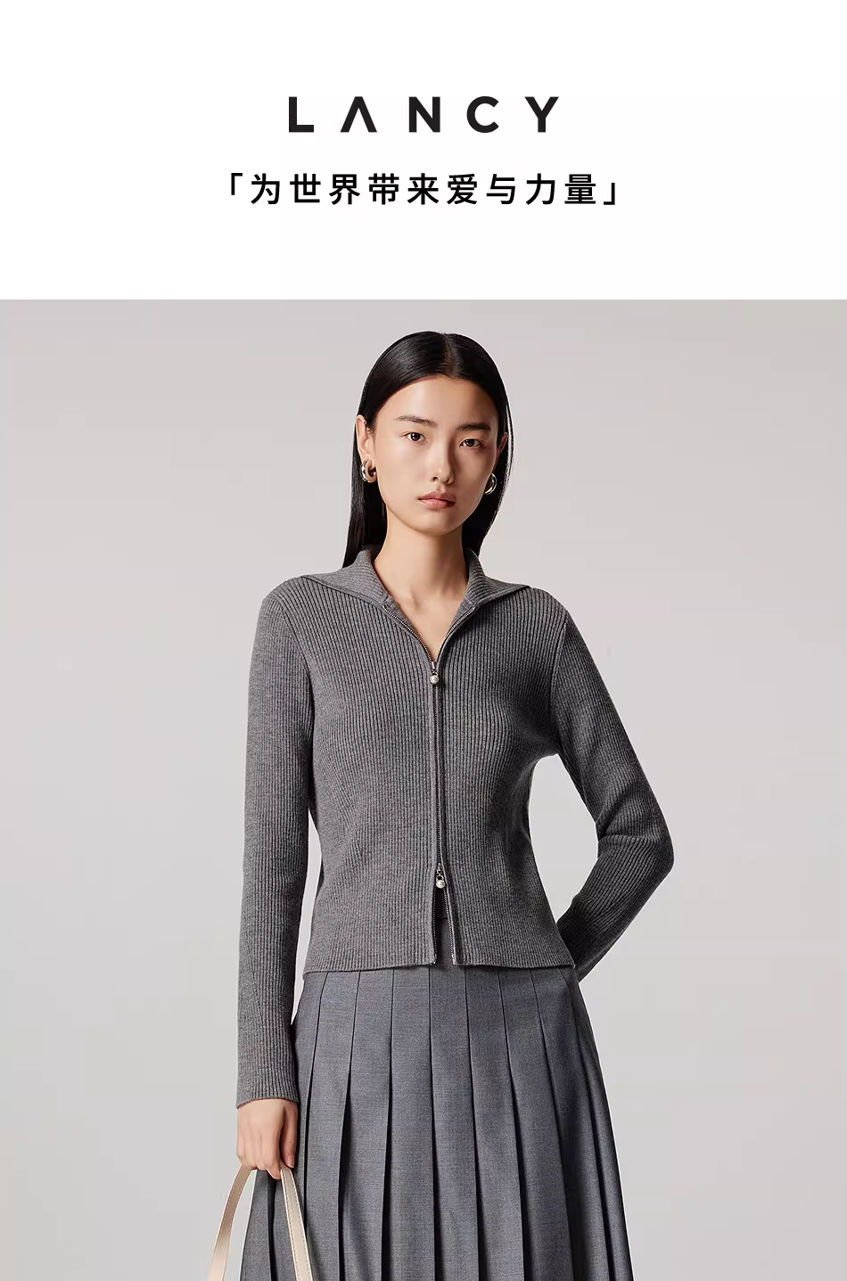 朗姿双头拉链优雅设计感针织开衫LRJP05KCD427W11
