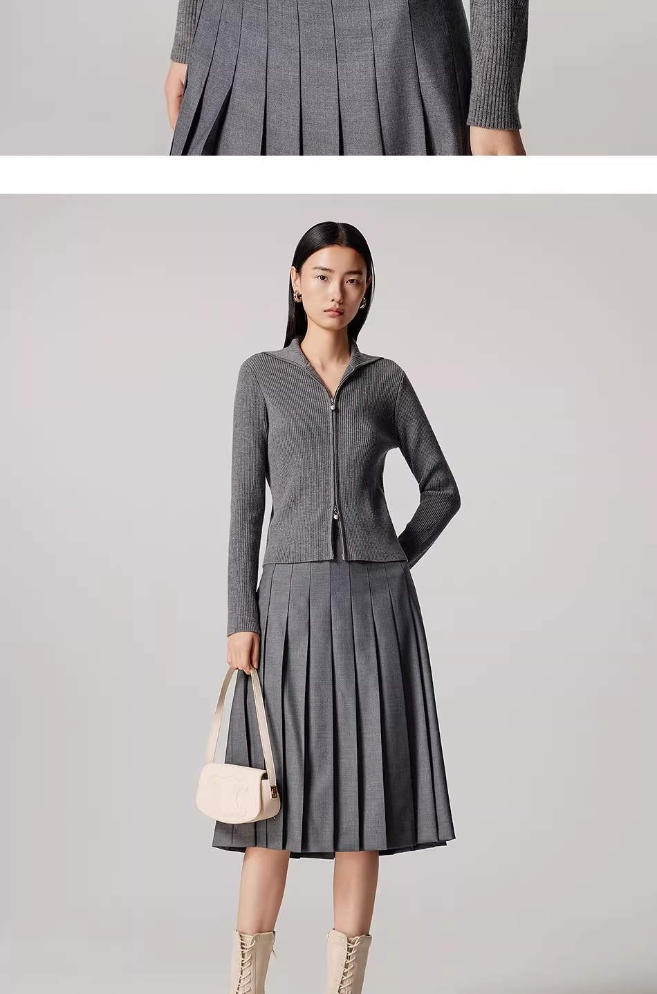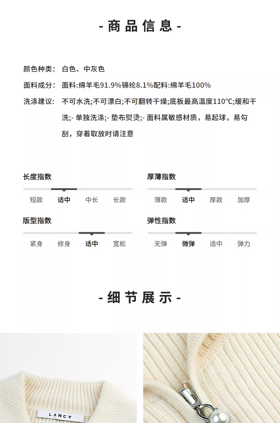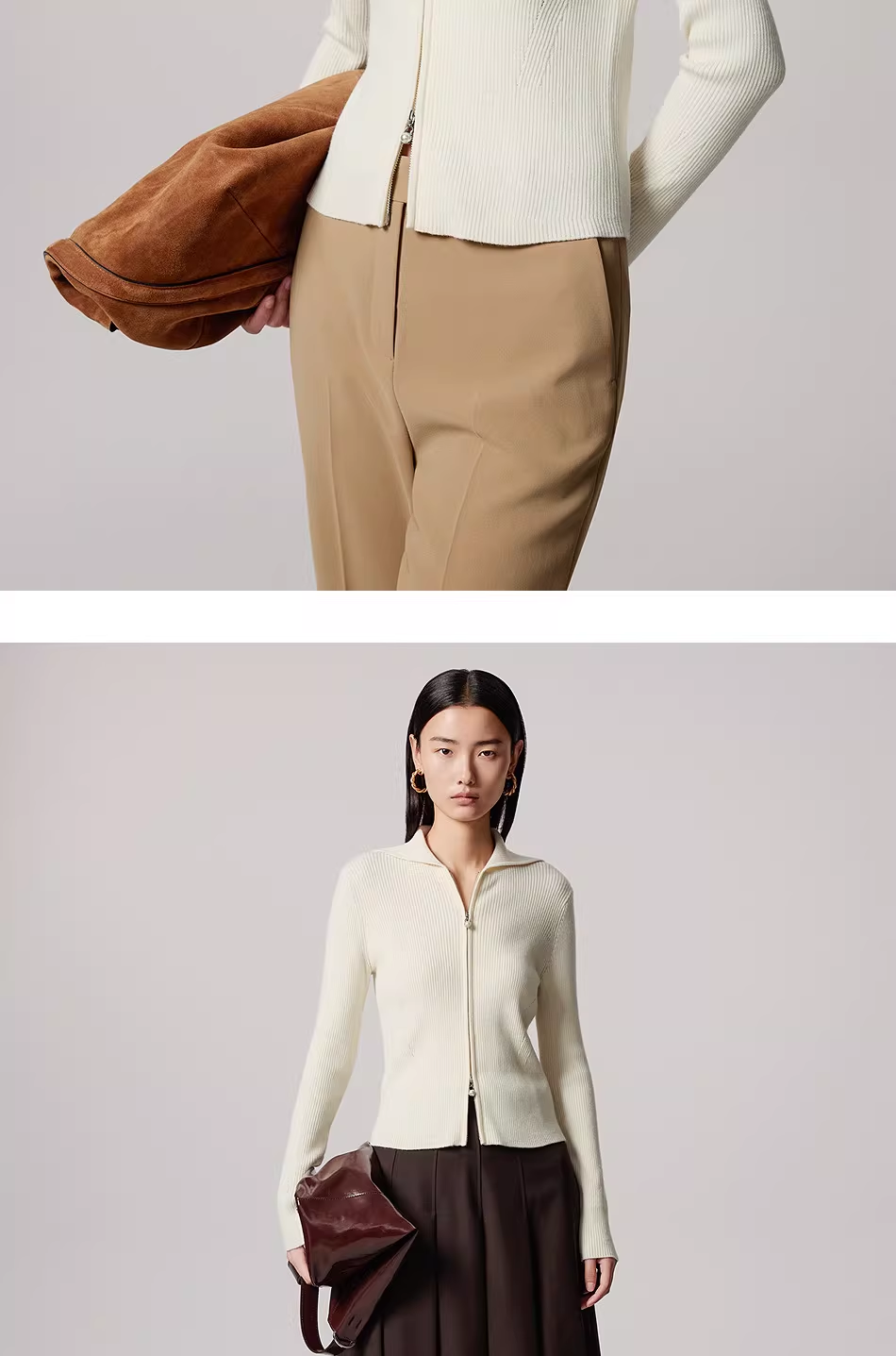 朗姿双头拉链优雅设计感针织开衫LRJP05KCD427W11