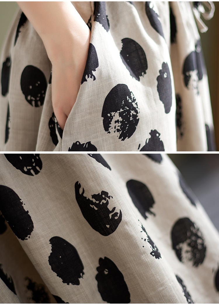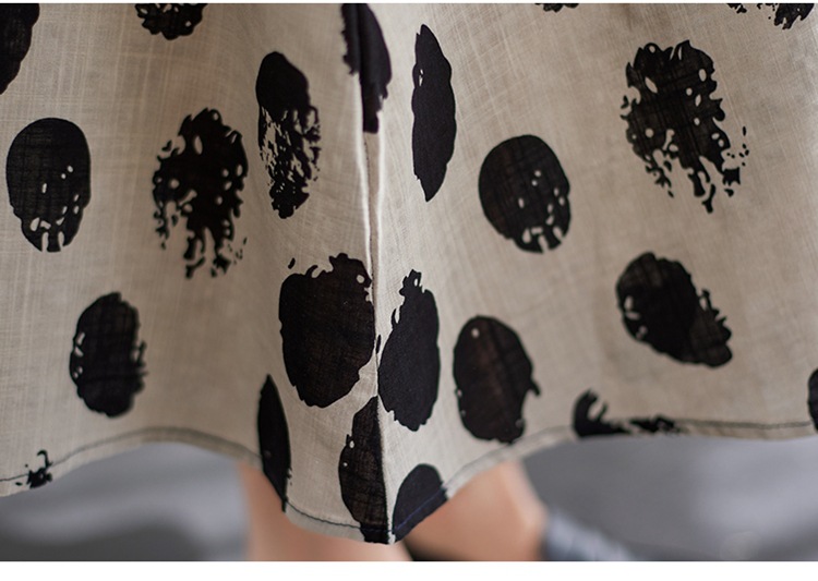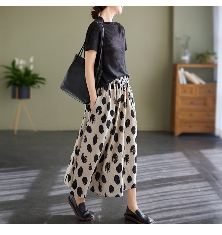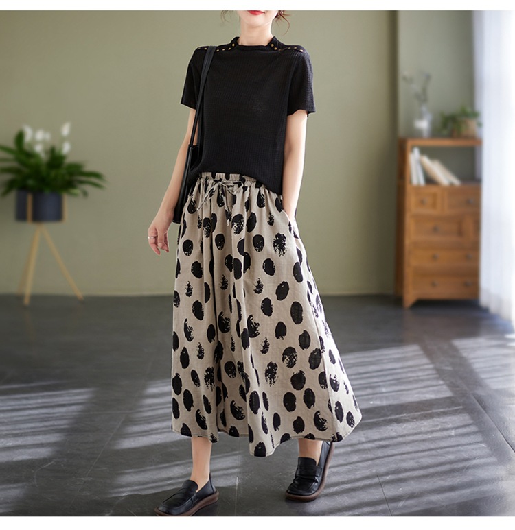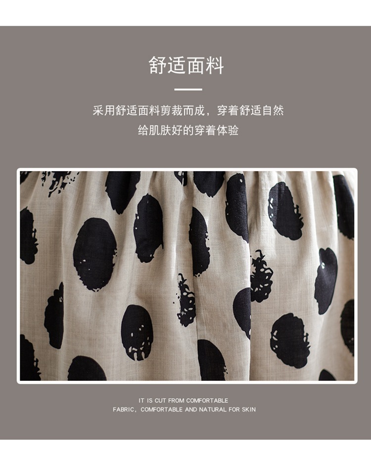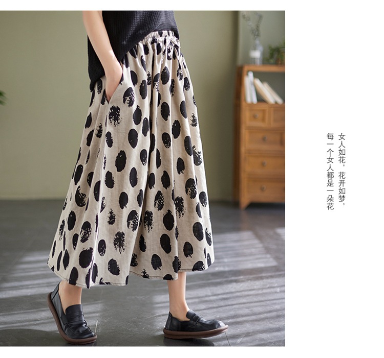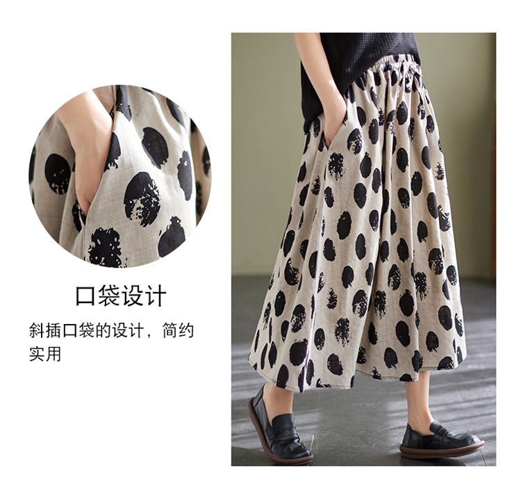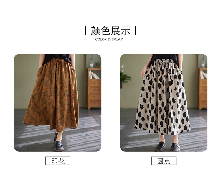 雀说 复古棉麻印花宽松松紧腰显瘦大摆中长款半身裙JMB091-555