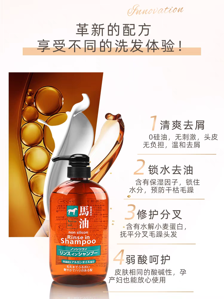 熊野油脂马油无硅洗发护发二合一600ml 跨境购