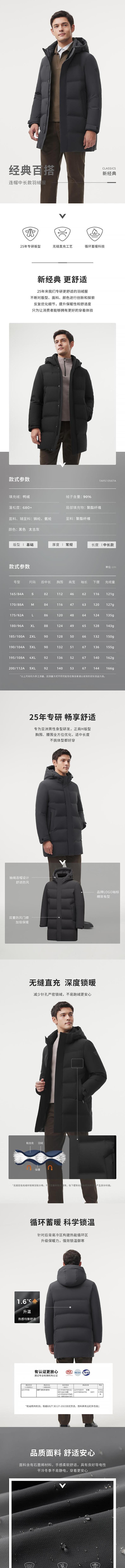 坦博尔 羽绒服男中长款 TAF510567A