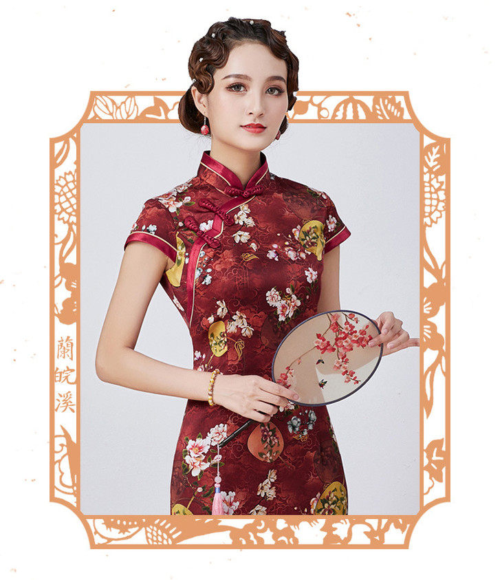 DFSY-QC1697831新款优雅气质修身显瘦真丝印花手工盘扣长款旗袍