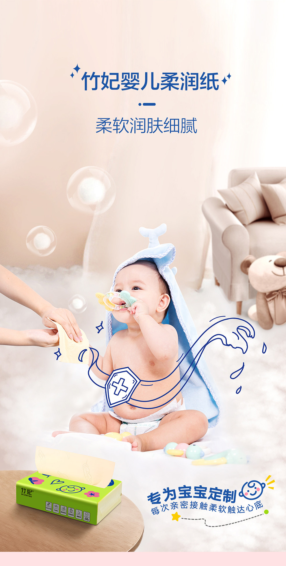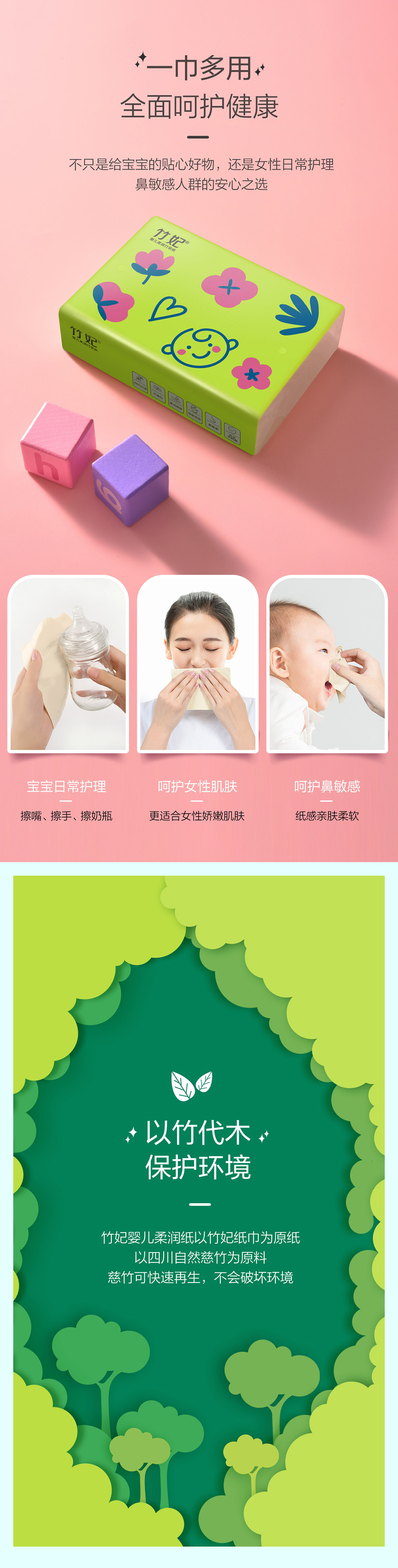 竹妃竹纤维婴儿柔润抽纸(16包/箱)
