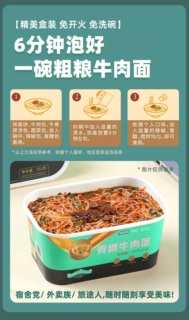 【百万家庭专享】西藏 奇正青稞 藏晶  青稞牛肉面 151g*18盒 商品图0