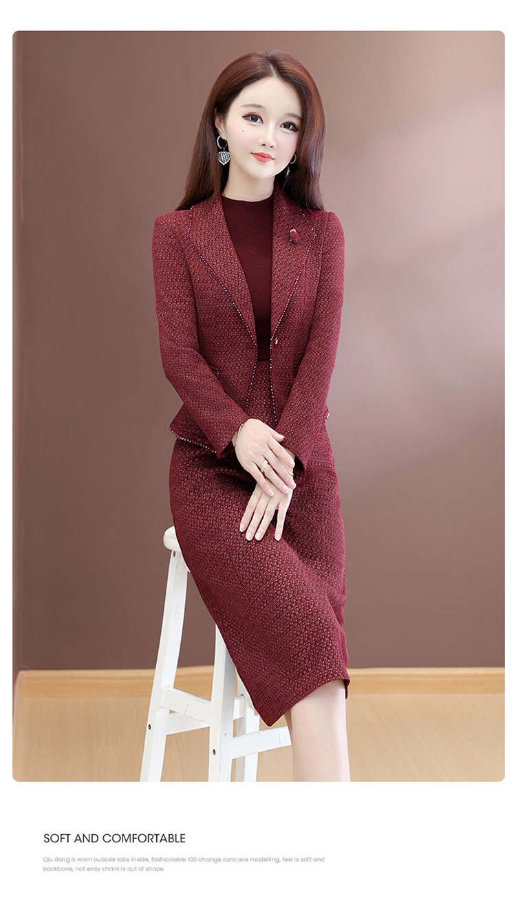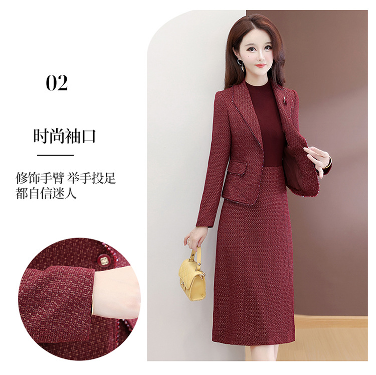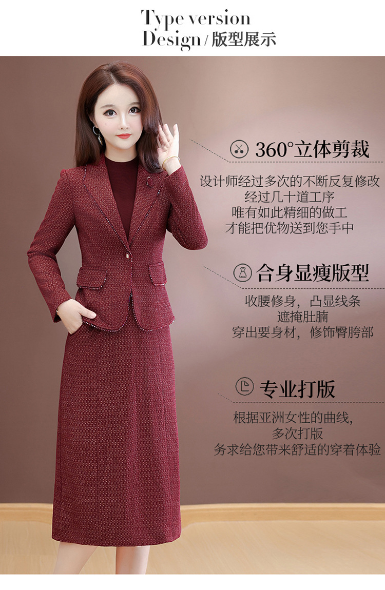 QYM 54C2525-Y外套连衣裙两件套长袖开衩中长裙+西装外套 商品图2