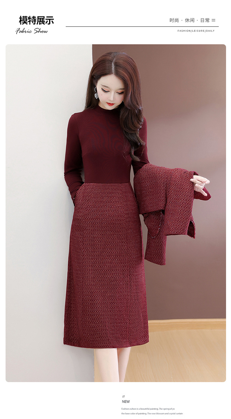 QYM 54C2525-Y外套连衣裙两件套长袖开衩中长裙+西装外套 商品图1