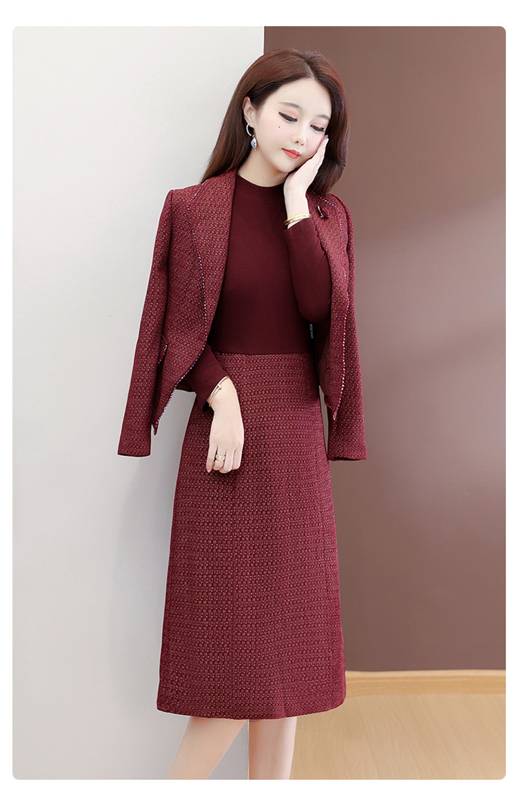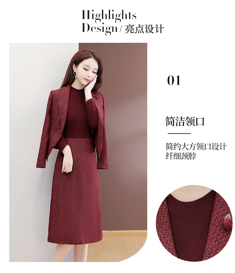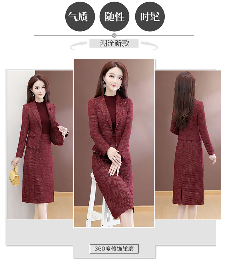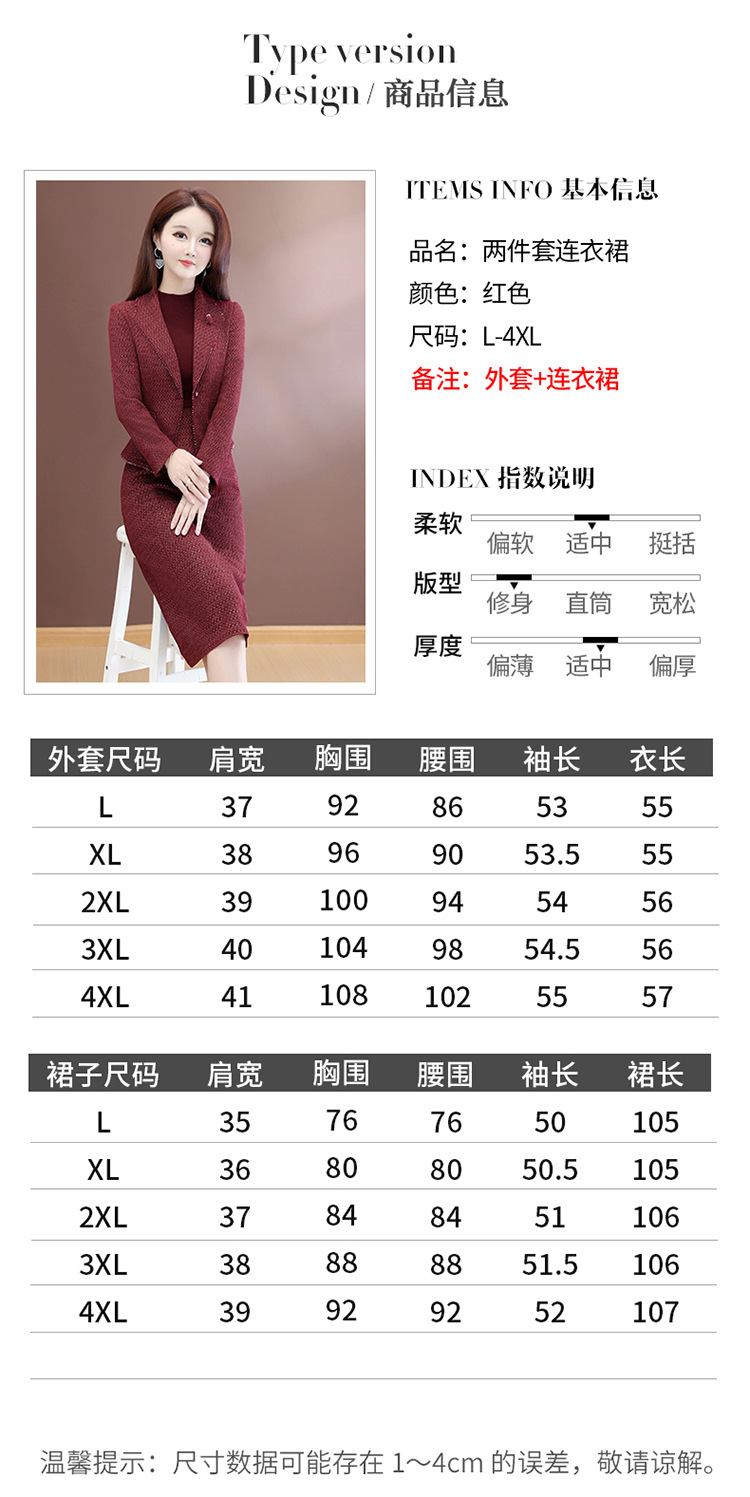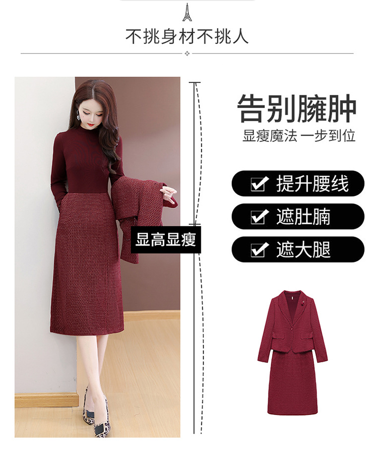 QYM 54C2525-Y外套连衣裙两件套长袖开衩中长裙+西装外套 商品图4