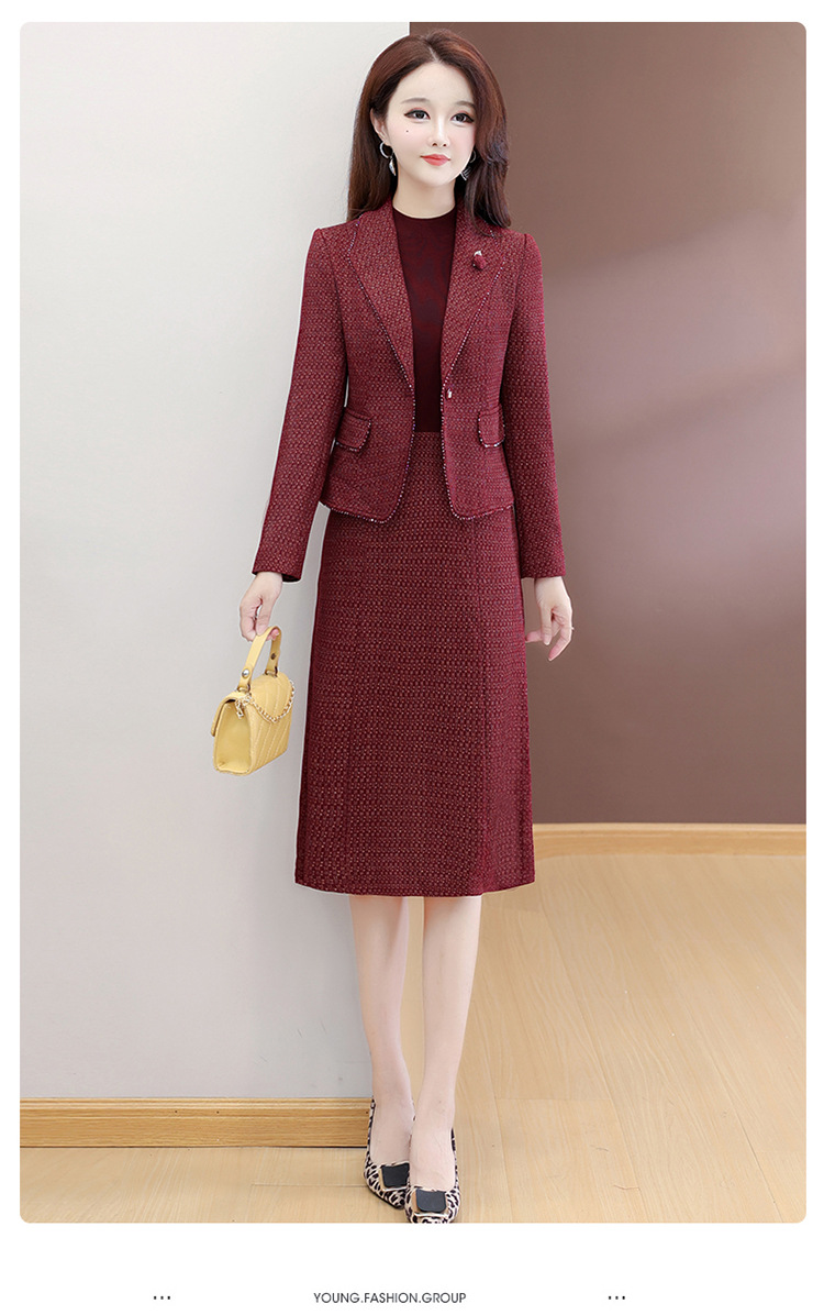 QYM 54C2525-Y外套连衣裙两件套长袖开衩中长裙+西装外套