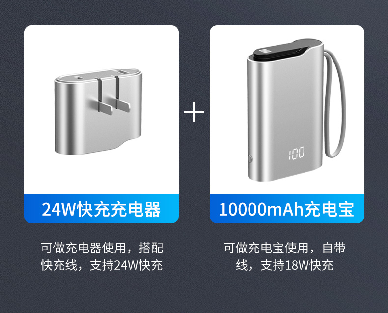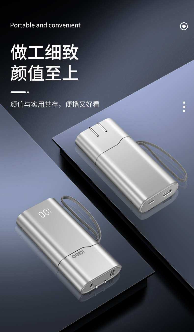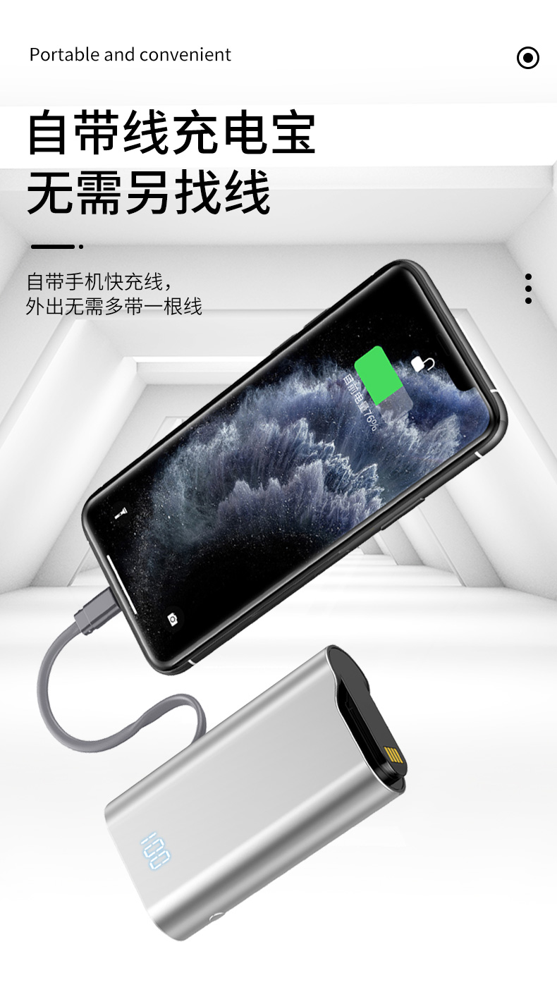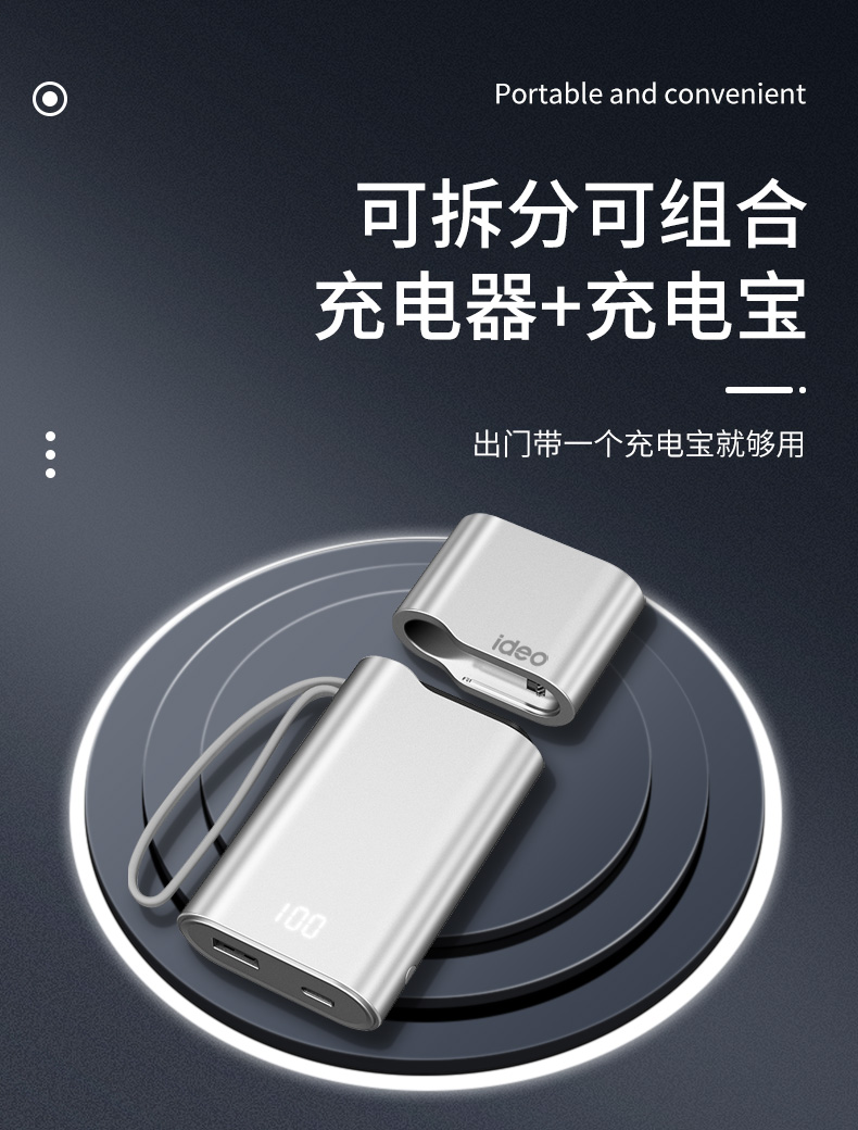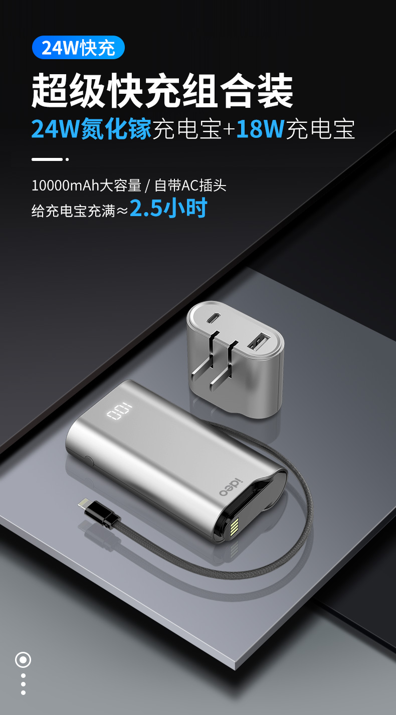 【充电宝+氮化镓插头】18W快充充电宝自带线带插头苹果手氮化镓充电器充电宝迷你便携分离式充电宝华为专用