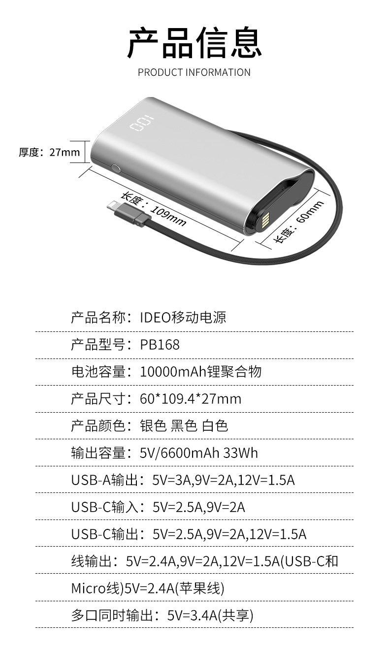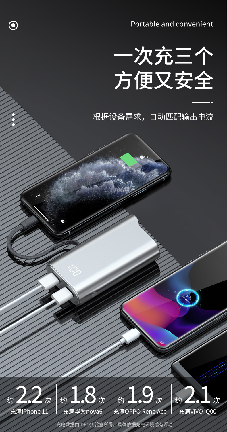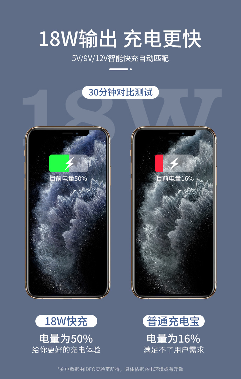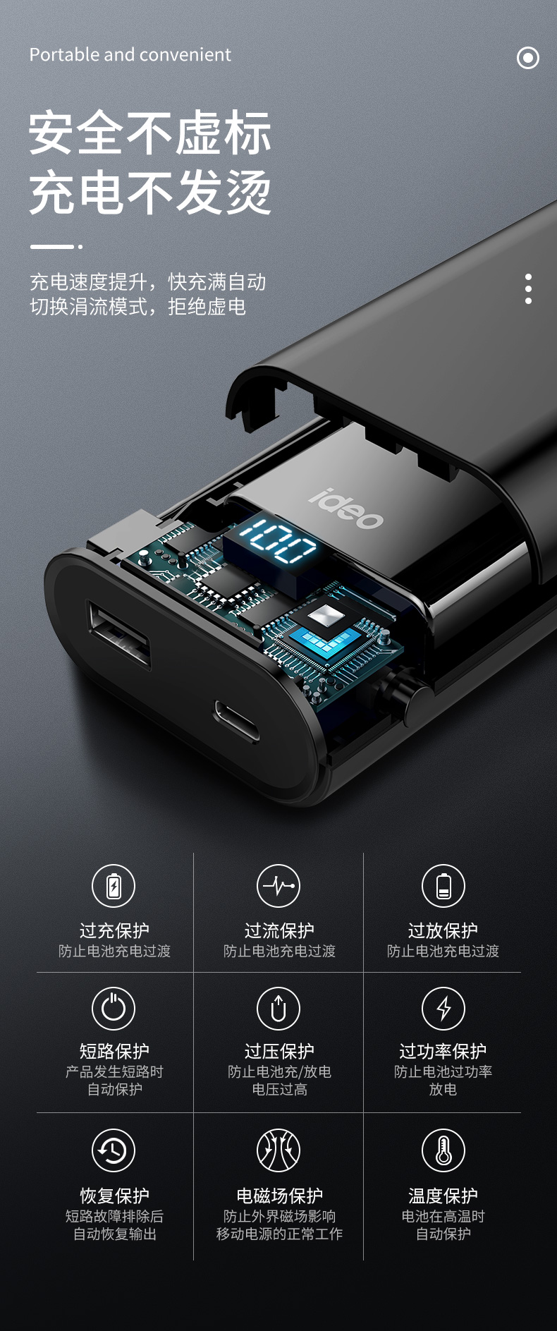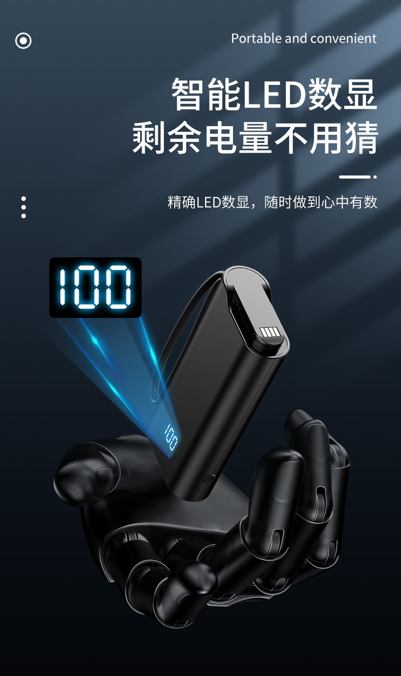 【充电宝+氮化镓插头】18W快充充电宝自带线带插头苹果手氮化镓充电器充电宝迷你便携分离式充电宝华为专用