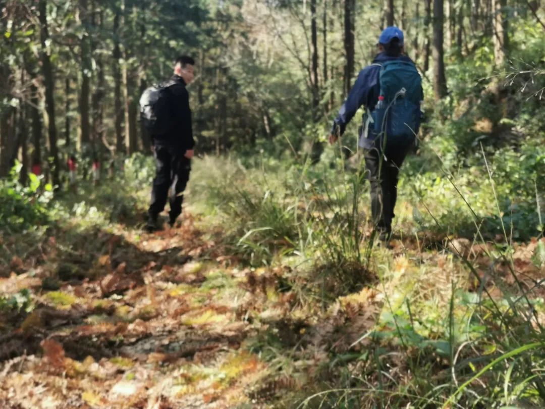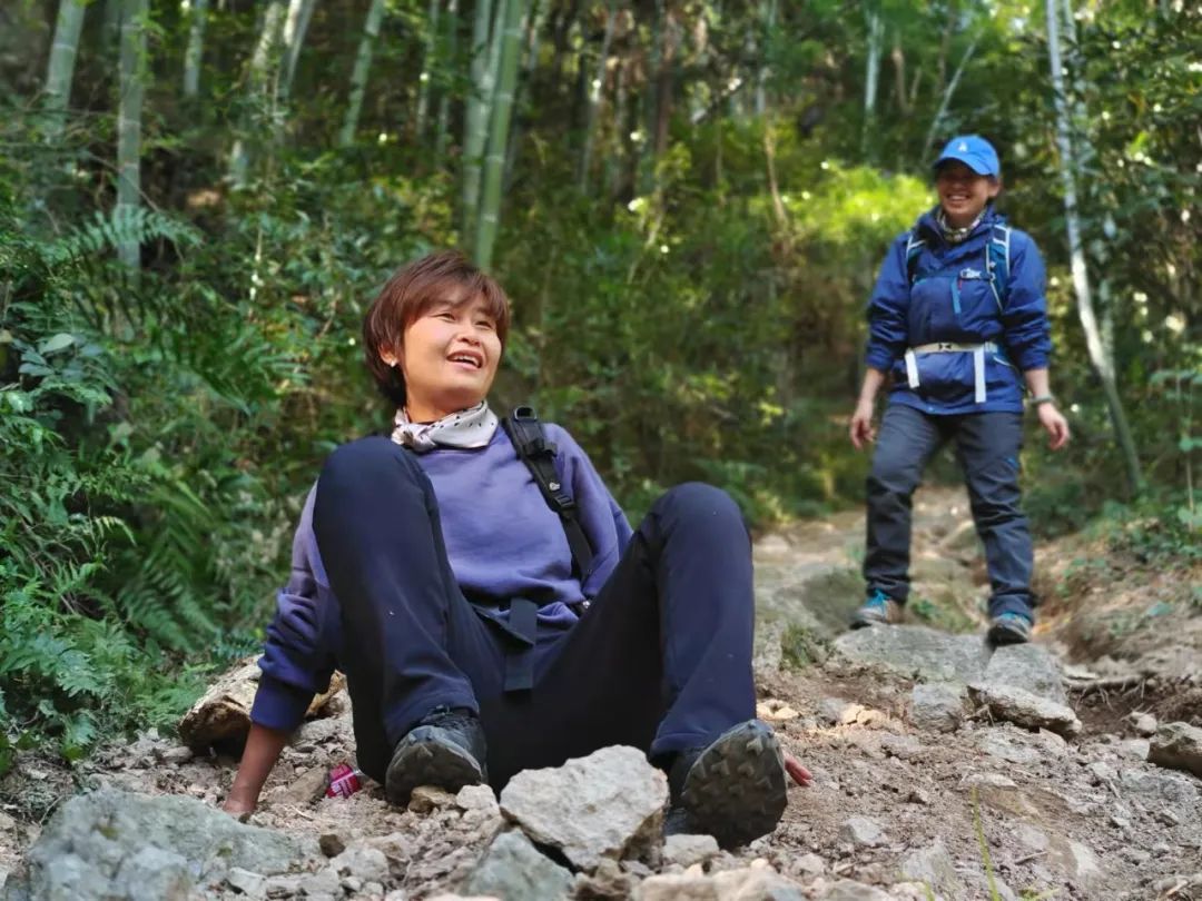 找到村里竹林间的石头小径,我们开始上山。两边的毛竹苍翠葱茏,秋天里的浆果已经红的透亮,路边还有野猪刚刚刨开的土,第二次休息的时候,帅帅提议:要不要从这片竹林里直接攀上去?啊哈,有挑战?立刻来了精神!