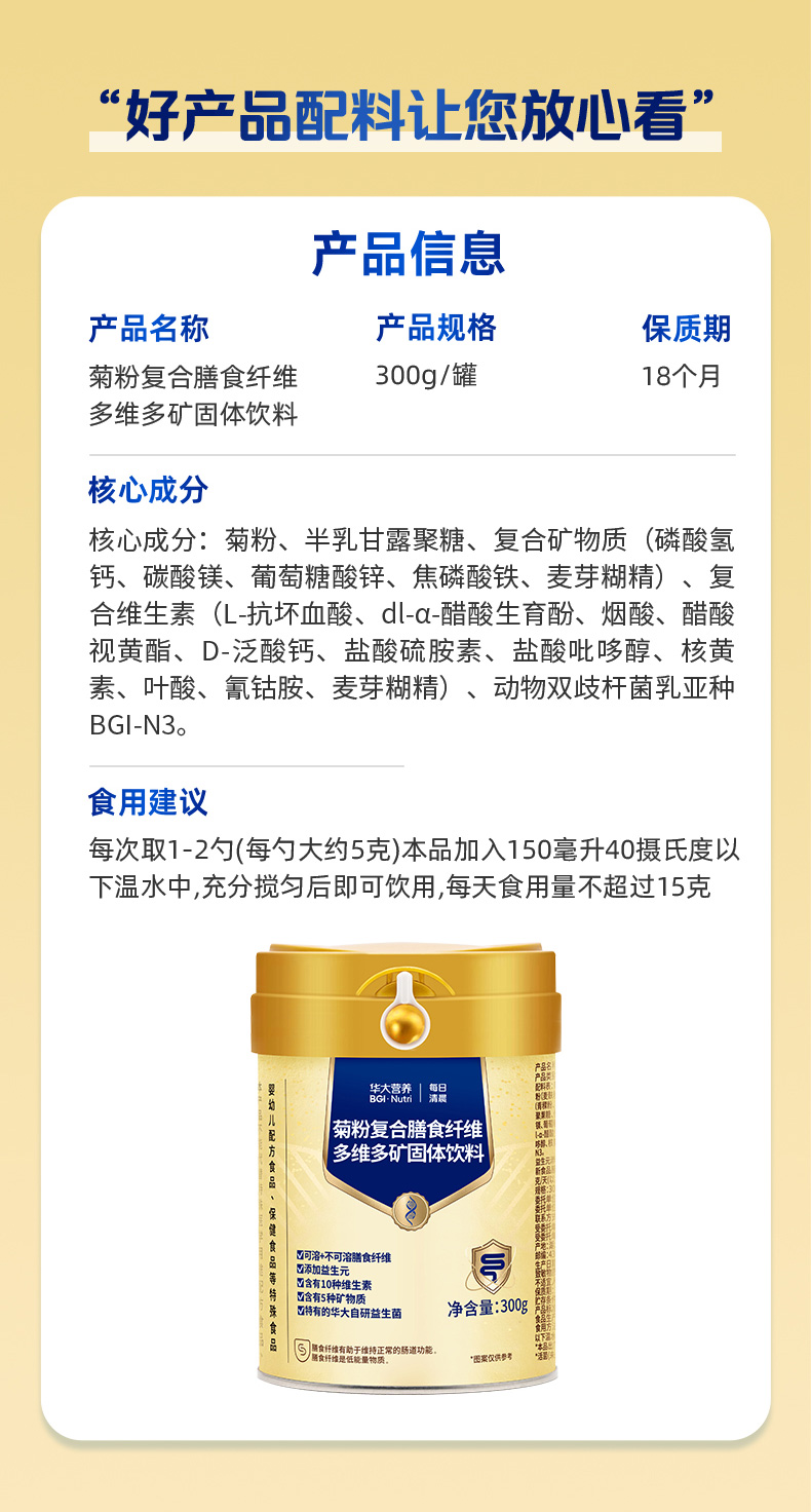 【华大集团总部旗舰店】华大营养菊粉膳食纤维益生元肠道益生菌成人自研