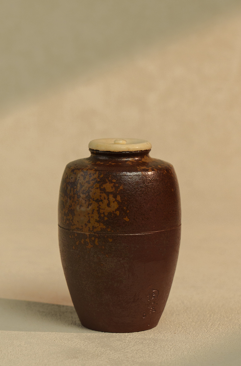 清 青金石嵌绿松石莲花盖盒(红木座)