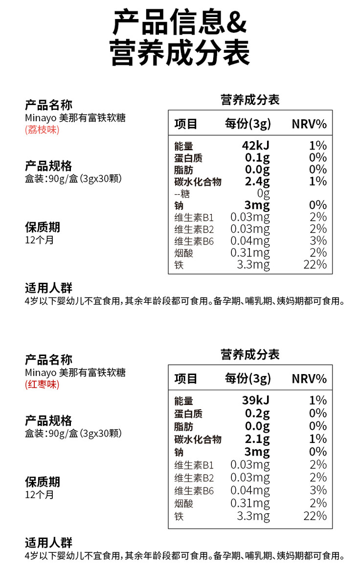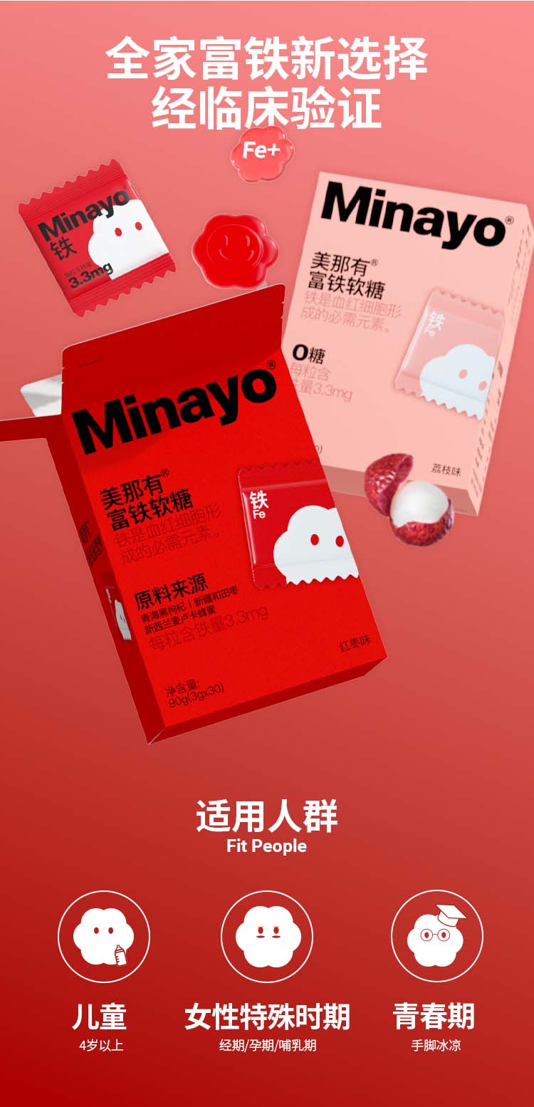 Minayo富铁软糖+叶黄素酯软糖+钙D3软糖+益生菌软糖