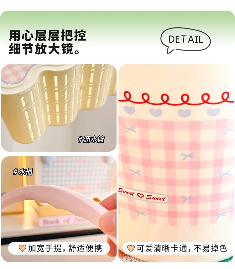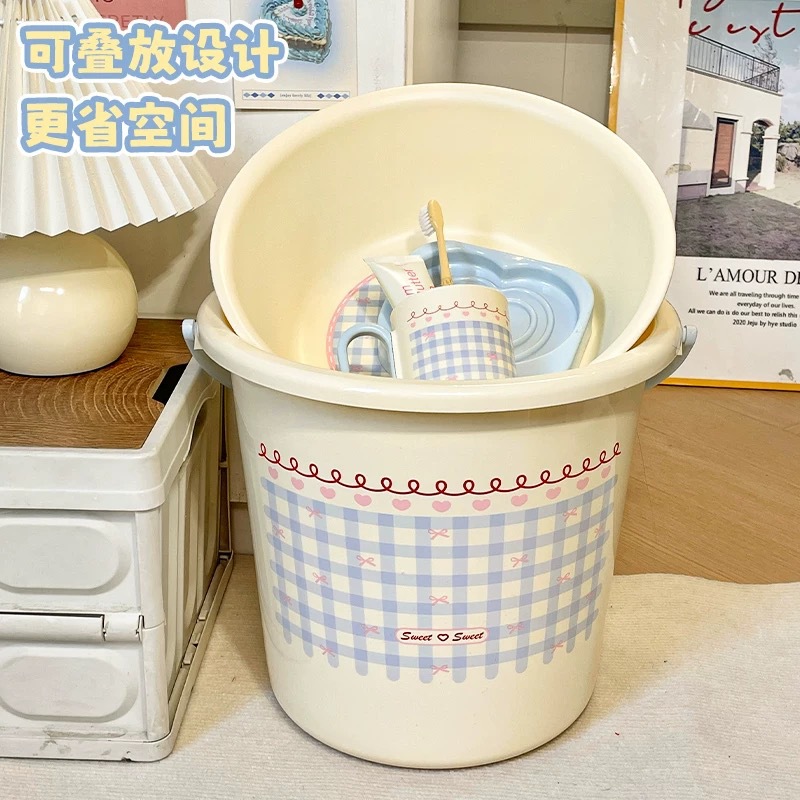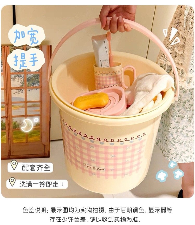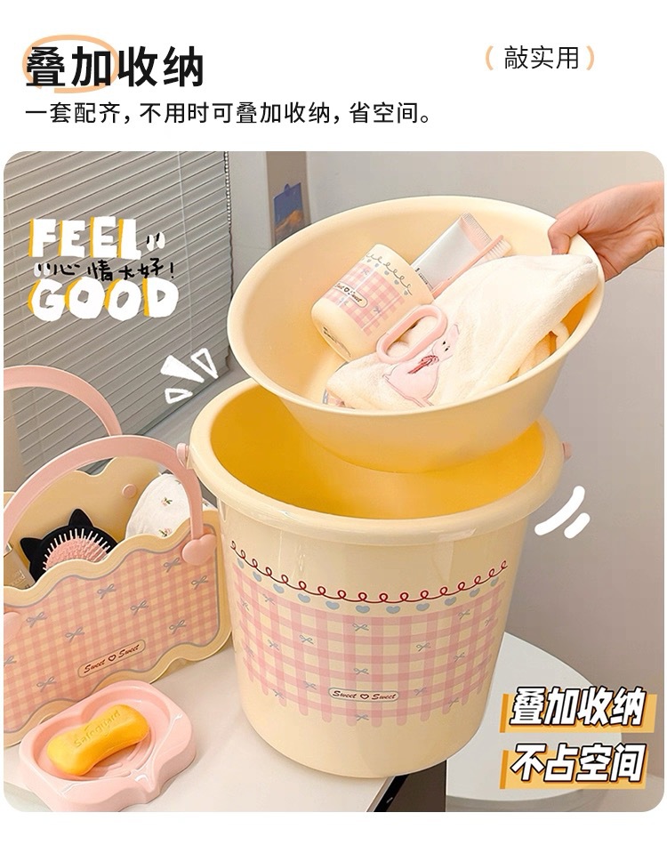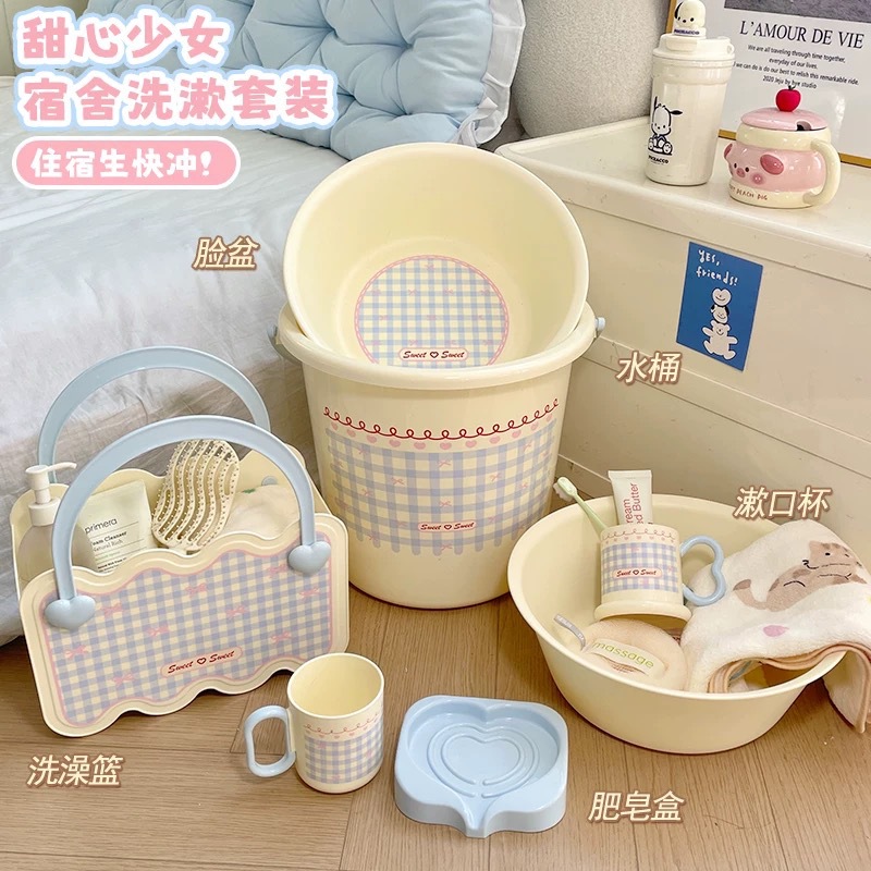 【宿舍洗漱套装❗一套搞定】法式甜心脸盆水桶套装多巴胺加厚洗衣盆泡脚盆家用学生宿舍洗漱。rg