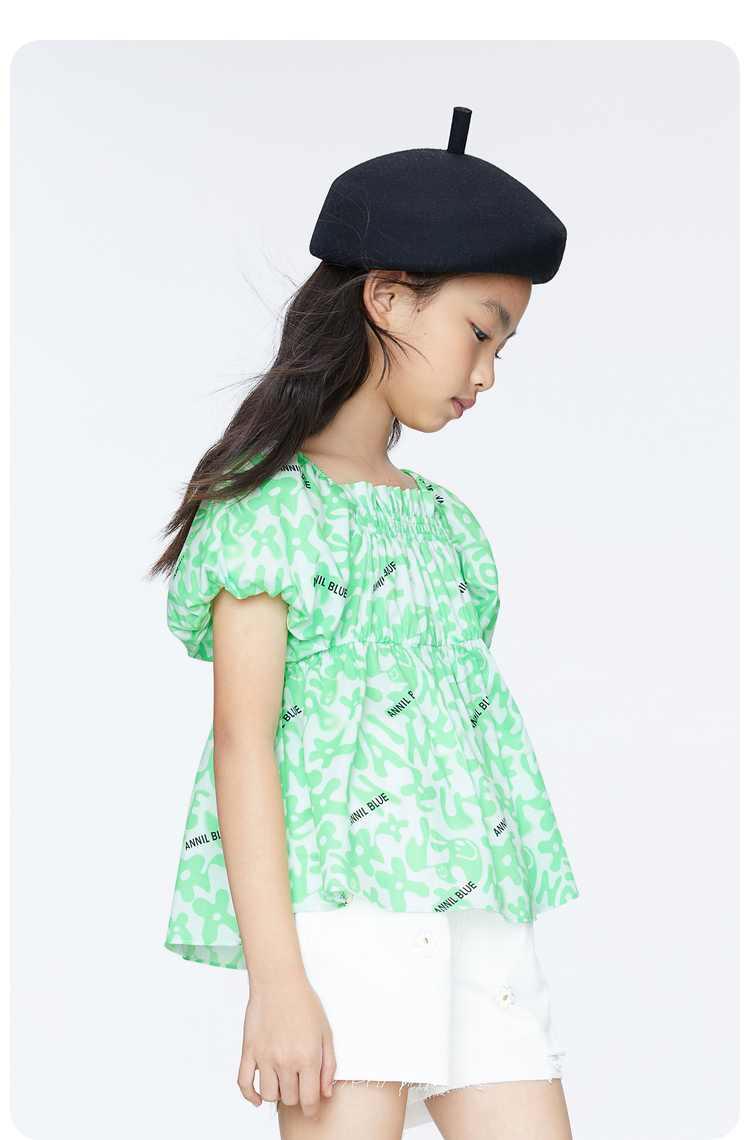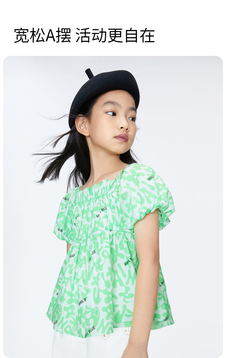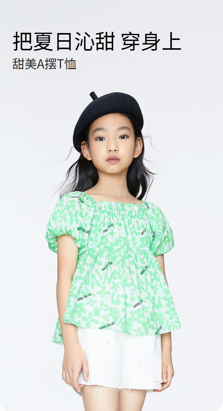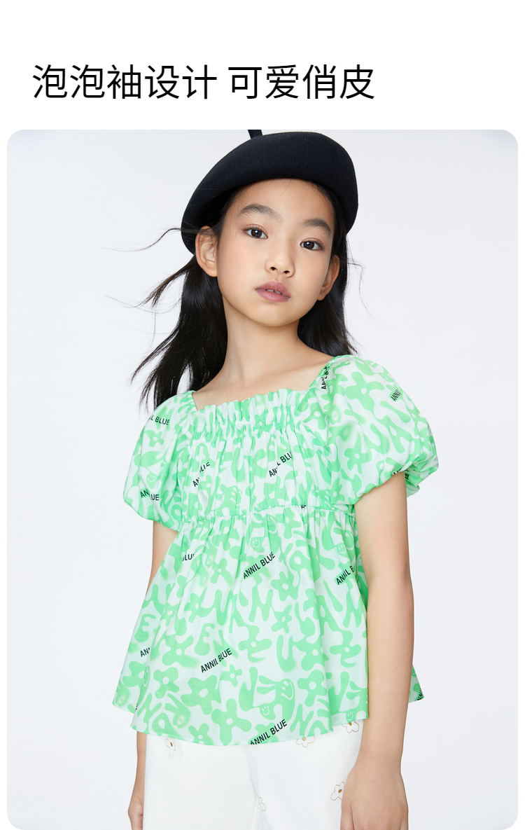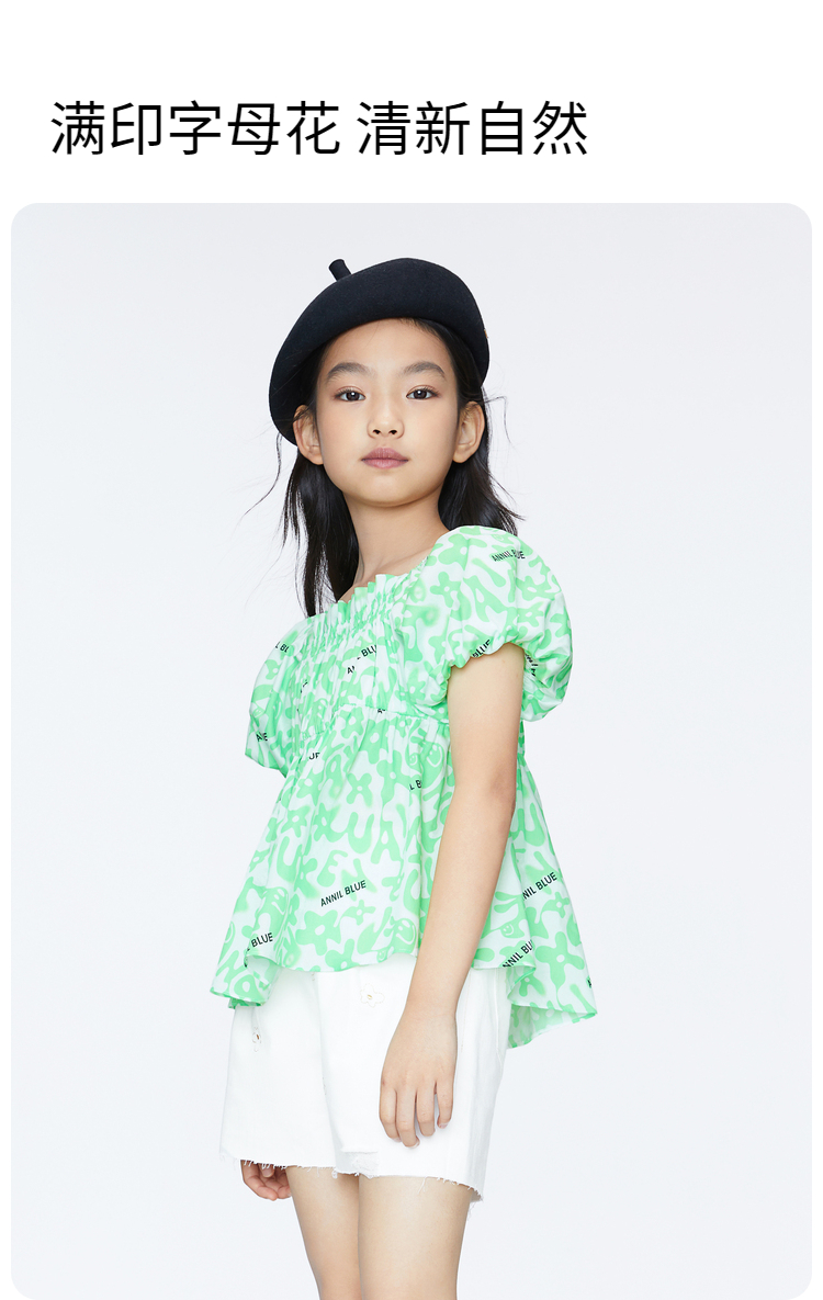 【实体店同款】女童甜美T恤短袖上衣BLUE新款安奈儿童装AG421823