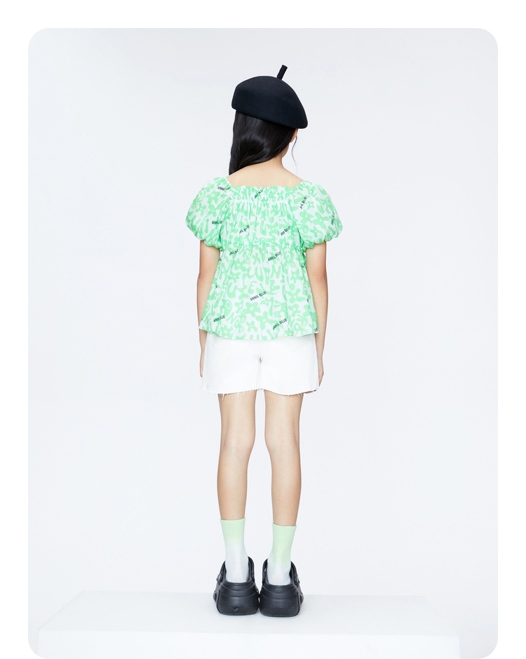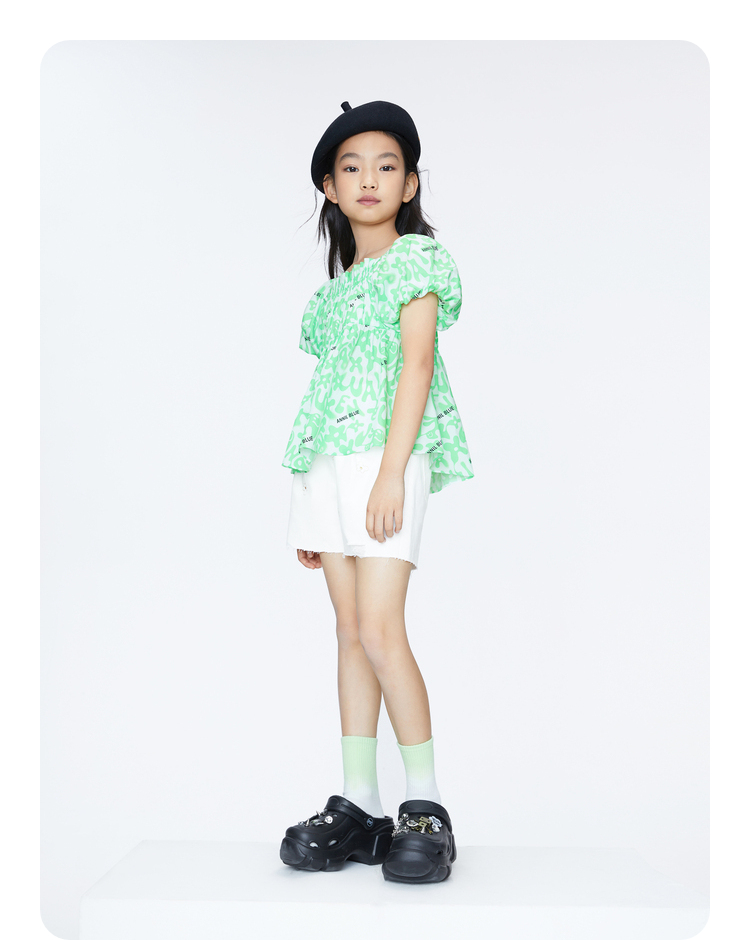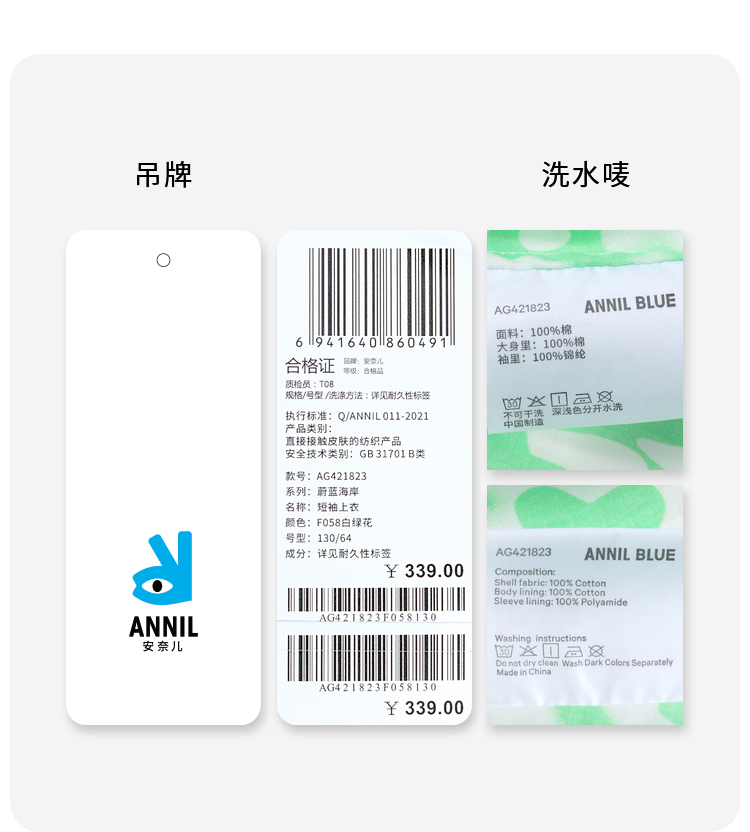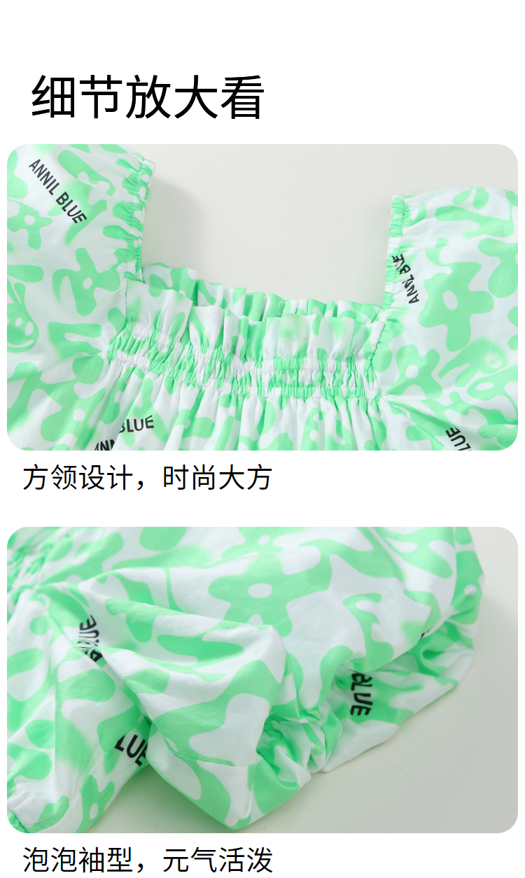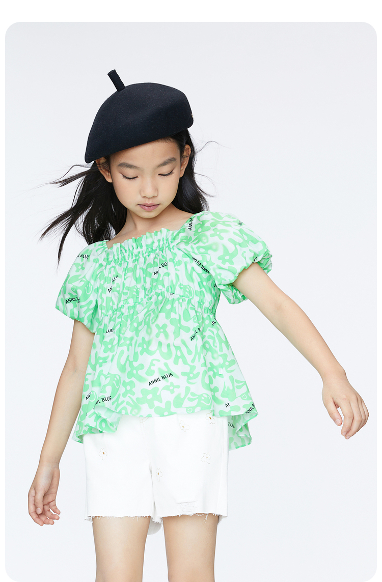 【实体店同款】女童甜美T恤短袖上衣BLUE新款安奈儿童装AG421823
