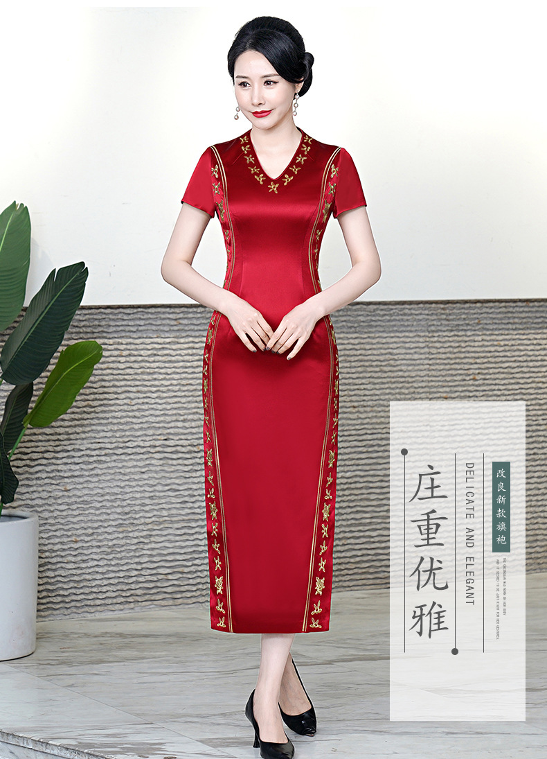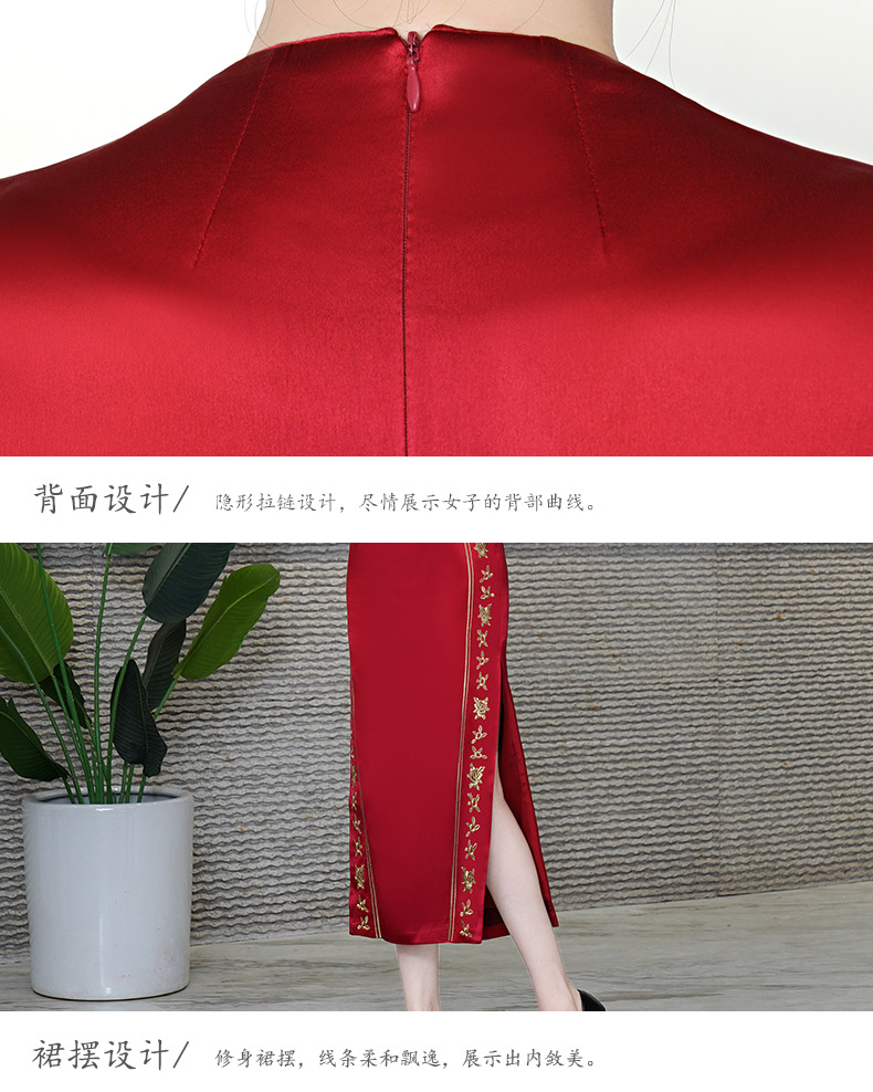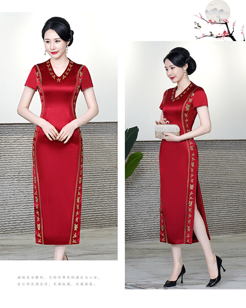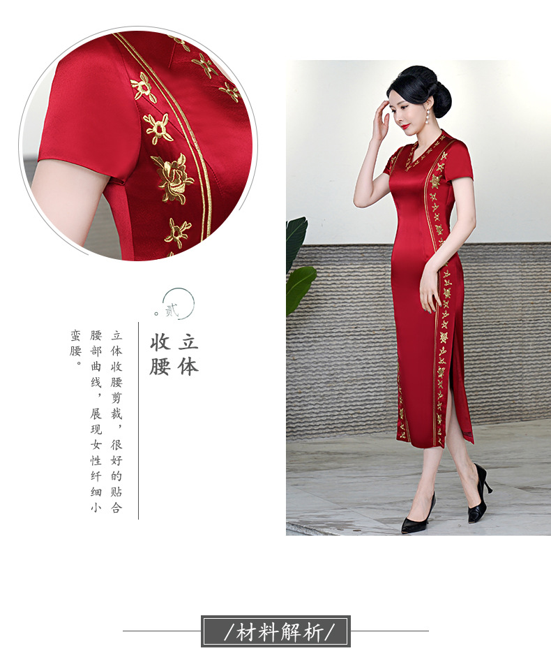 复古喜婆婆礼服,醋酸改良敬酒短袖红色夏新长款旗袍HYX-23-193