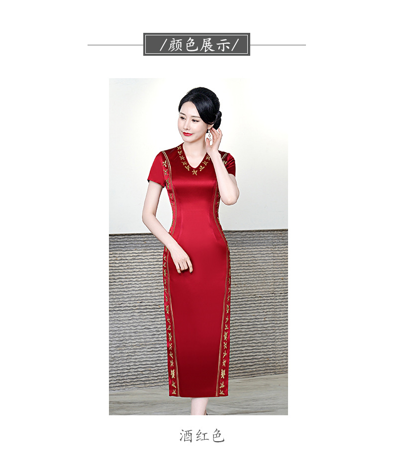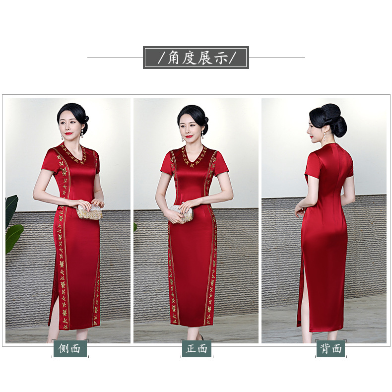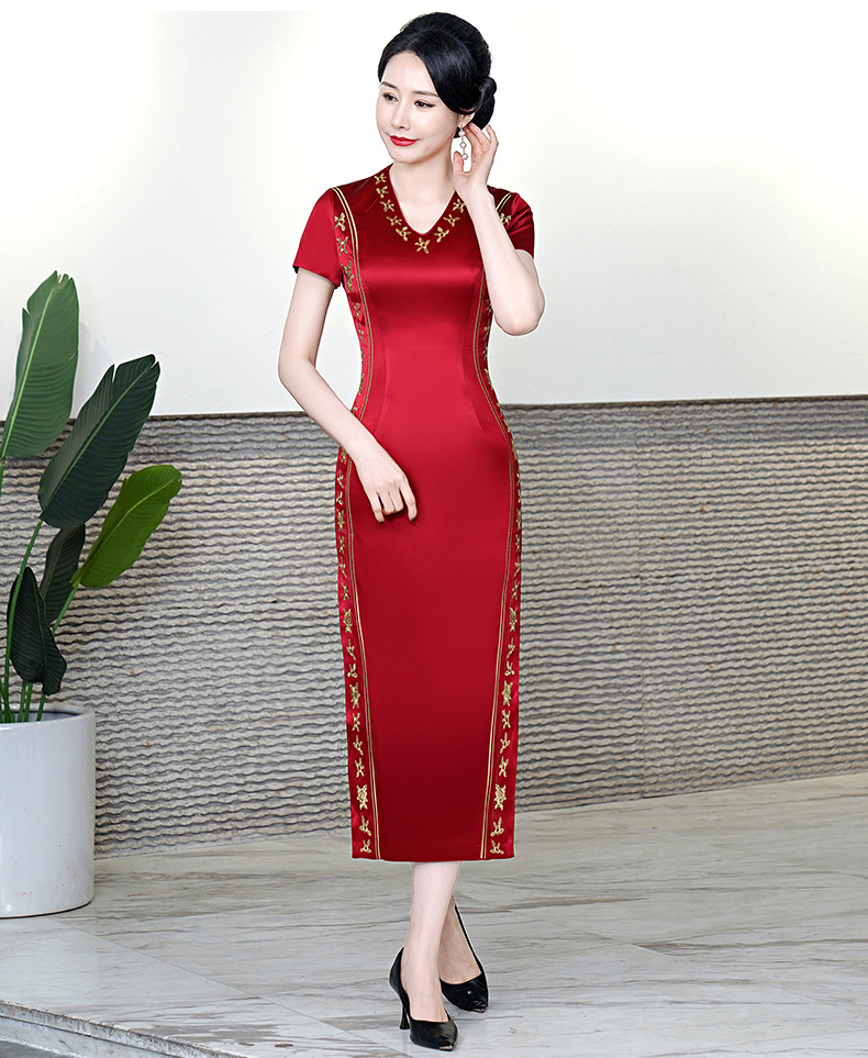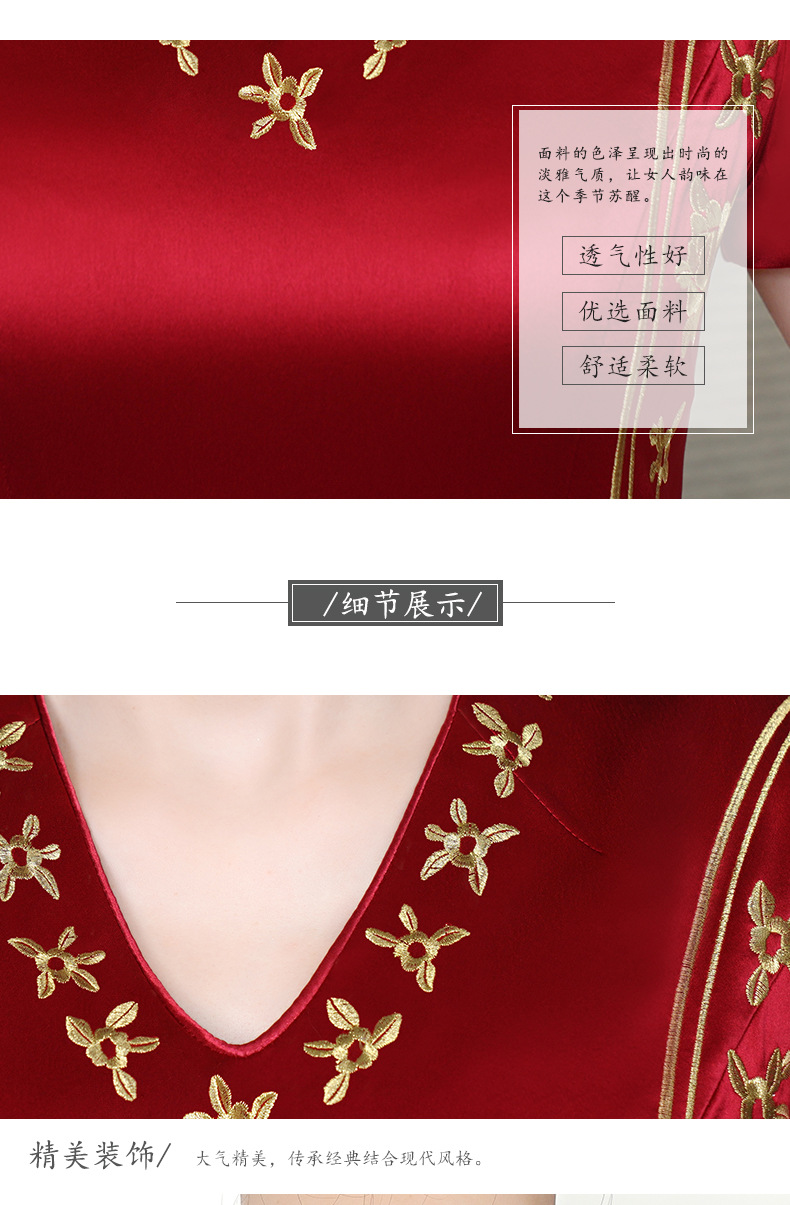 复古喜婆婆礼服,醋酸改良敬酒短袖红色夏新长款旗袍HYX-23-193