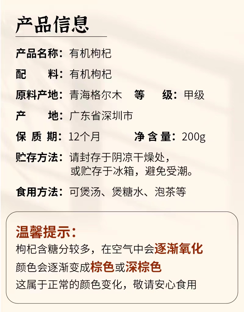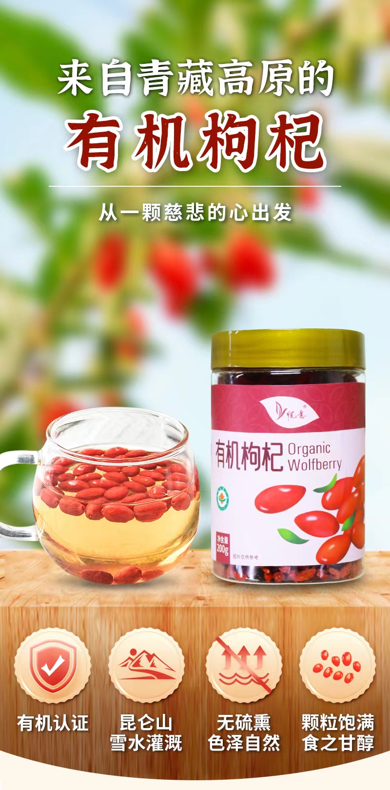 悦意 有机枸杞 200克/瓶