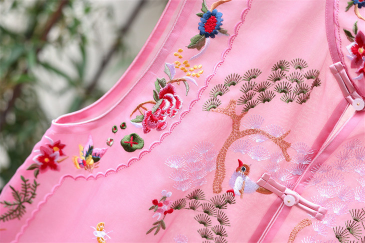 重工刺绣双层真丝欧根纱中式马甲背心FL6063