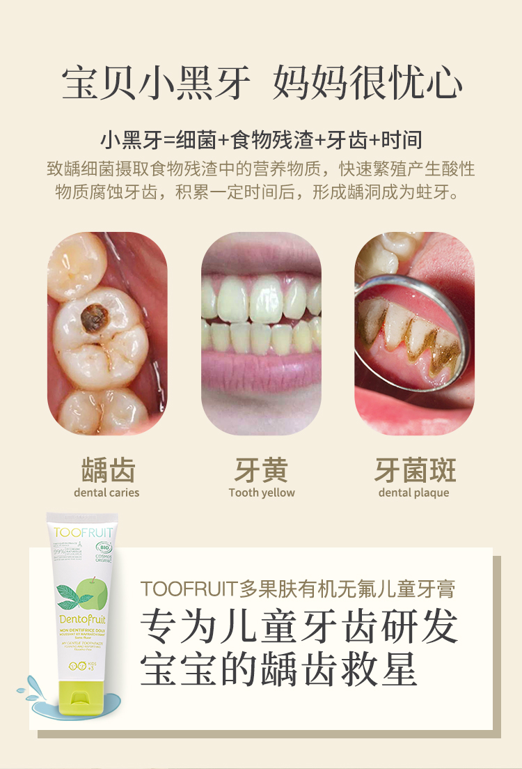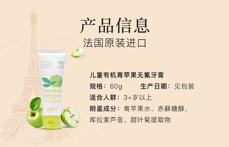 预防蛀牙 有机无氟儿童牙膏60g 法国TF 保税仓发货