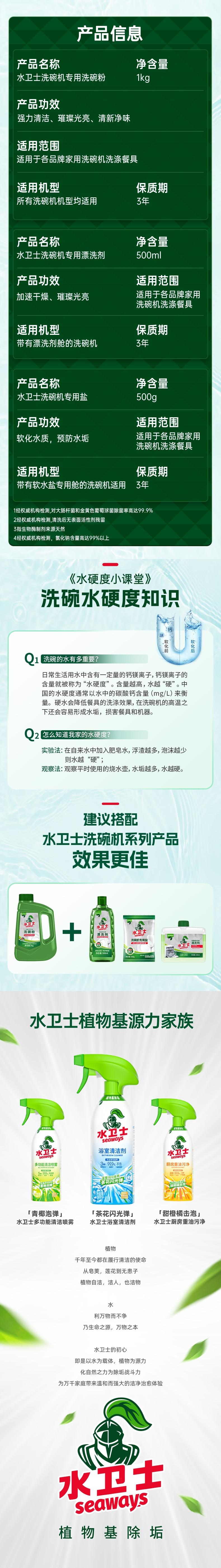 水卫士 洗碗粉4件套2.5kg(洗碗粉1瓶+漂洗剂1瓶+洗碗盐2袋) ZWJF01J01Y02