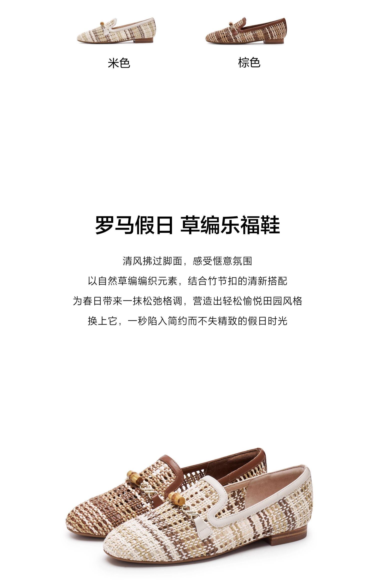 Joy&peace真美诗 罗马假日2025春季新款镂空编织单鞋一脚蹬乐福鞋女YOK73AA5