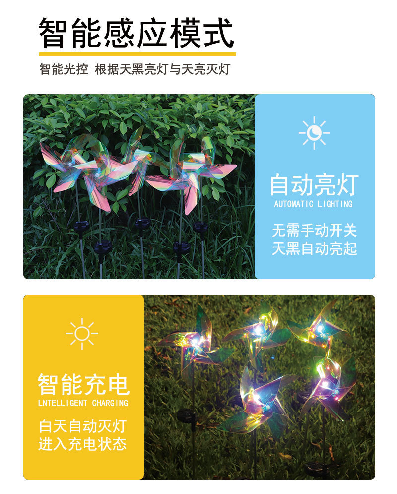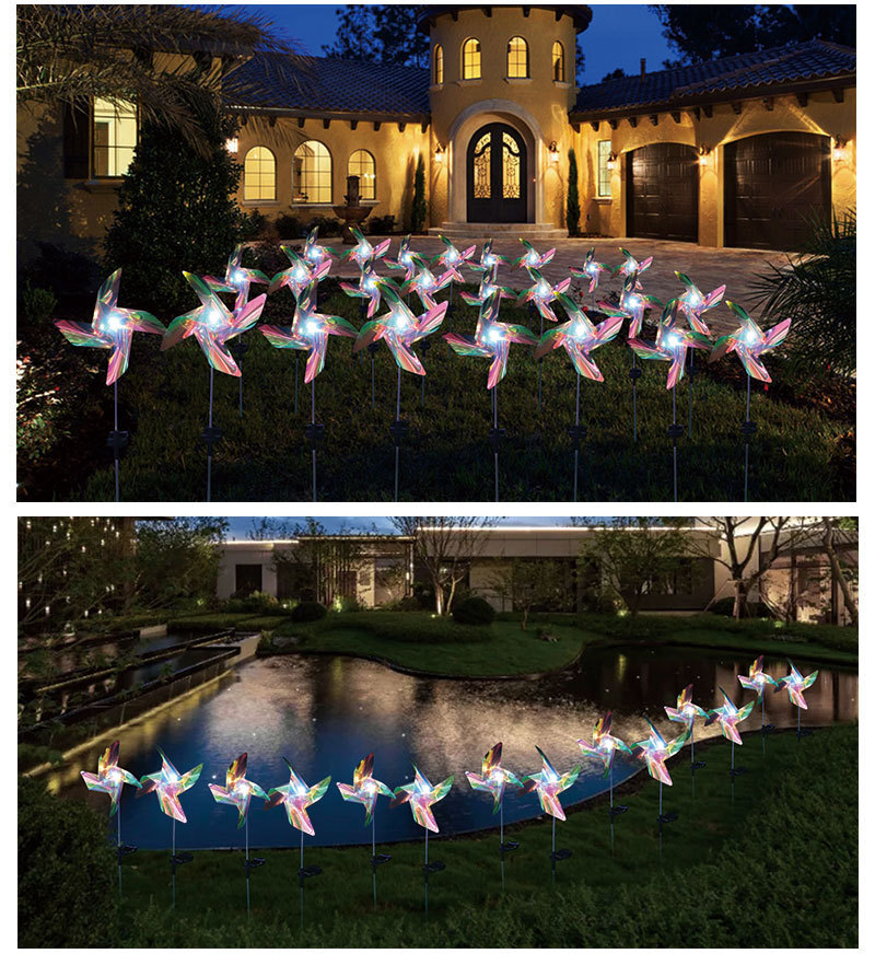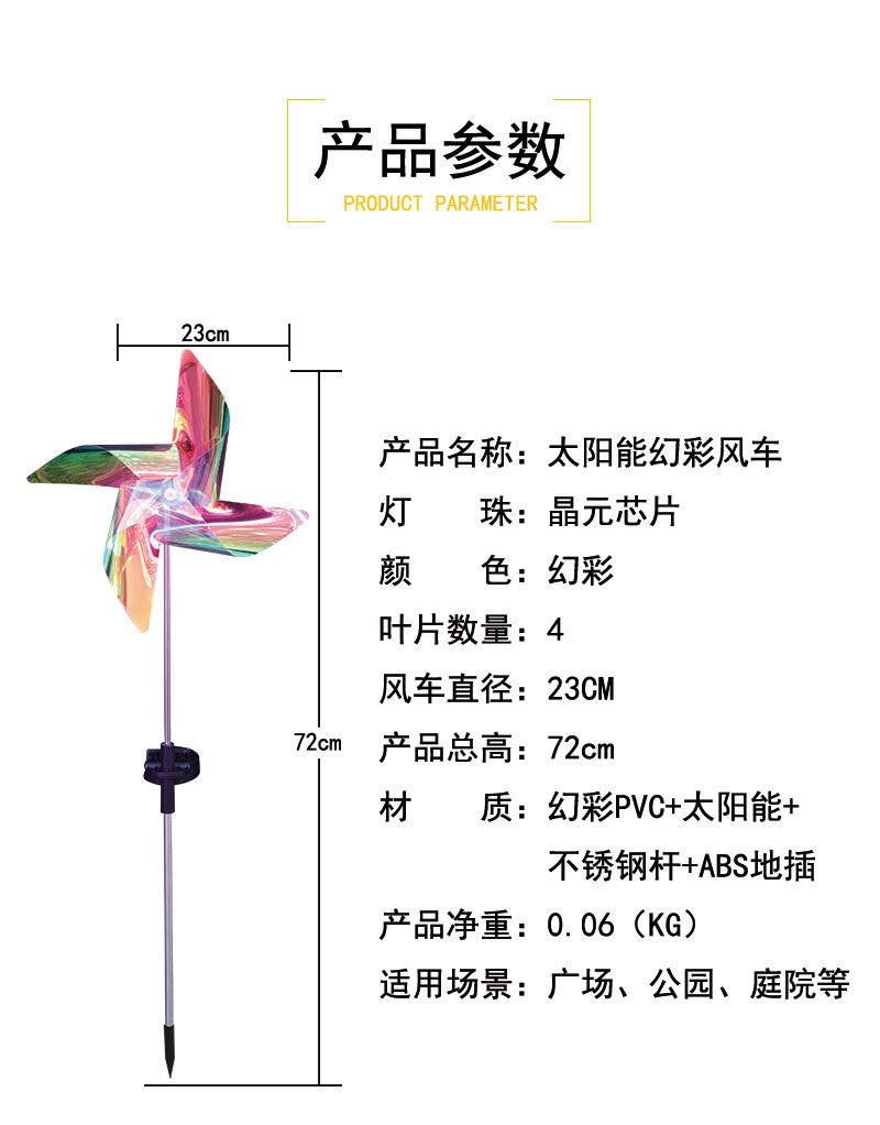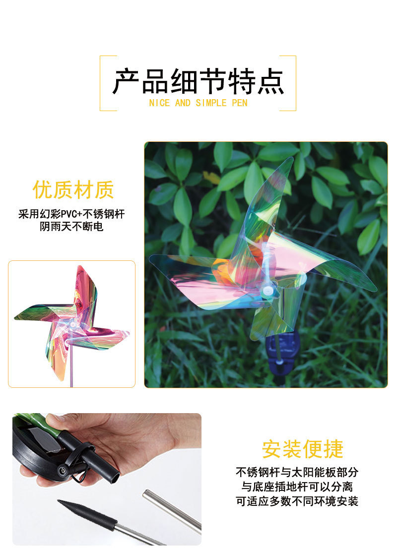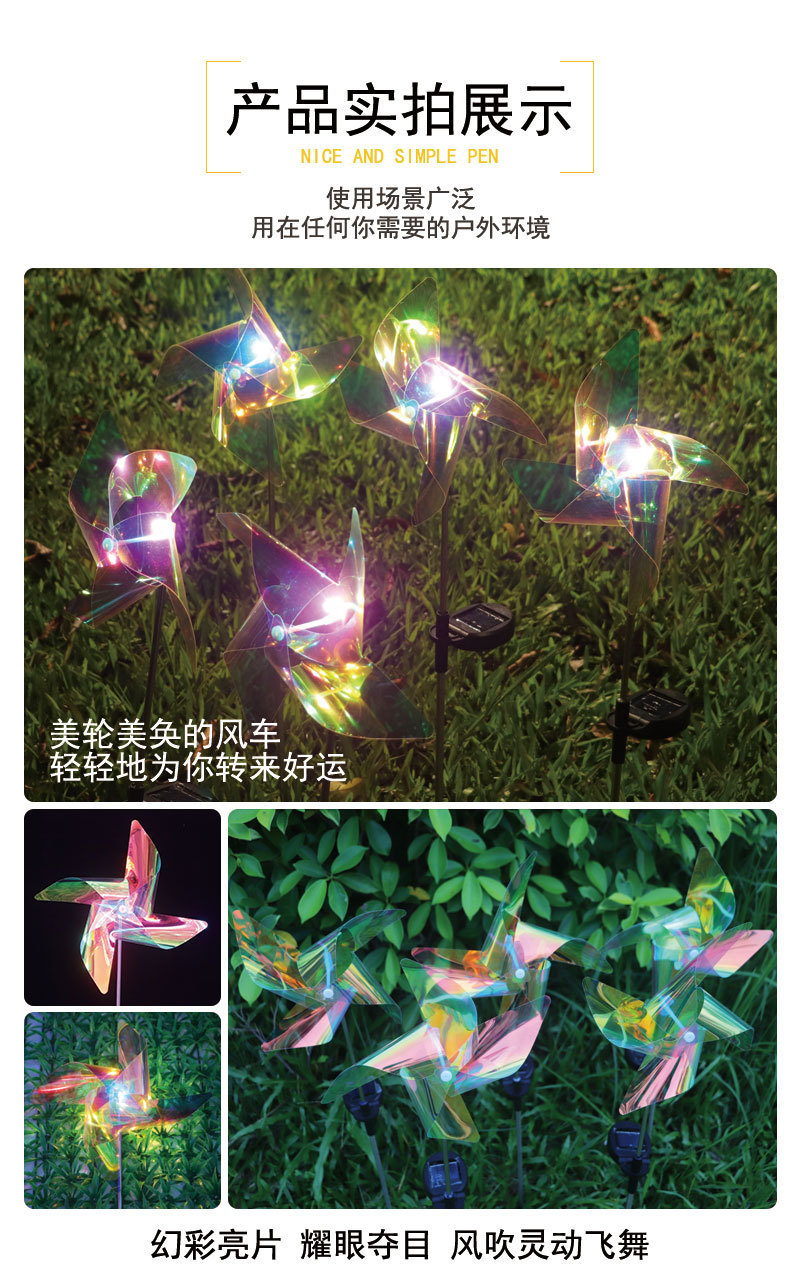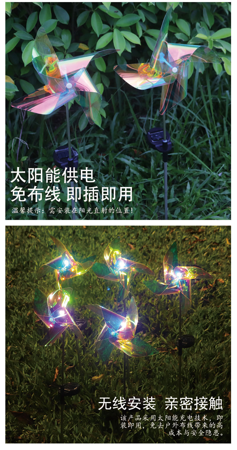LED太阳能风车灯4叶转动风车坪灯户外花园庭院装饰灯地插灯