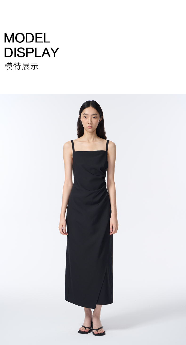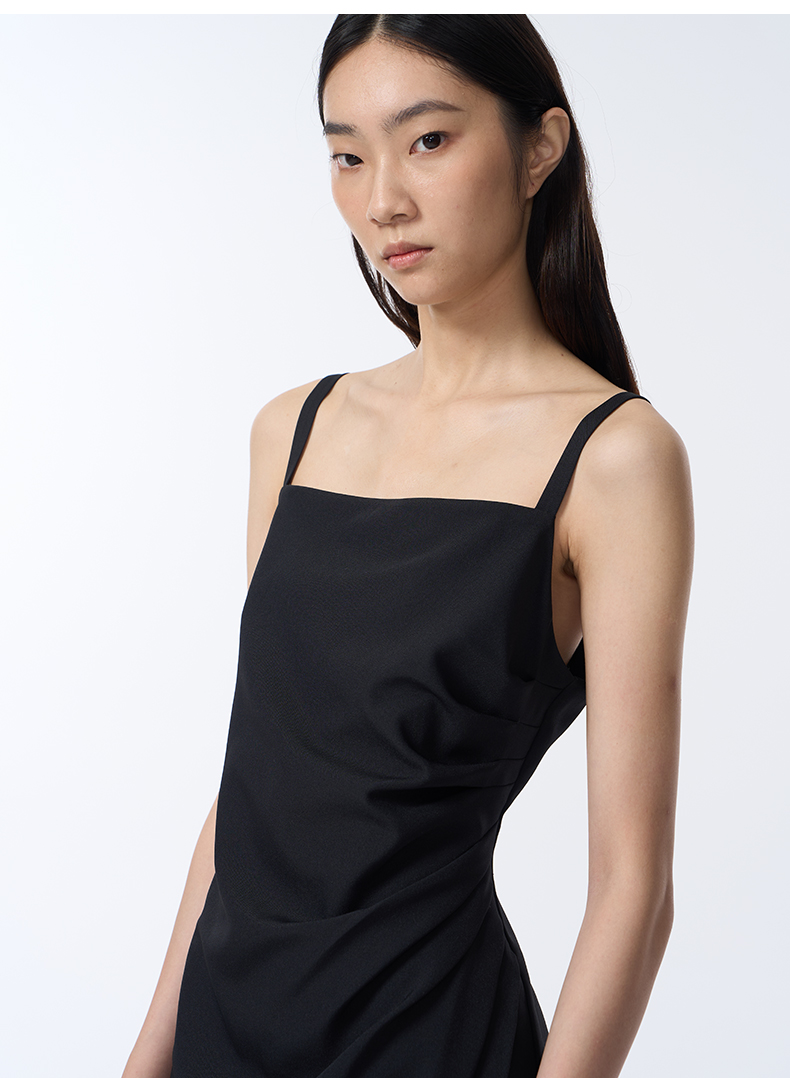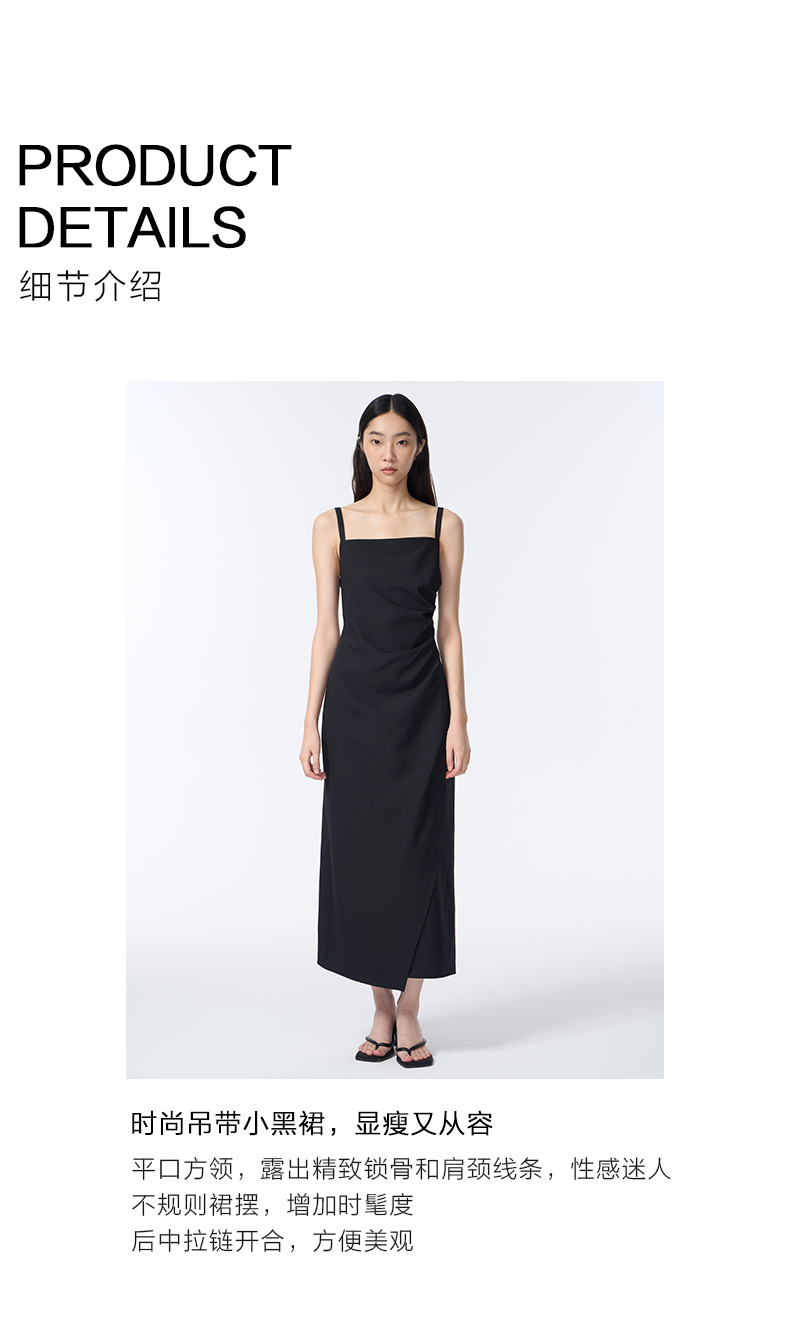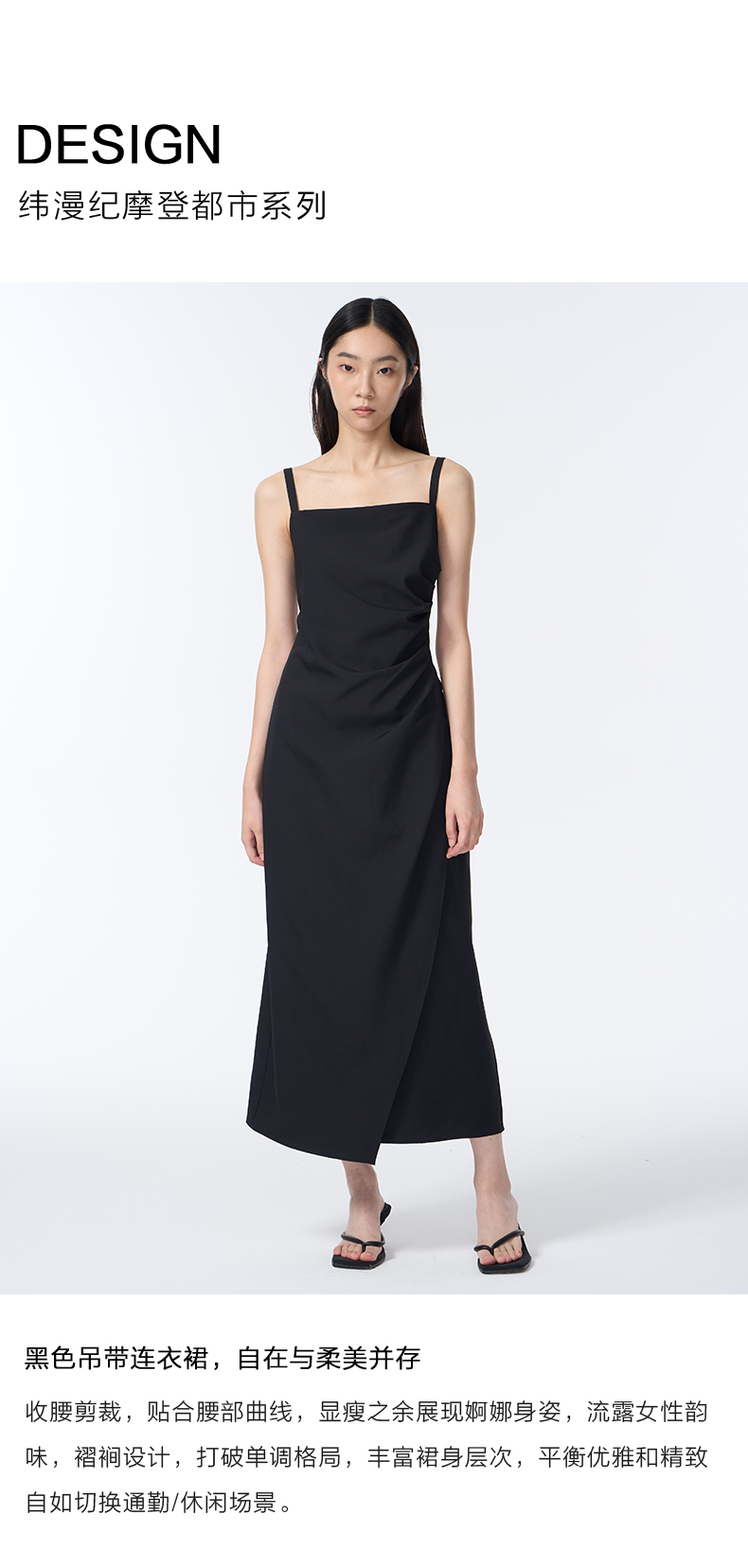 VIMAGE纬漫纪气质小黑裙方领收腰显瘦优雅吊带2025秋季新款连衣裙V2407108