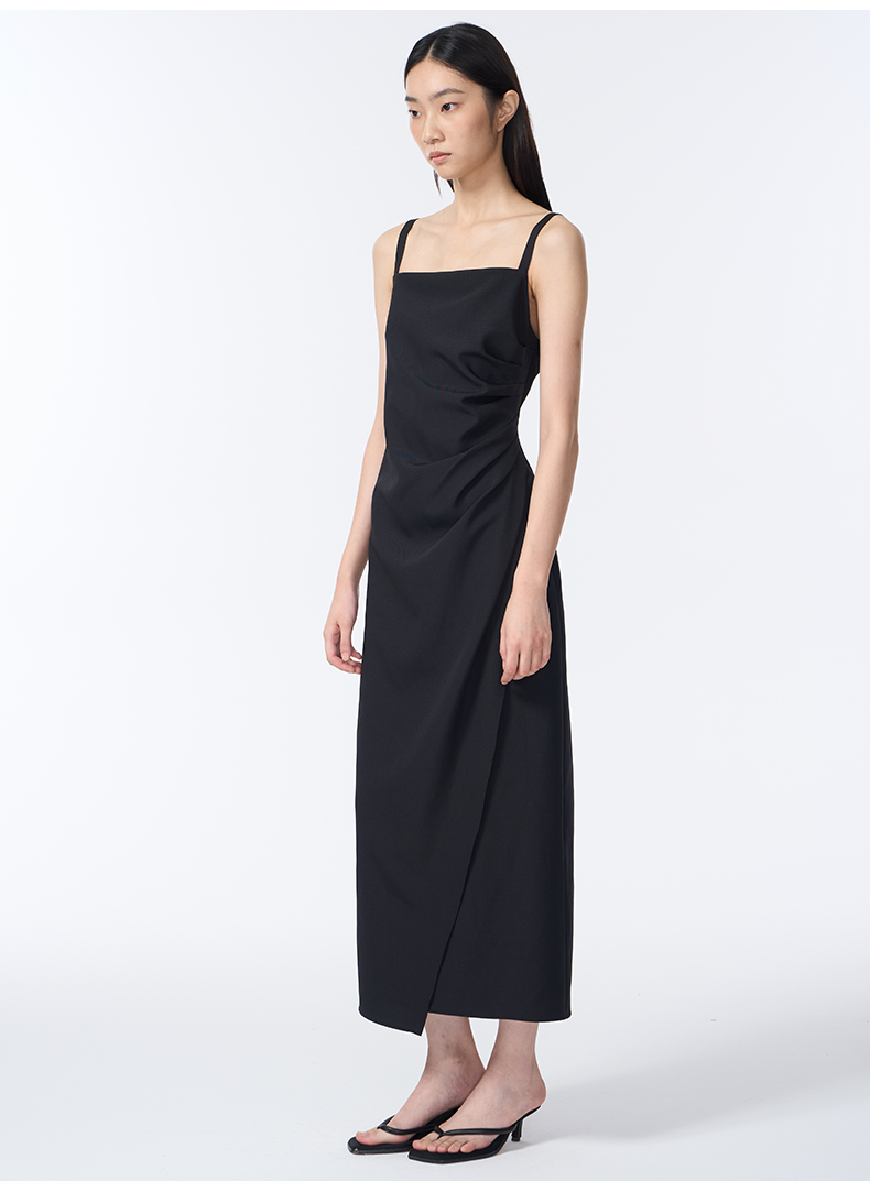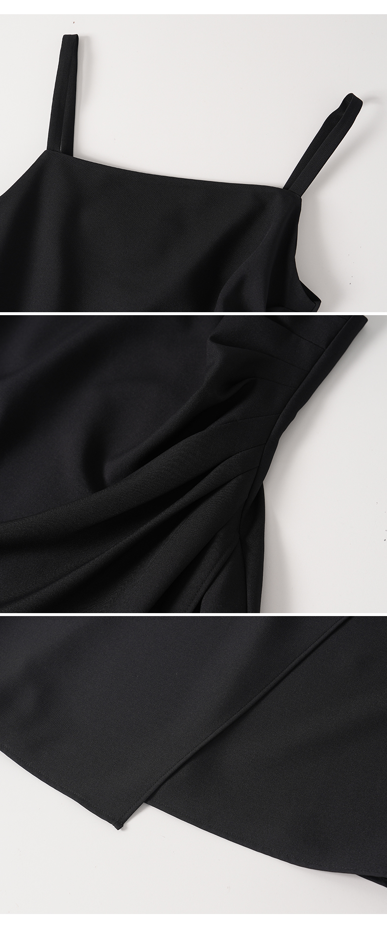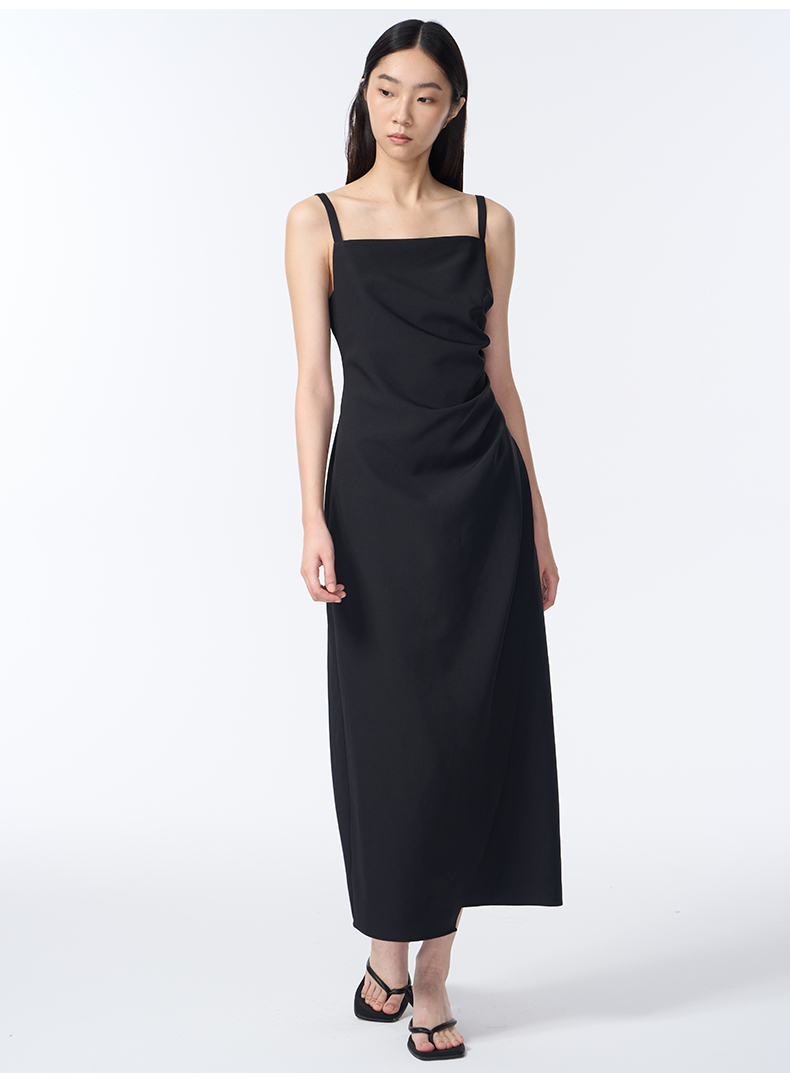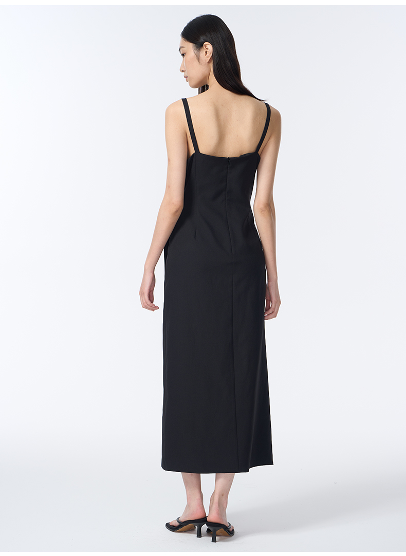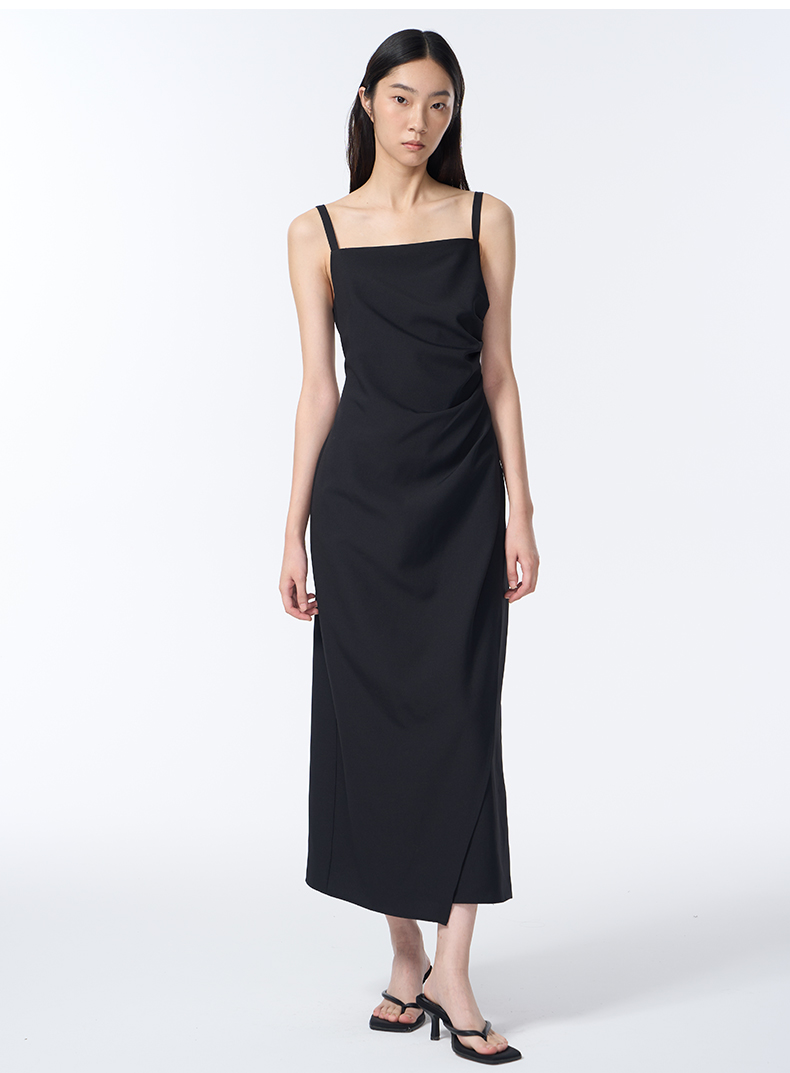 VIMAGE纬漫纪气质小黑裙方领收腰显瘦优雅吊带2025秋季新款连衣裙V2407108