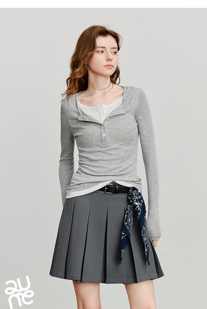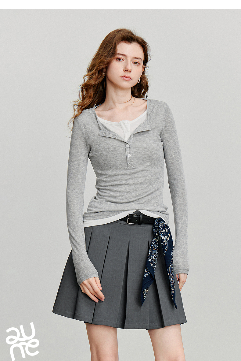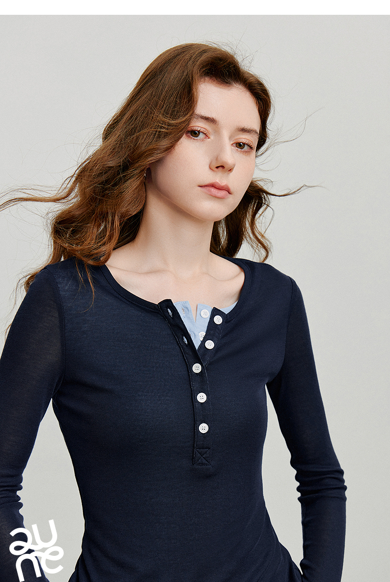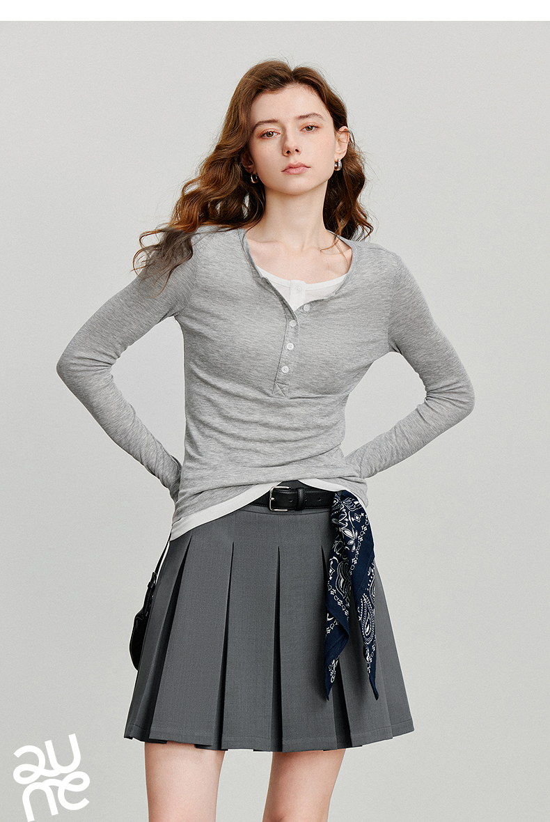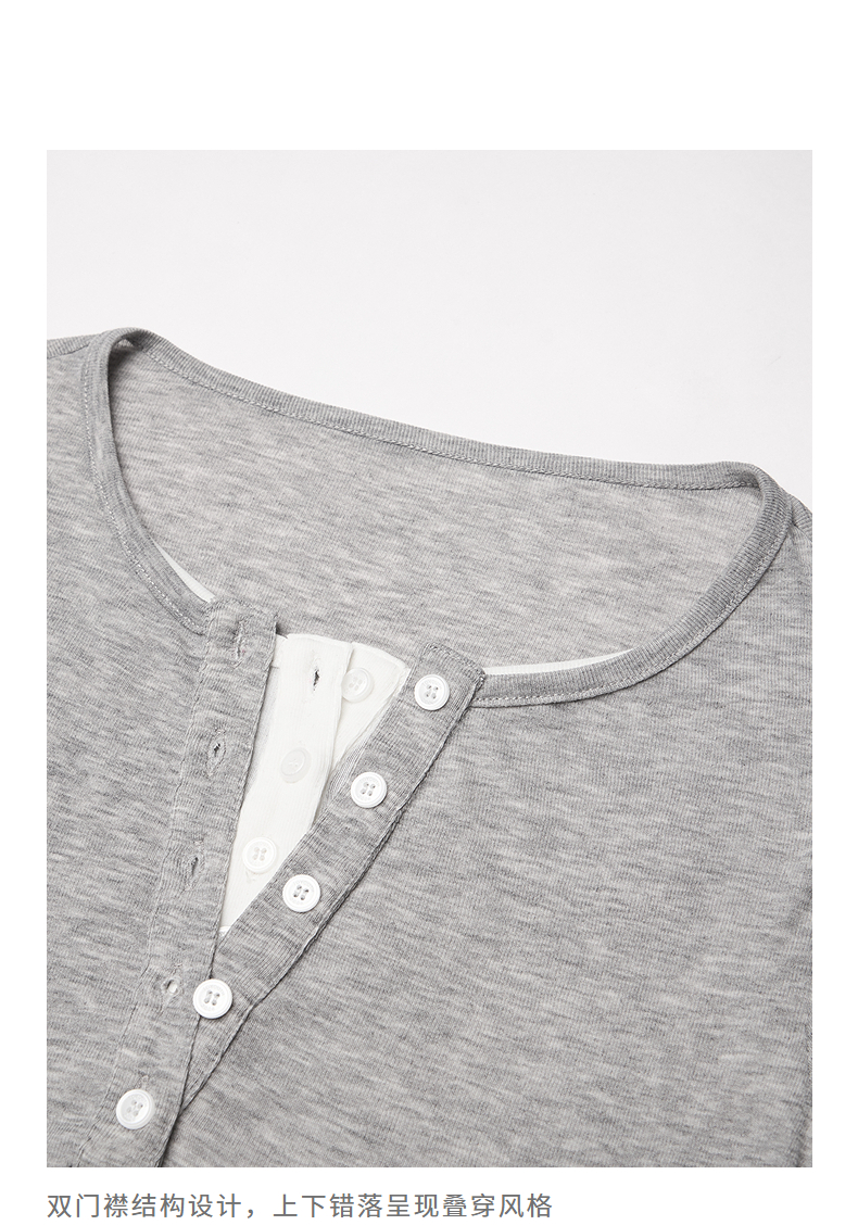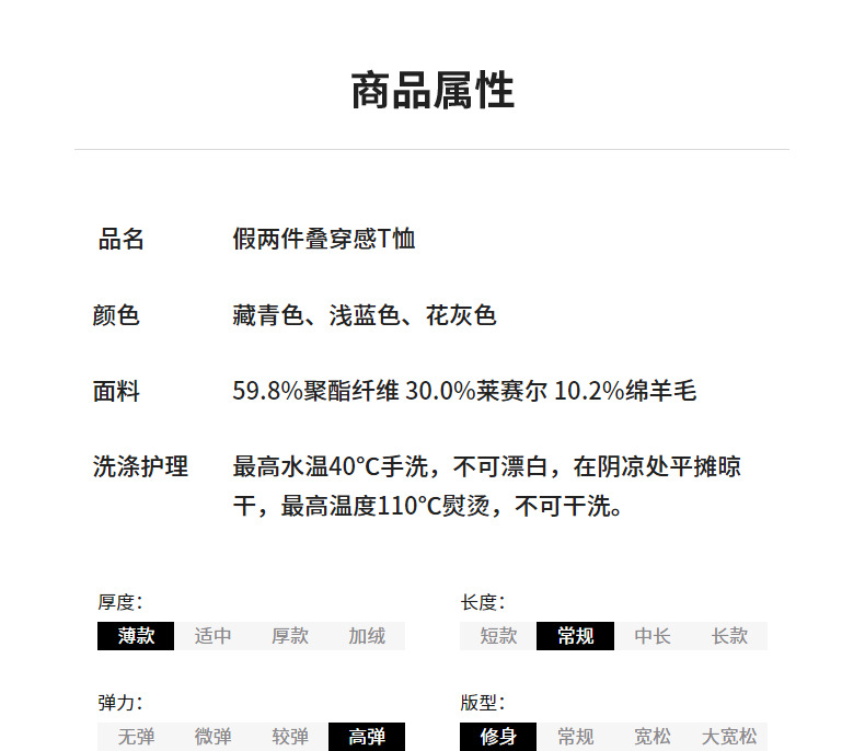 初语轻薄软糯长袖T恤女撞色假两件时髦叠穿打底衫上衣
