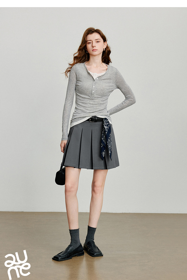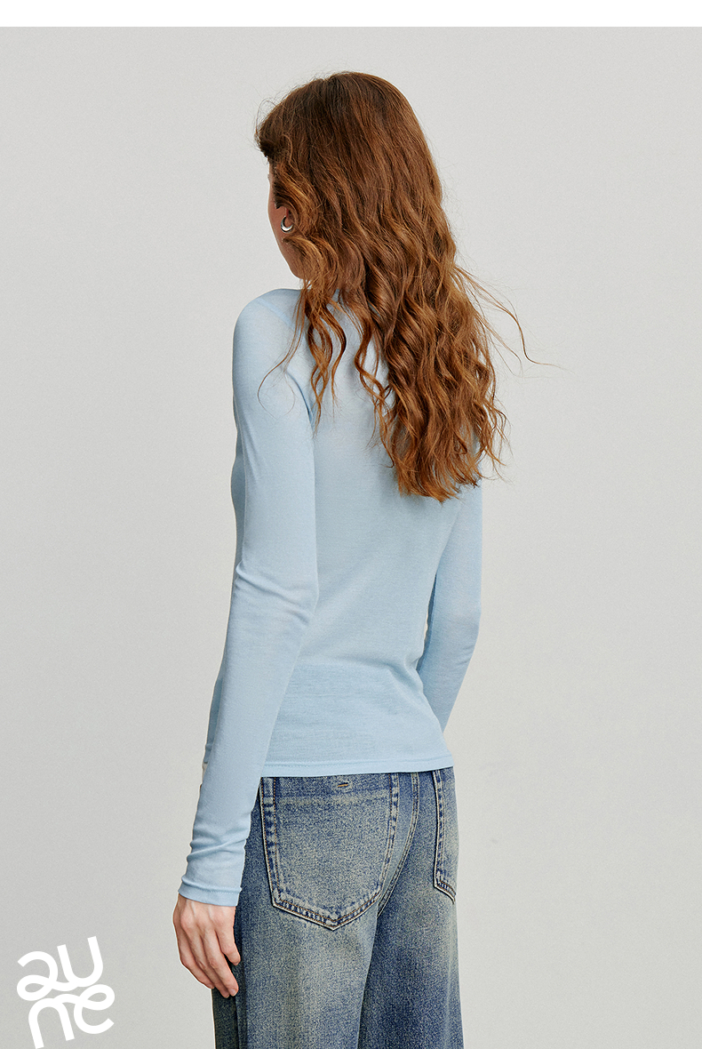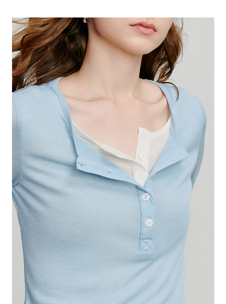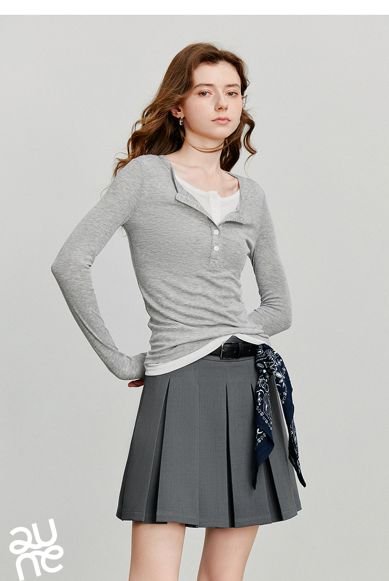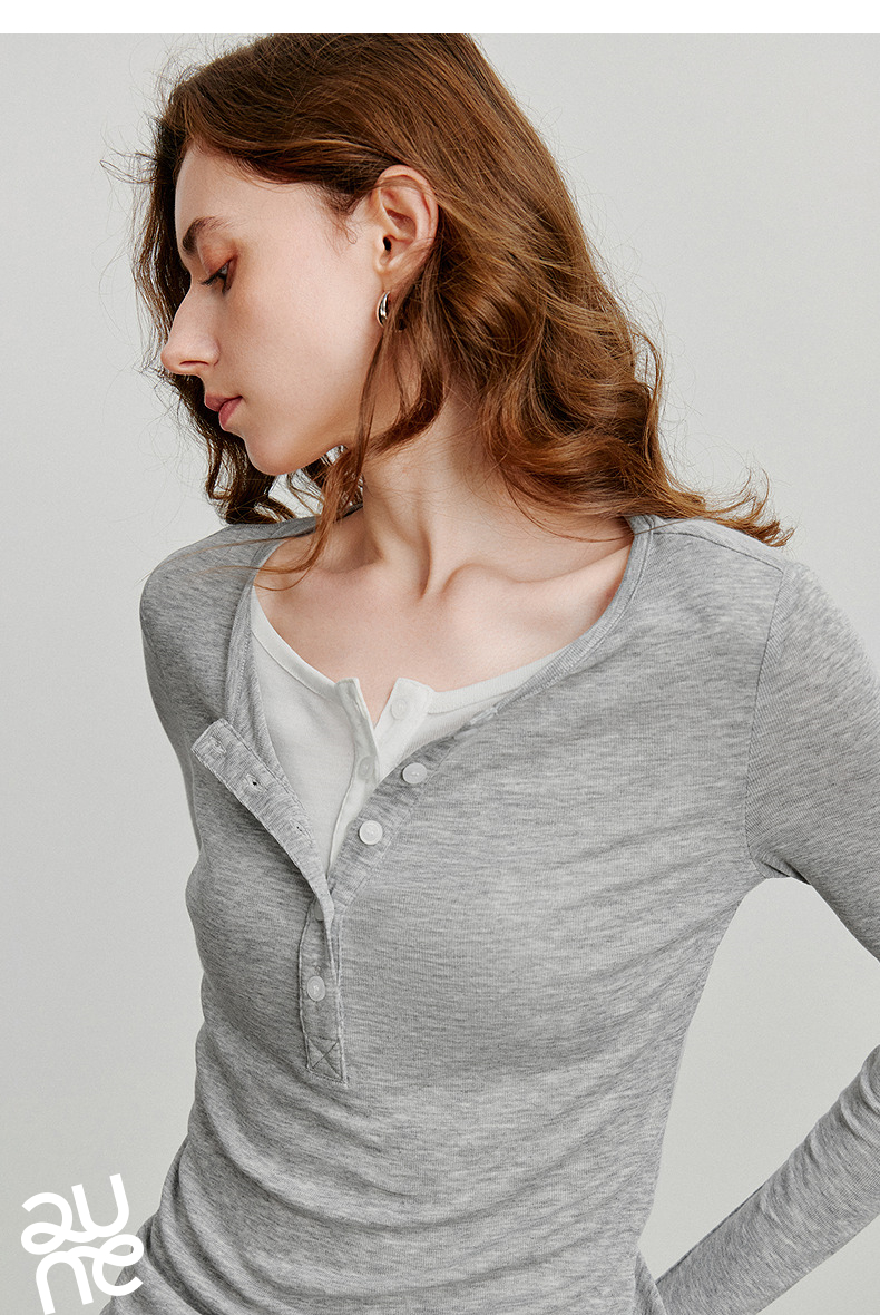 初语轻薄软糯长袖T恤女撞色假两件时髦叠穿打底衫上衣