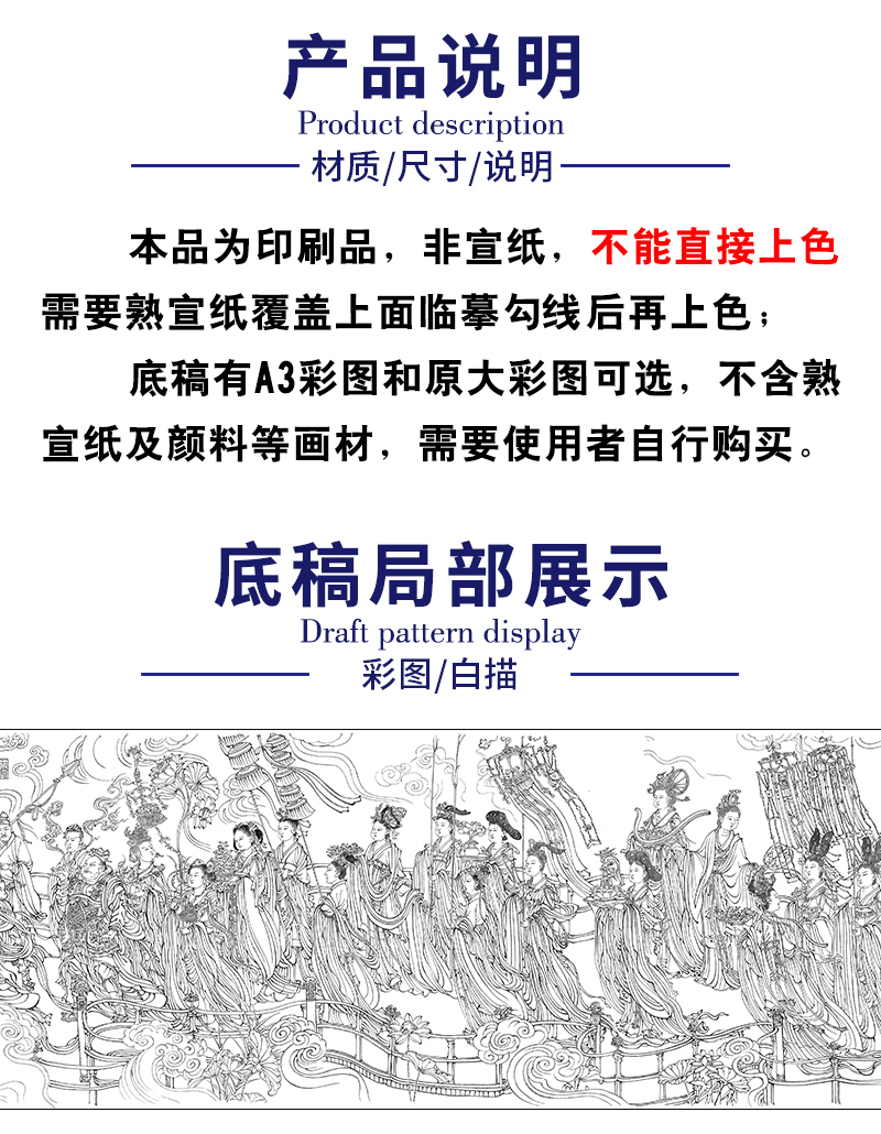 【长卷】工笔人物画白描底稿古画长卷吴道子《八十七神仙卷》多种白描尺寸可选G011