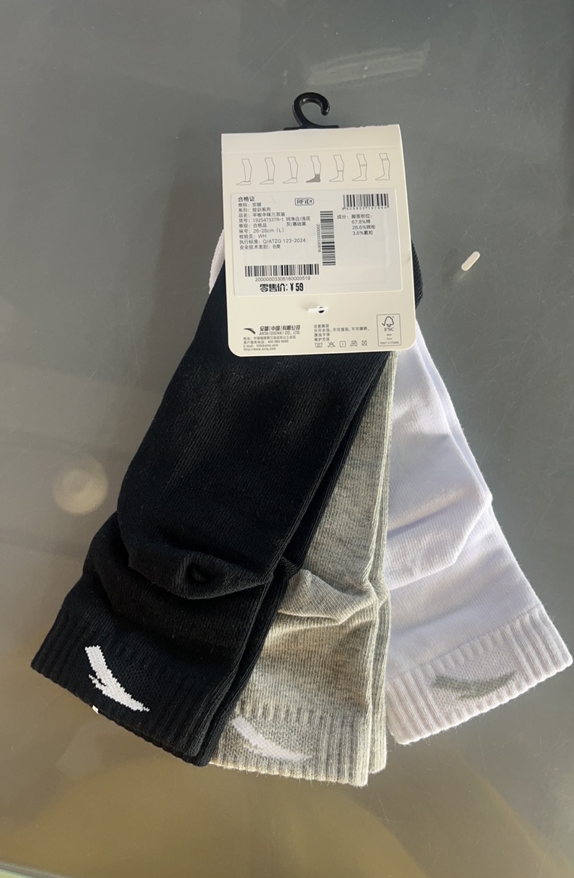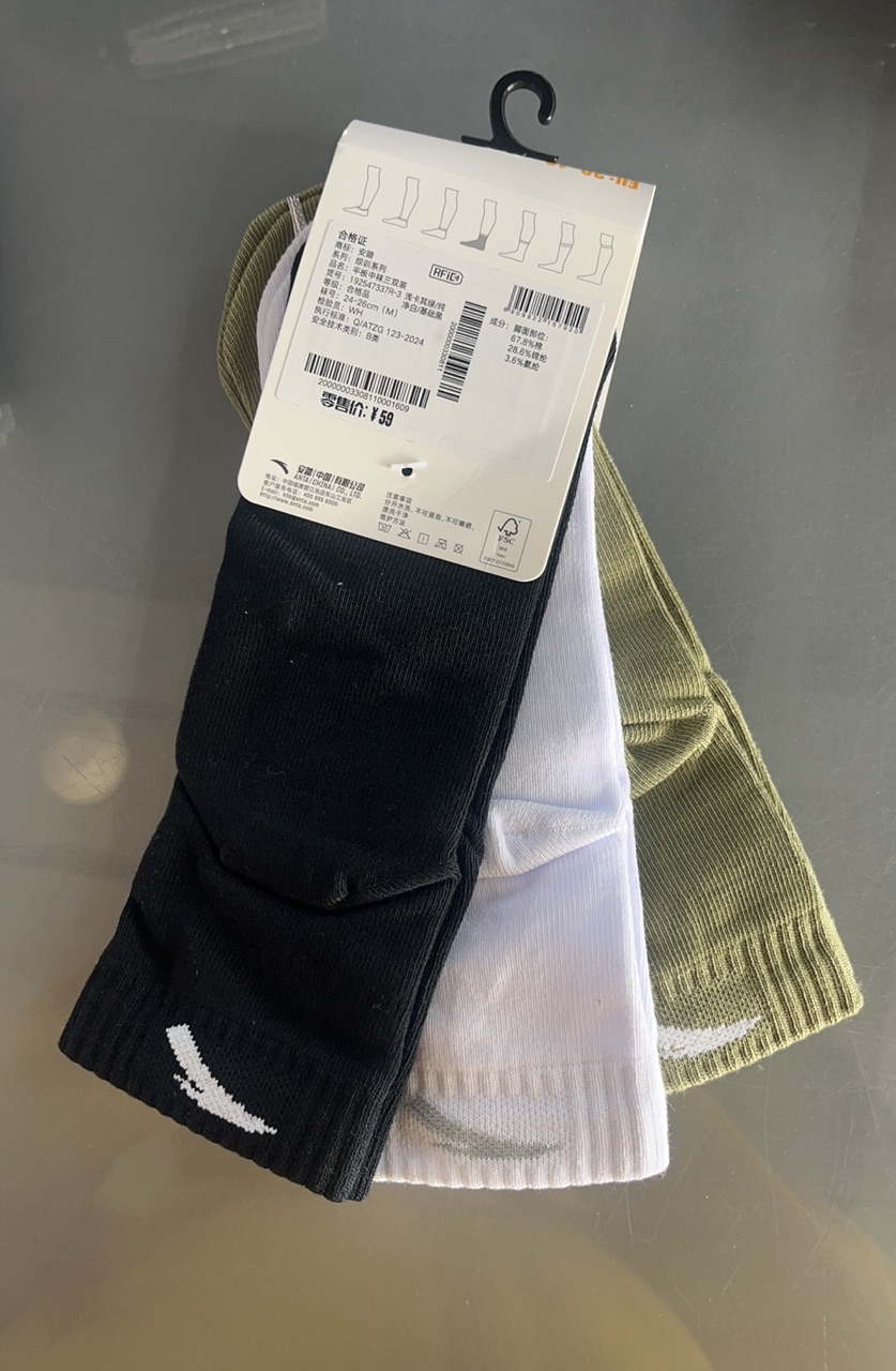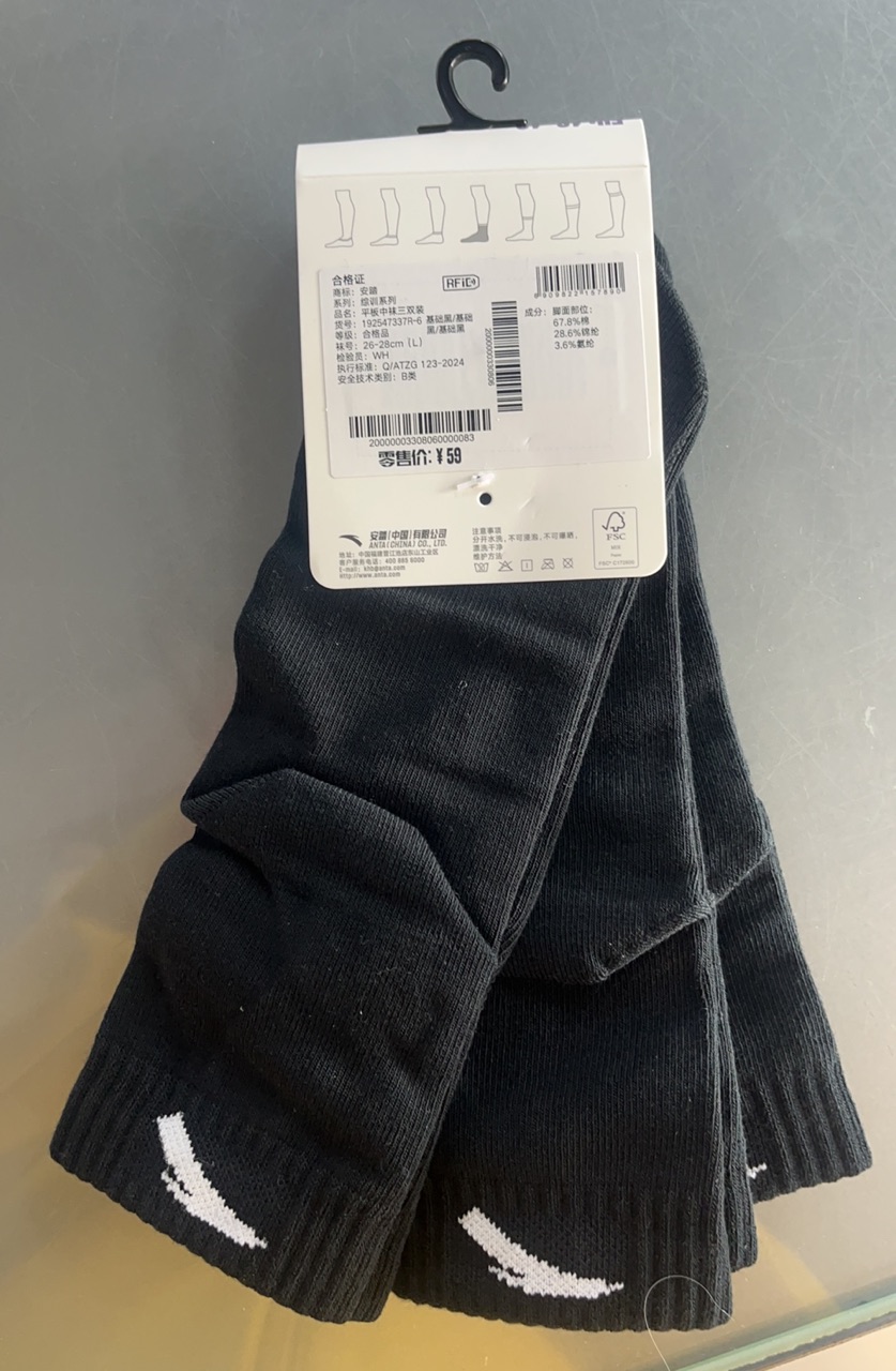 安踏运动平板中袜透气吸汗防臭中袜足球篮球跑步袜健身袜子192547337R