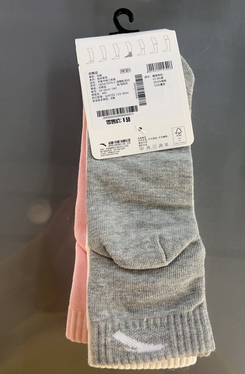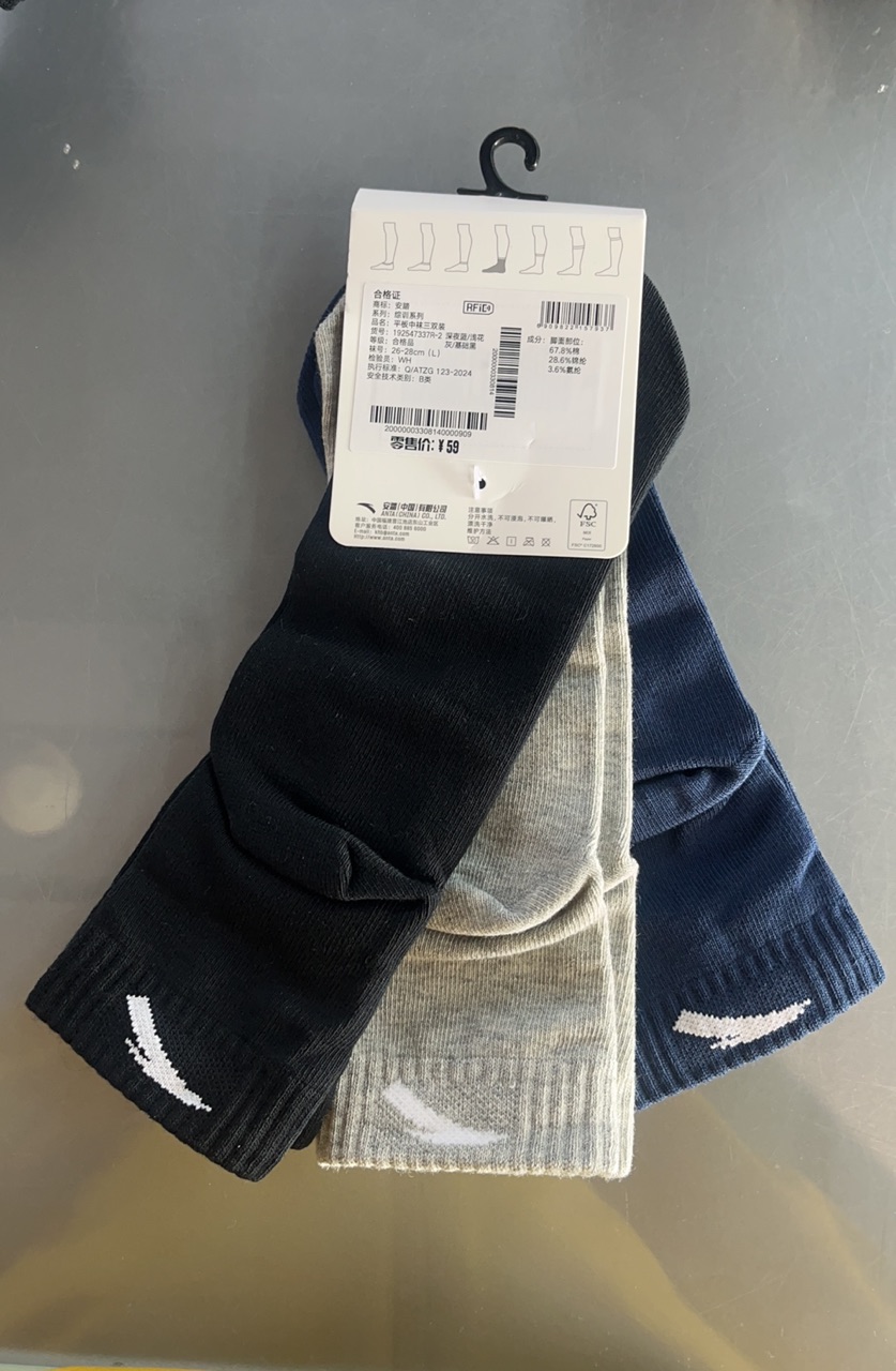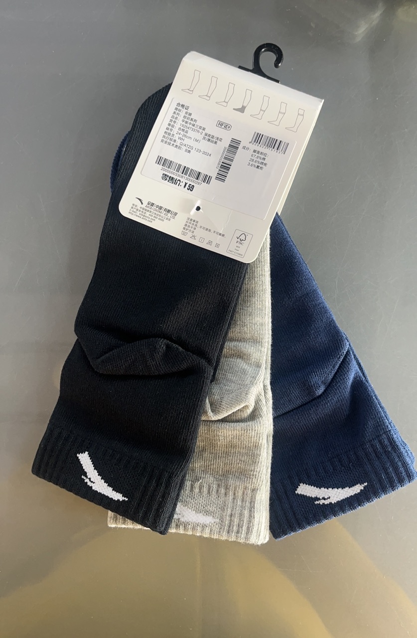 安踏运动平板中袜透气吸汗防臭中袜足球篮球跑步袜健身袜子192547337R