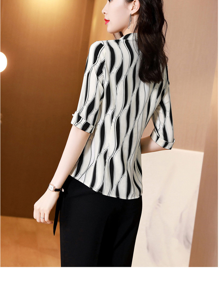 MZ 105240时尚减龄条纹雪纺衬衫