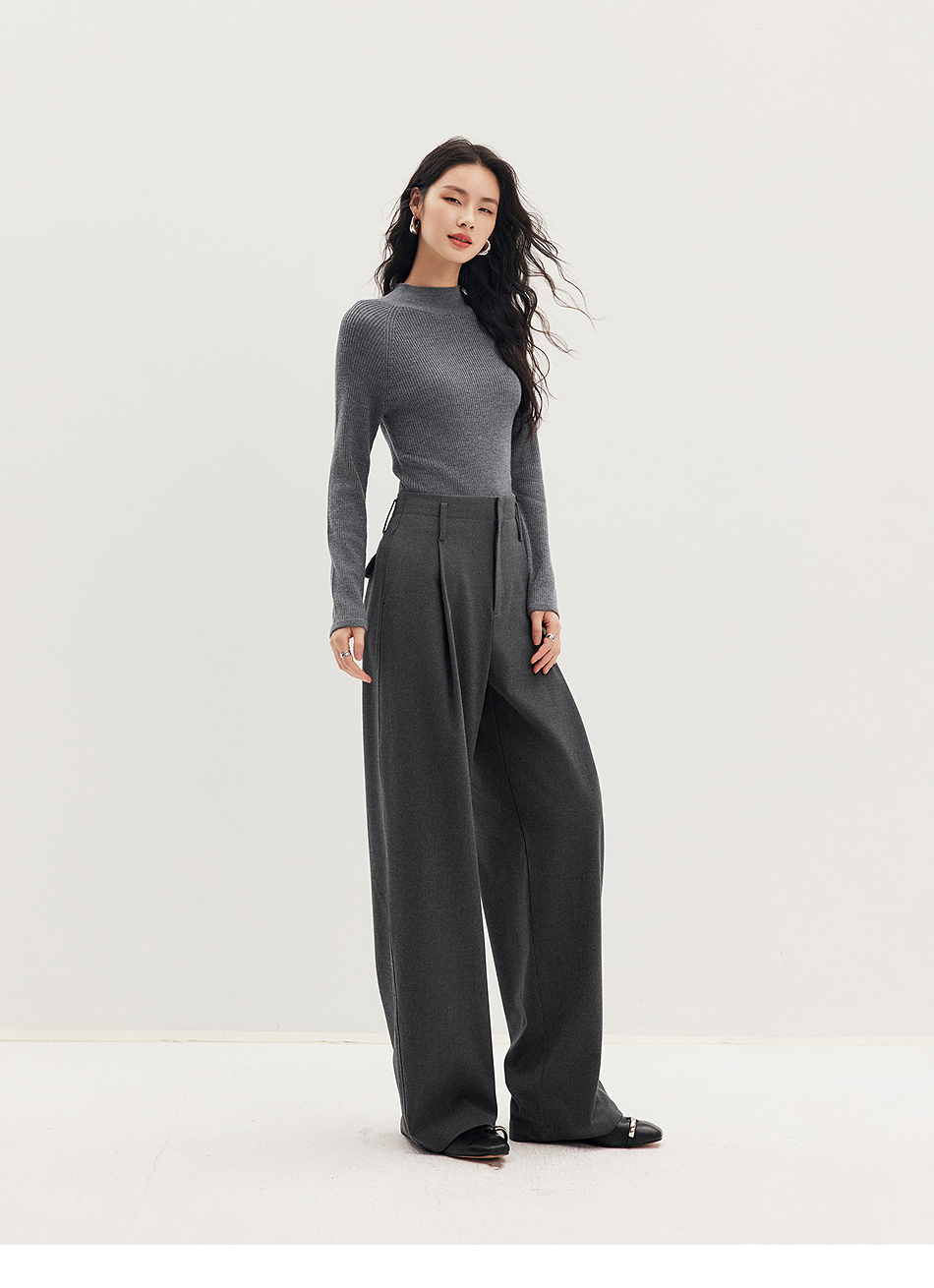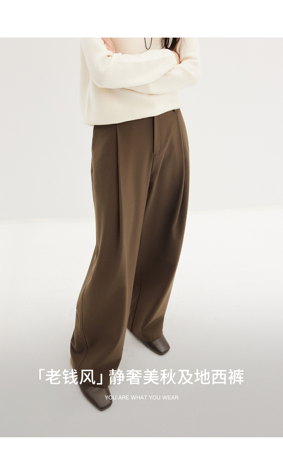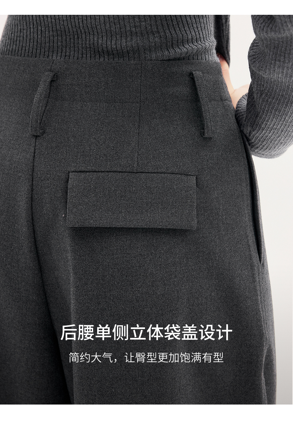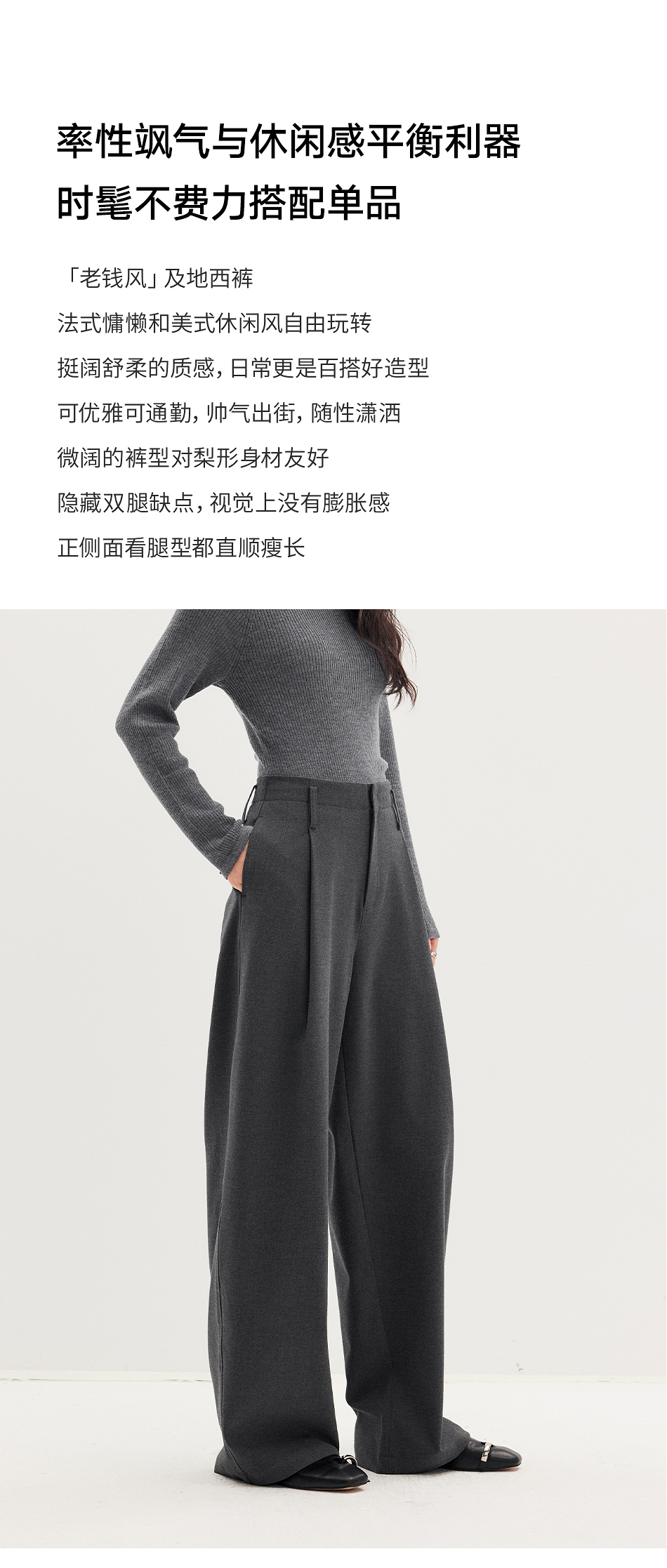 26早春 老钱风连腰设计压褶显瘦西裤 宽松直筒格雷灰休闲裤356618008初棉