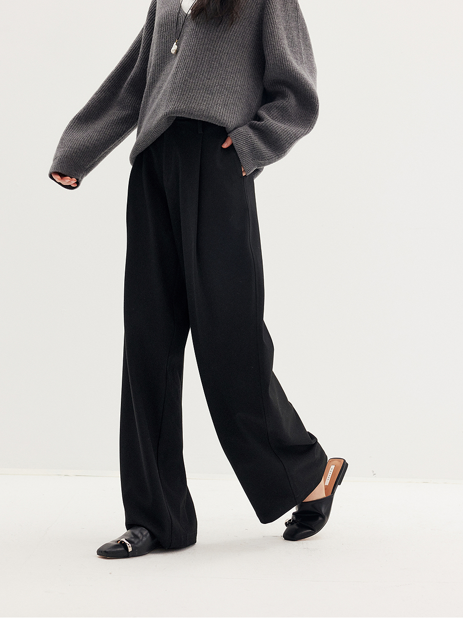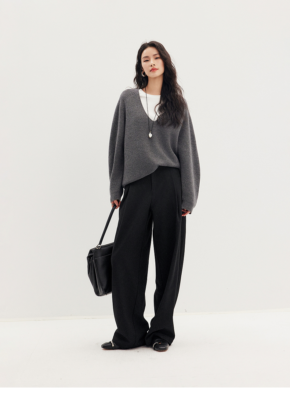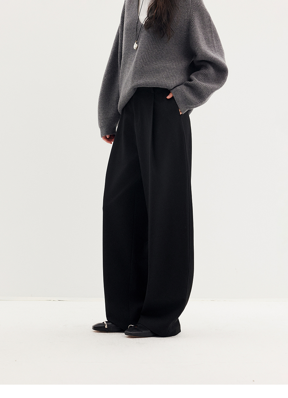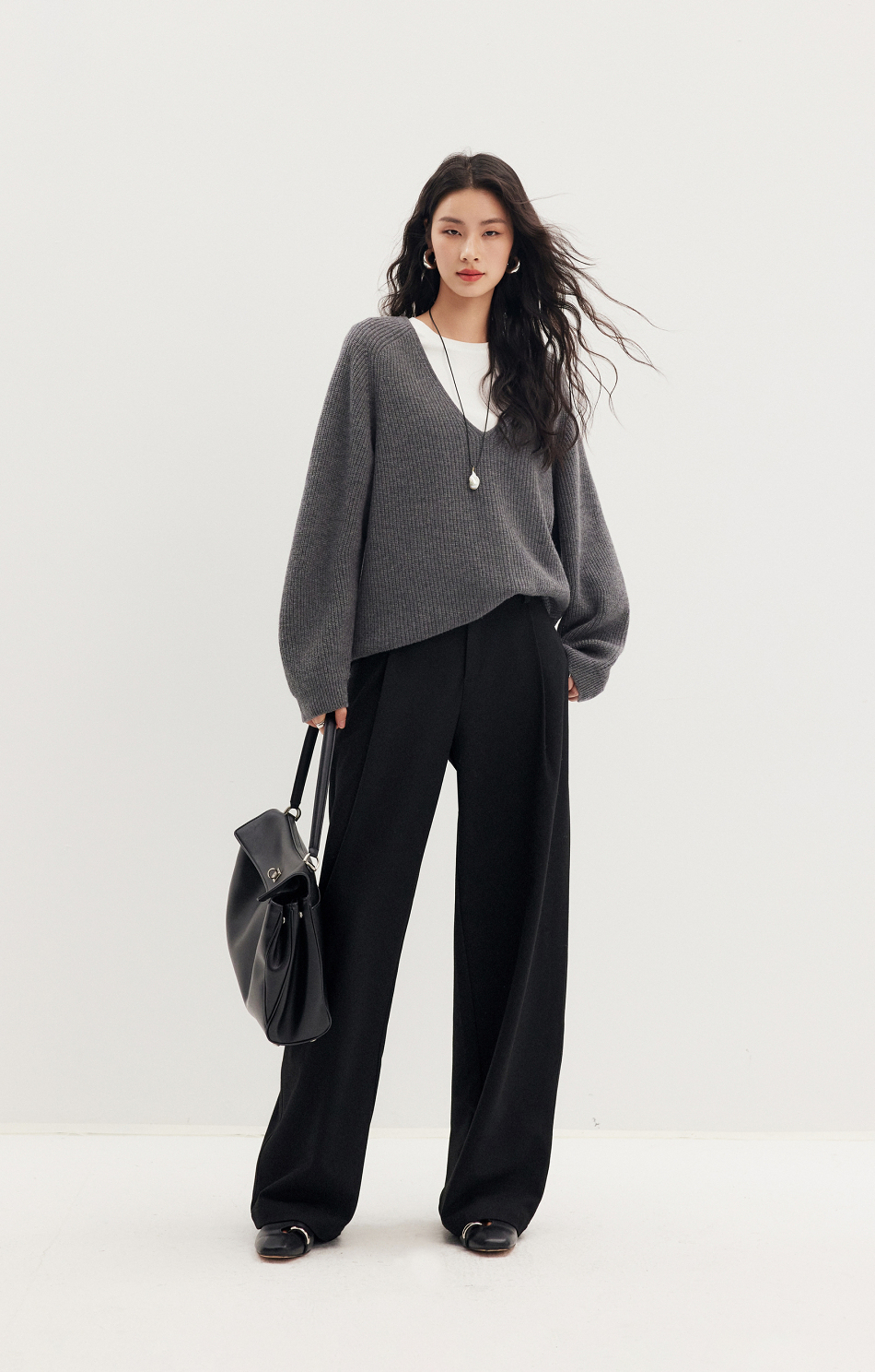 26早春 老钱风连腰设计压褶显瘦西裤 宽松直筒格雷灰休闲裤356618008初棉