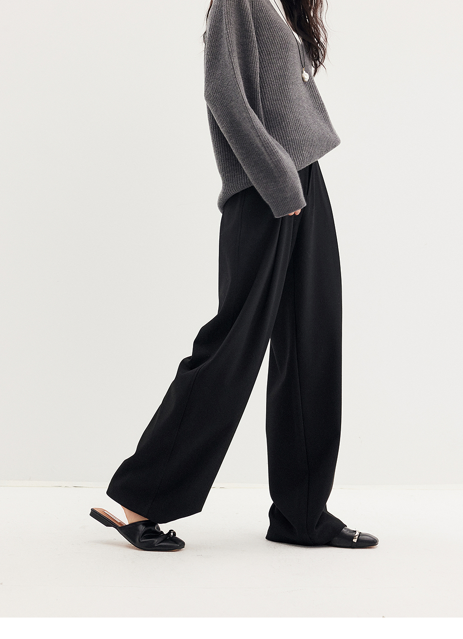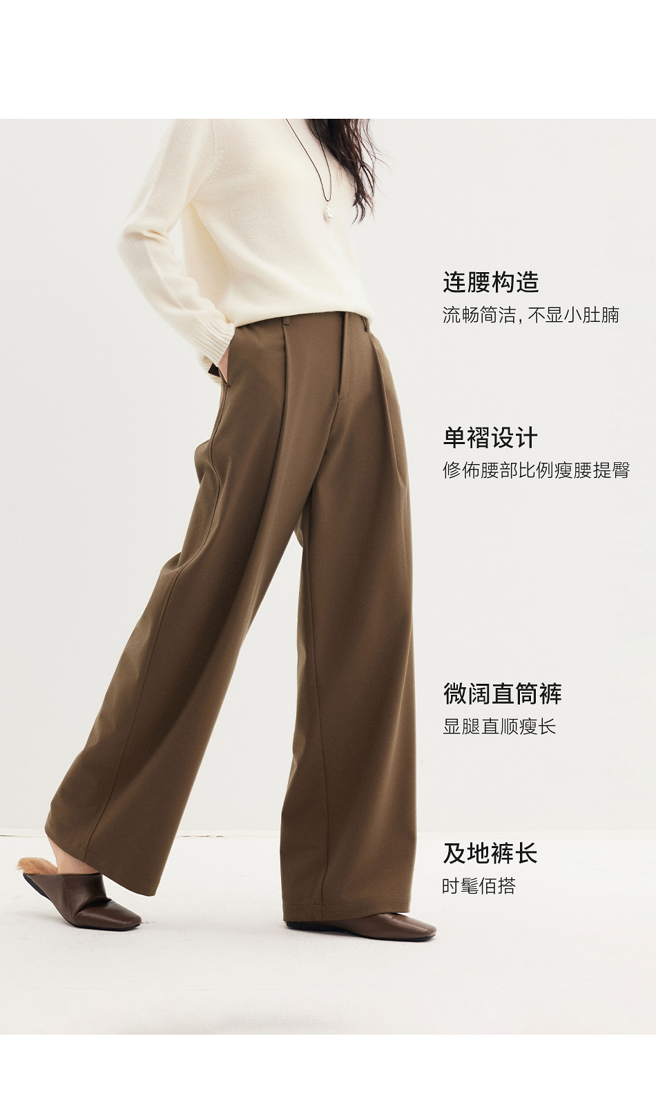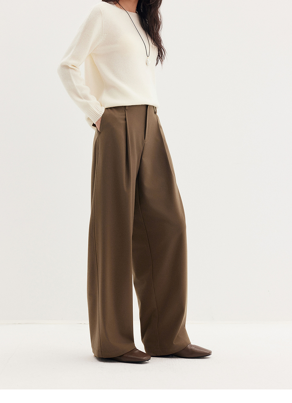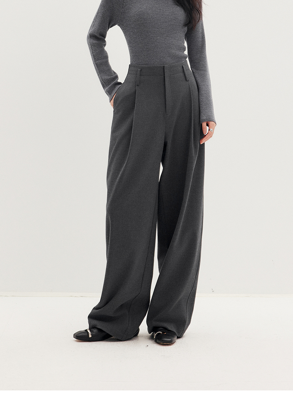 26早春 老钱风连腰设计压褶显瘦西裤 宽松直筒格雷灰休闲裤356618008初棉