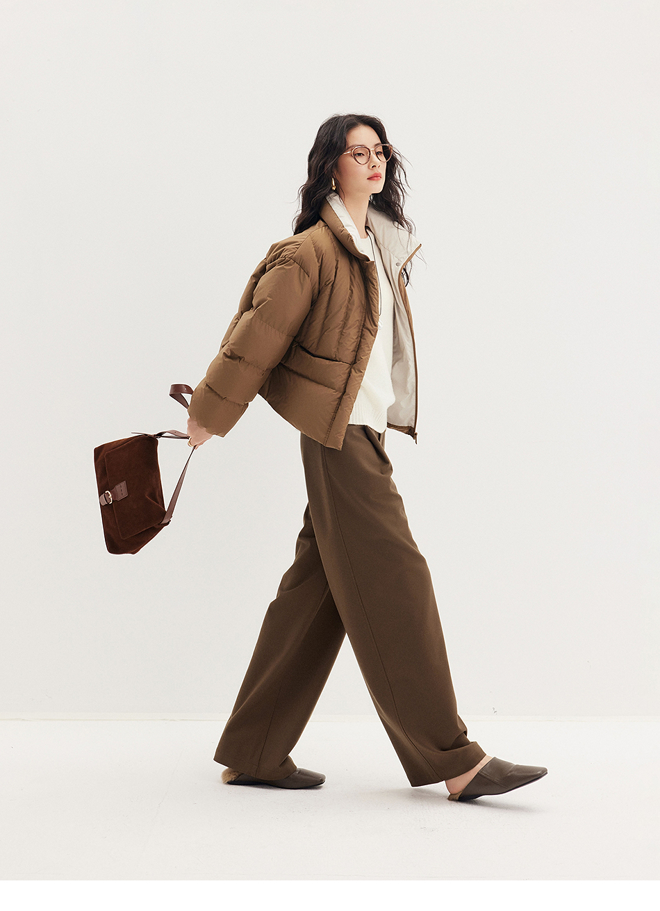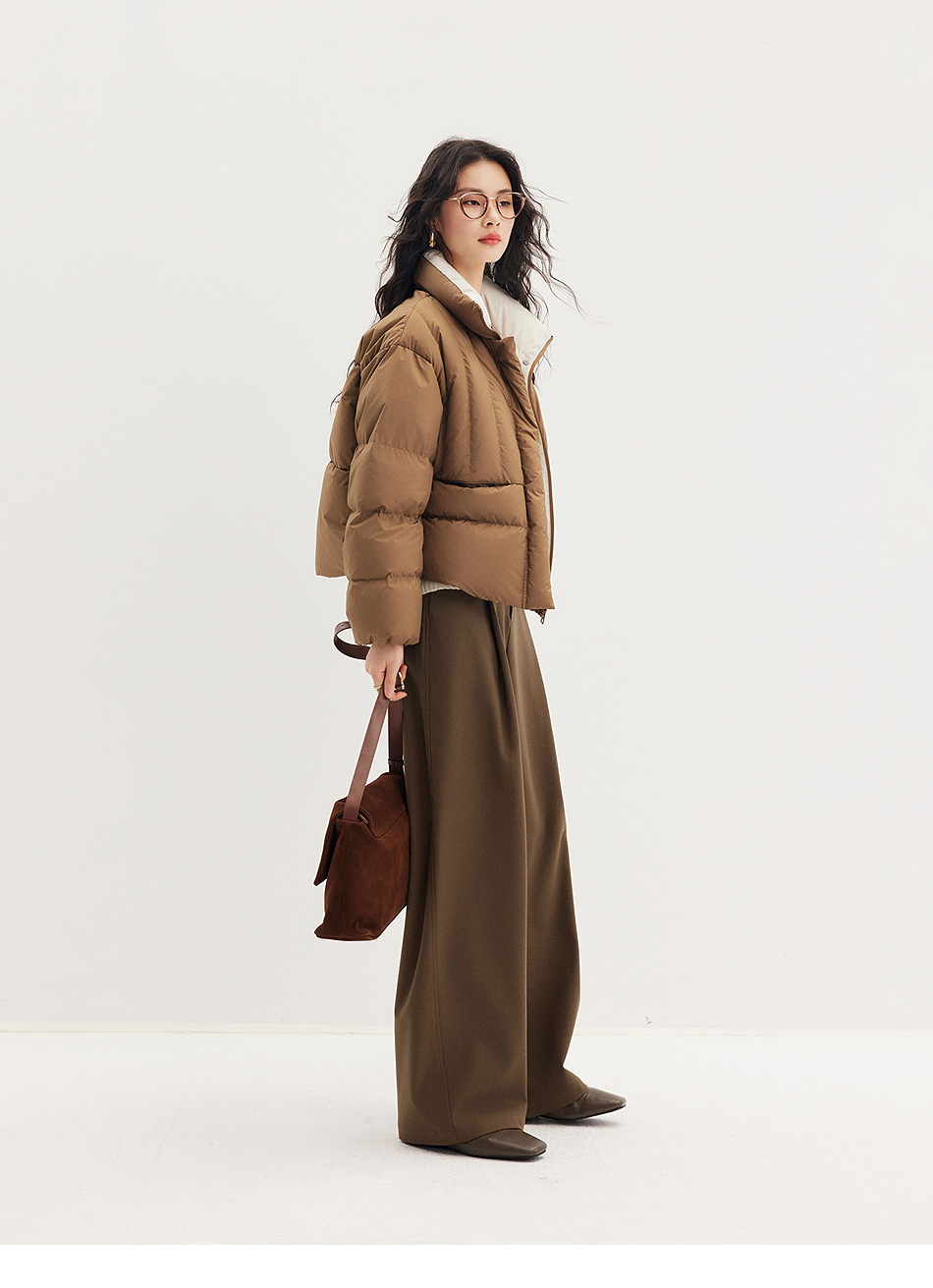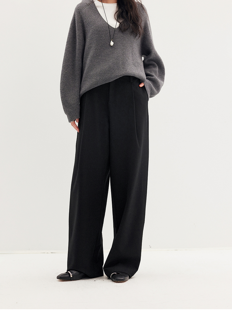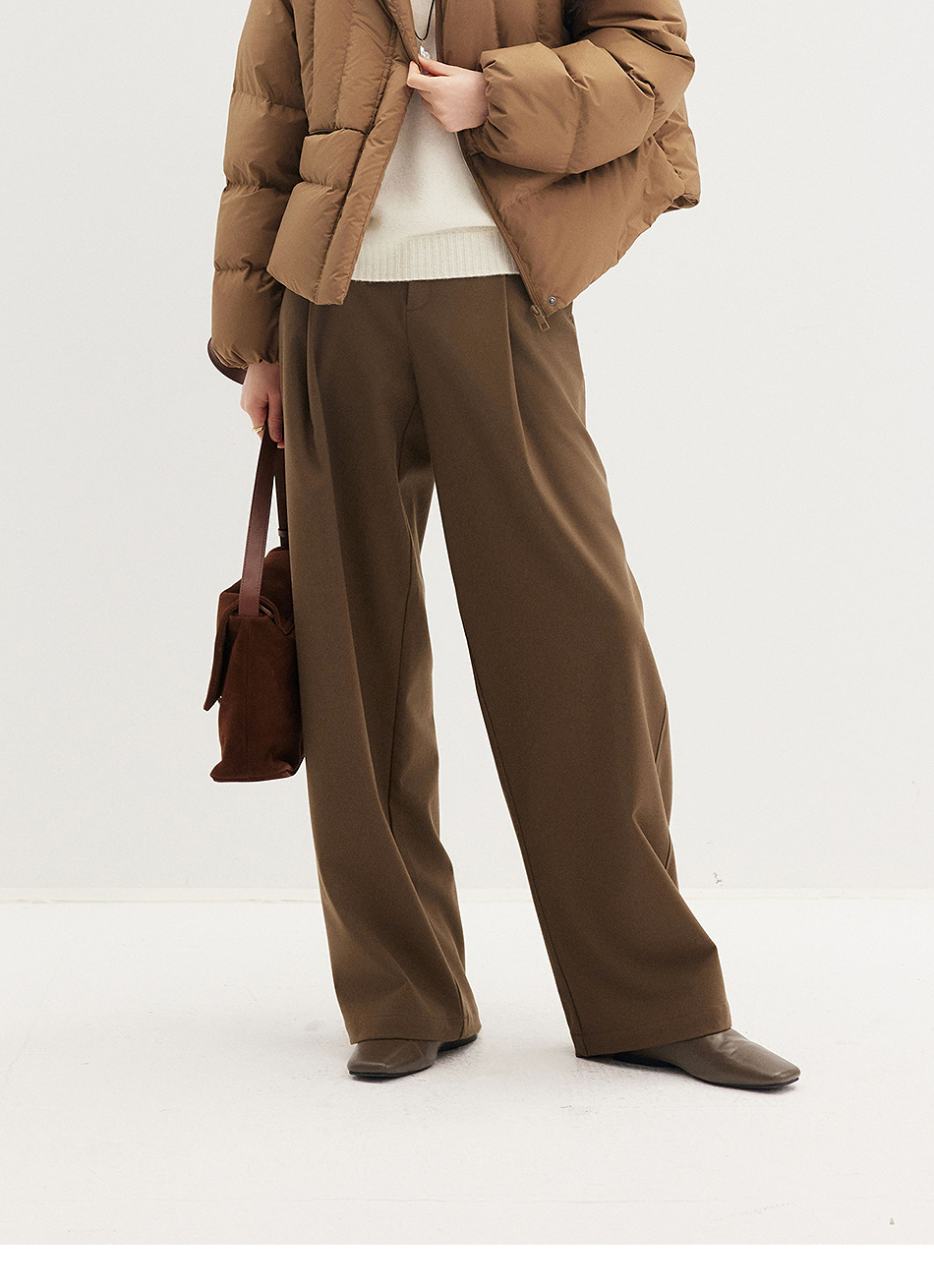 26早春 老钱风连腰设计压褶显瘦西裤 宽松直筒格雷灰休闲裤356618008初棉
