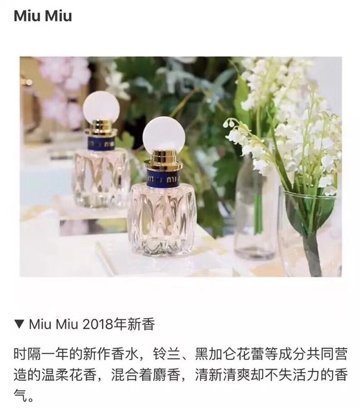 miu miu/缪缪2018新款铃兰玫瑰之水女士香水100mlmiumiu18年新款😏撩了我的一顆少女心❤️超划算哦,以專櫃50ml的價錢買到100ml💰💰前調:🌼醋栗葉 中調:鈴蘭 後調:麝香顏值不用說了 粉色液體太美,少女心爆棚💕,香味上鈴蘭很明顯,很甜很清新的少女香🌸