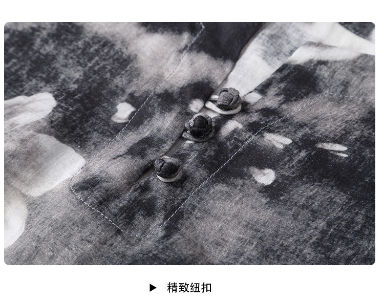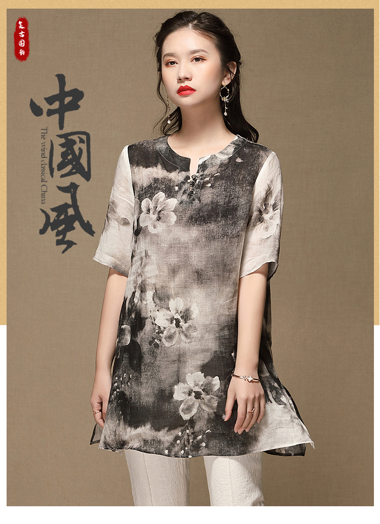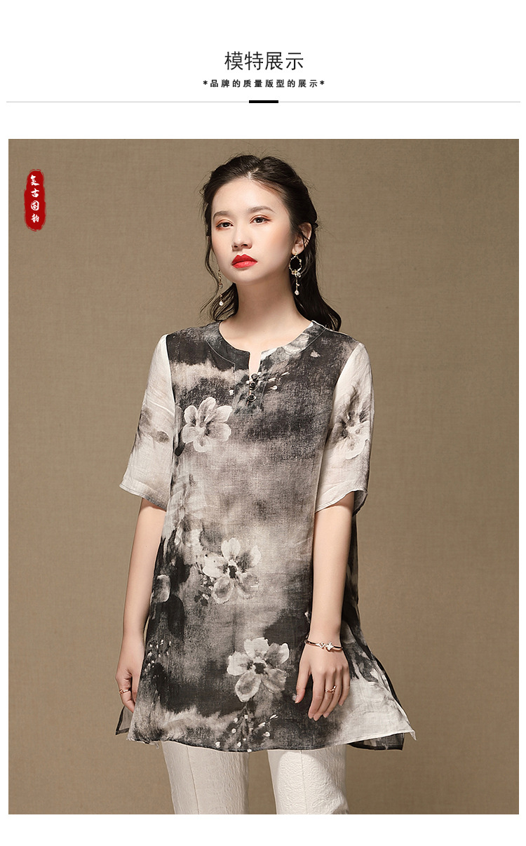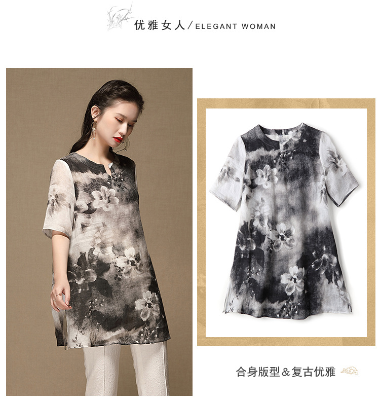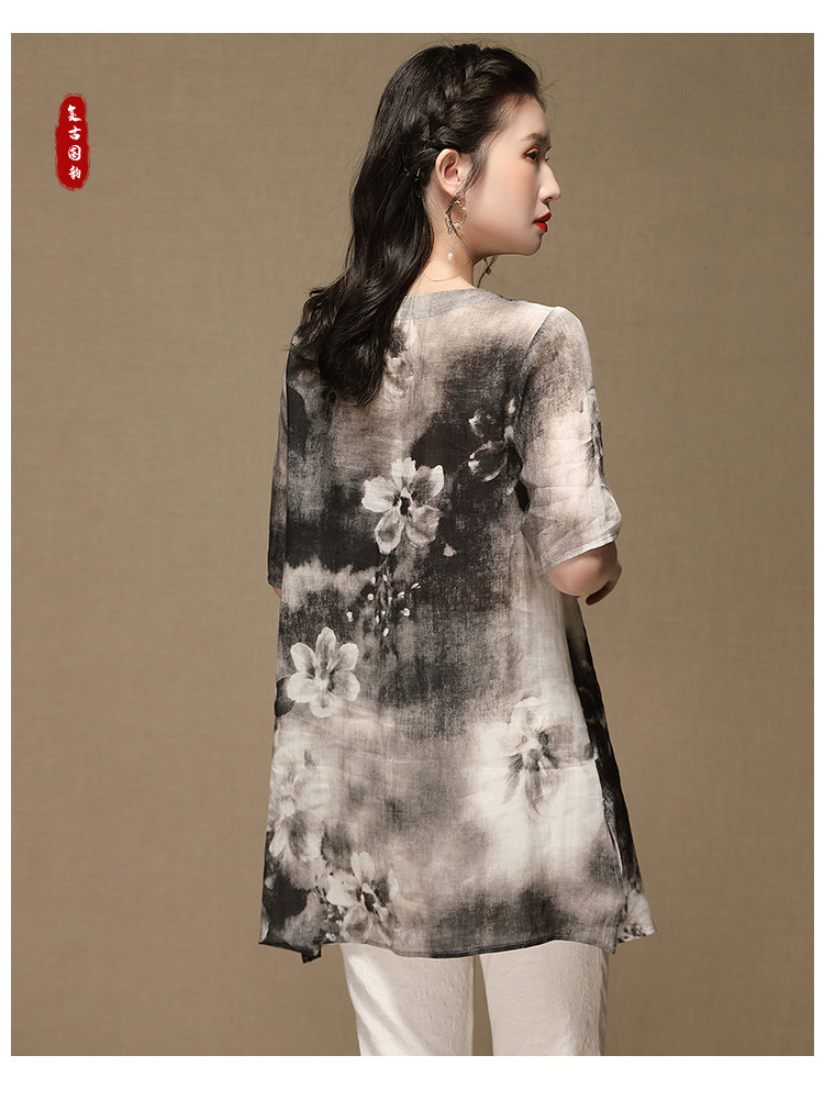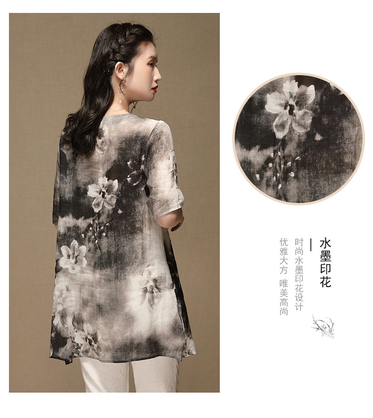 上海旗袍厂AYK-QF-200412水墨中长款国风改良圆领唐装2021春夏新款女装复古七分袖上衣女