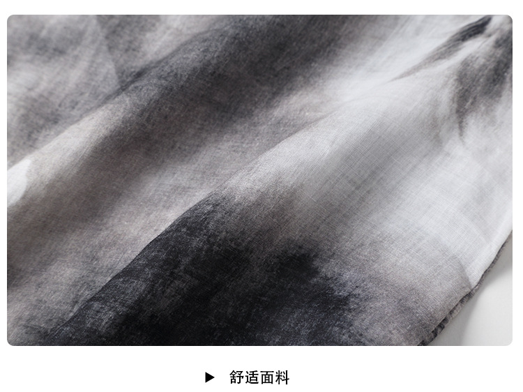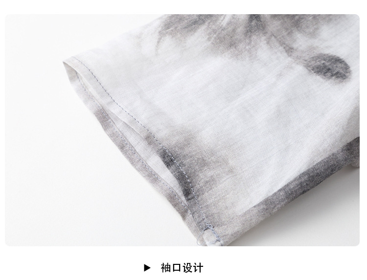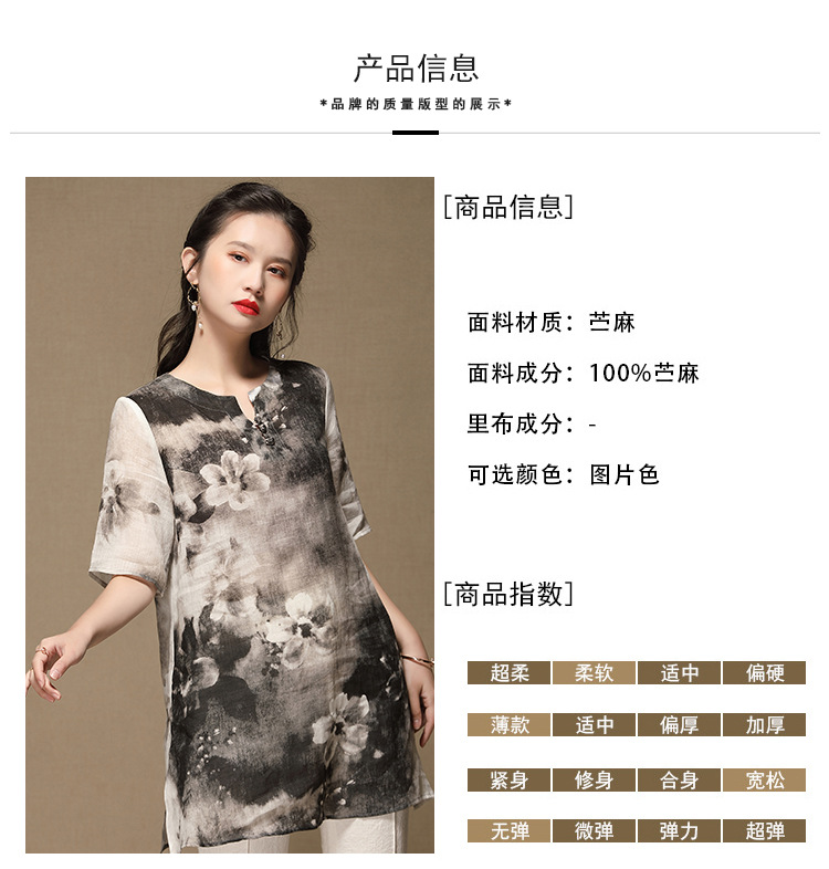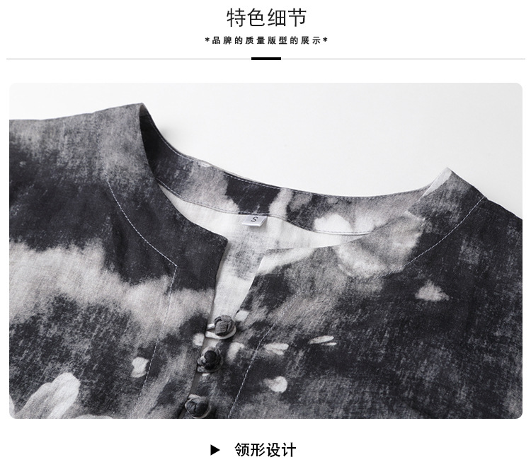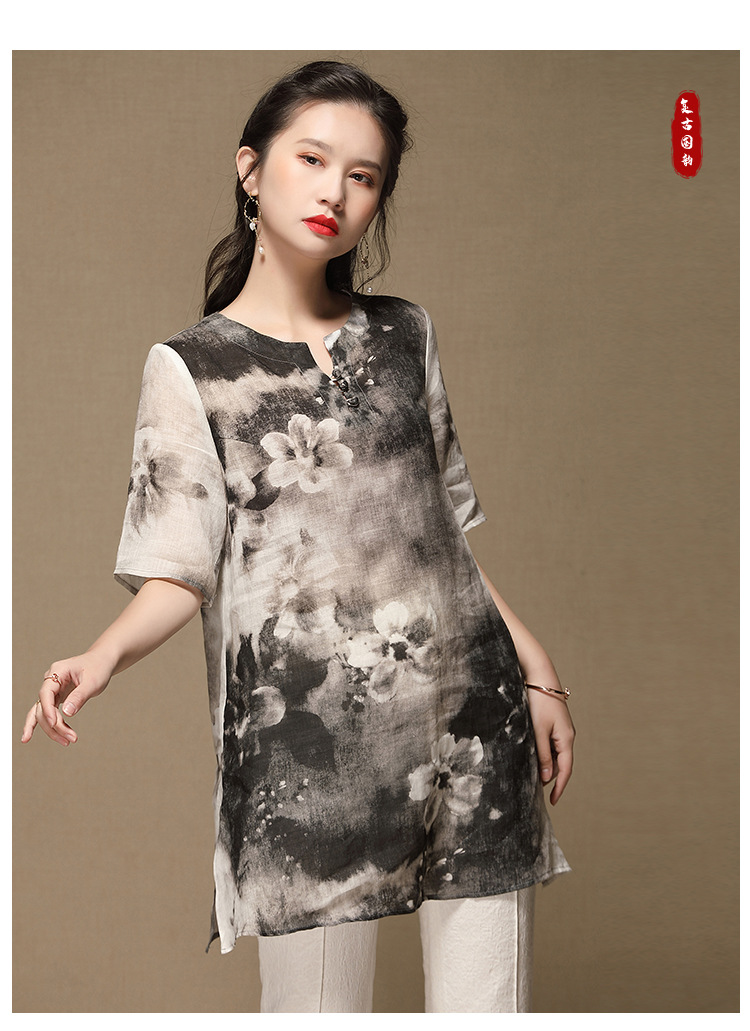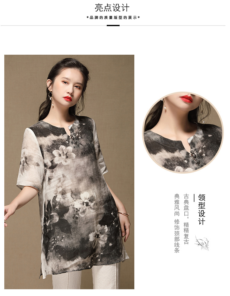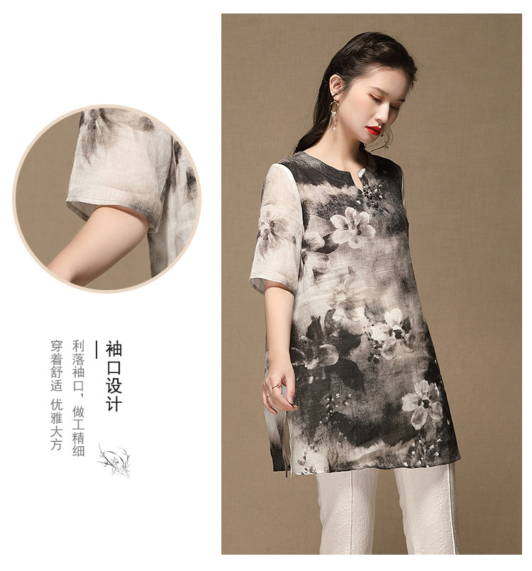 上海旗袍厂AYK-QF-200412水墨中长款国风改良圆领唐装2021春夏新款女装复古七分袖上衣女