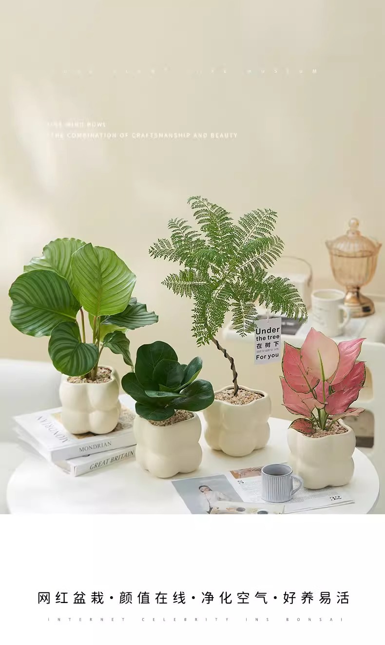 【网红盆栽,颜值在线】绿植室内花卉盆栽 办公室桌面摆件小盆景 植物发财树四季常青好养活 净化空气-QQ