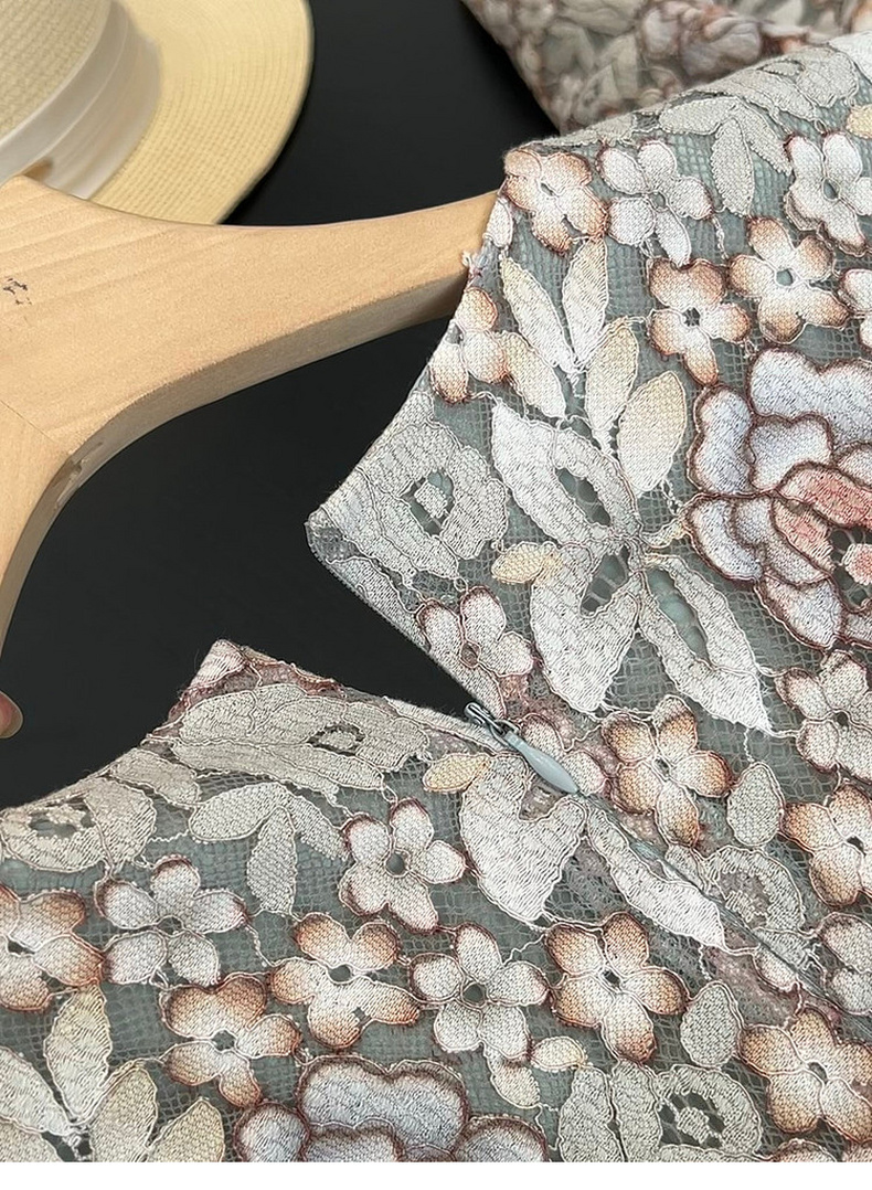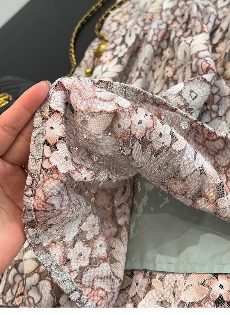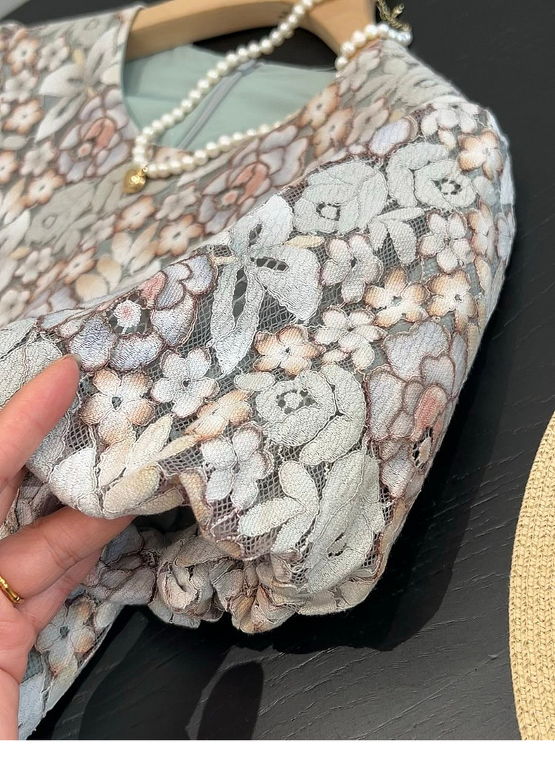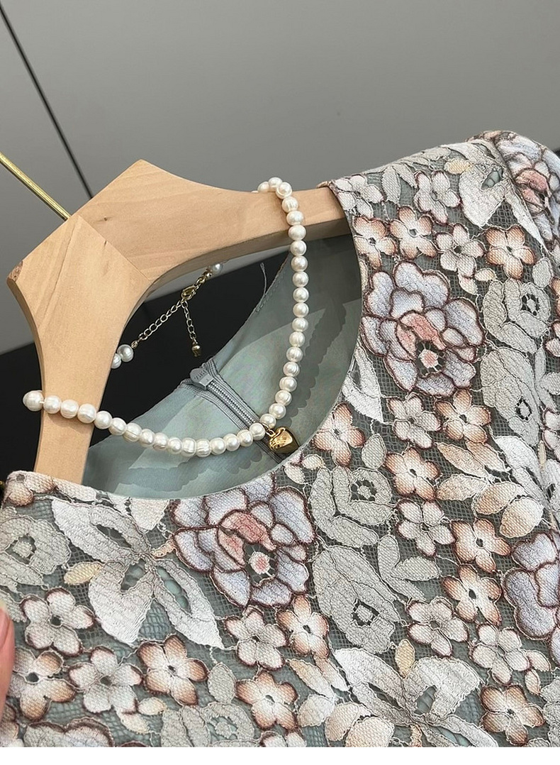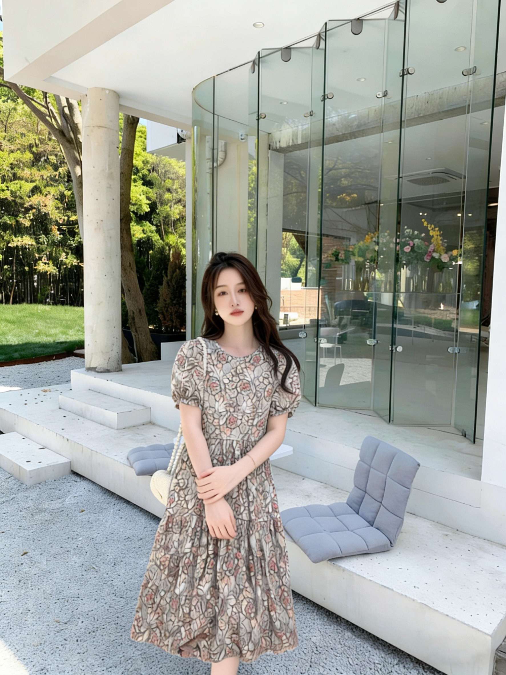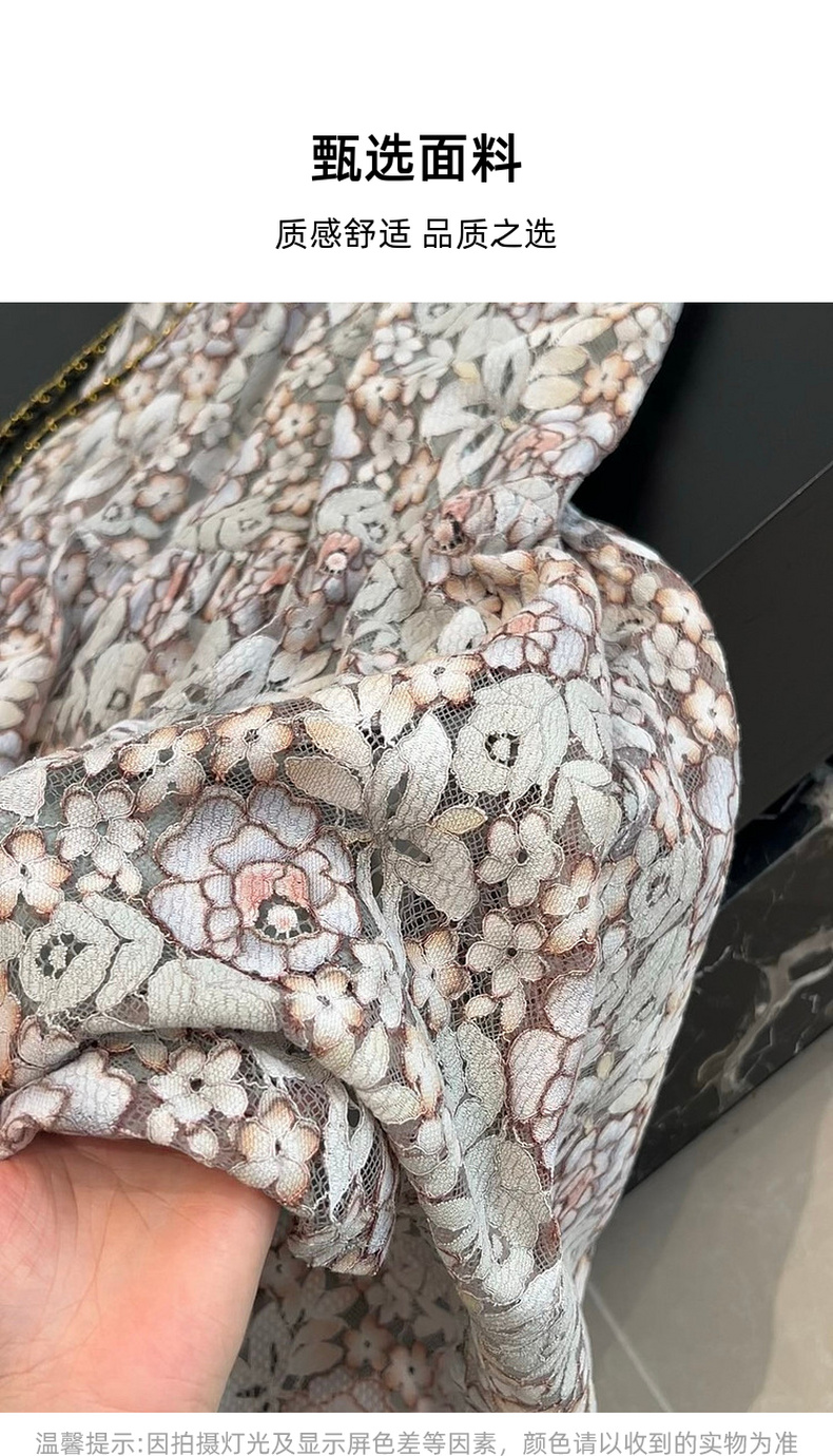 天猫同步【浪漫莫奈花园】拉夏贝尔/La Chapelle高端轻奢!简约花朵小众设计短袖长裙泡泡袖修身小裙