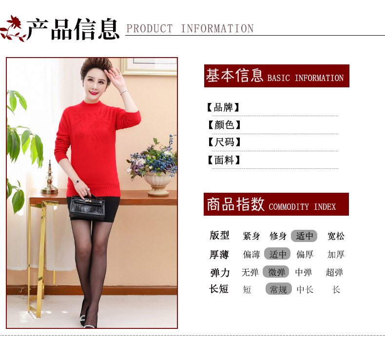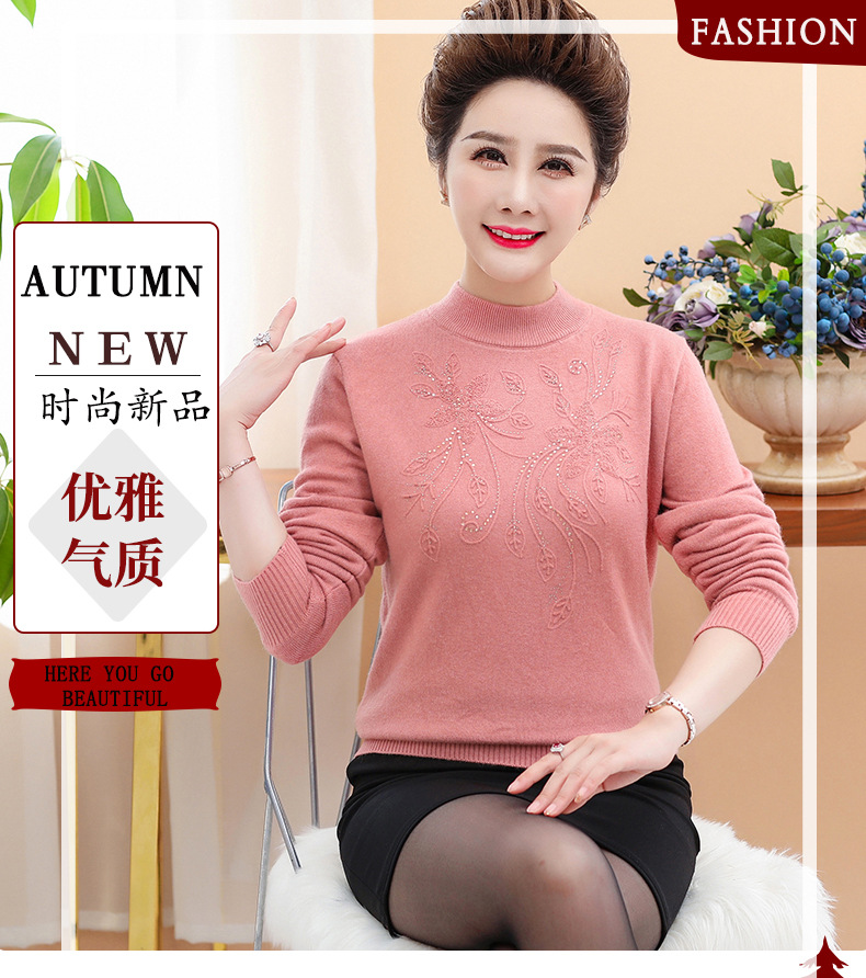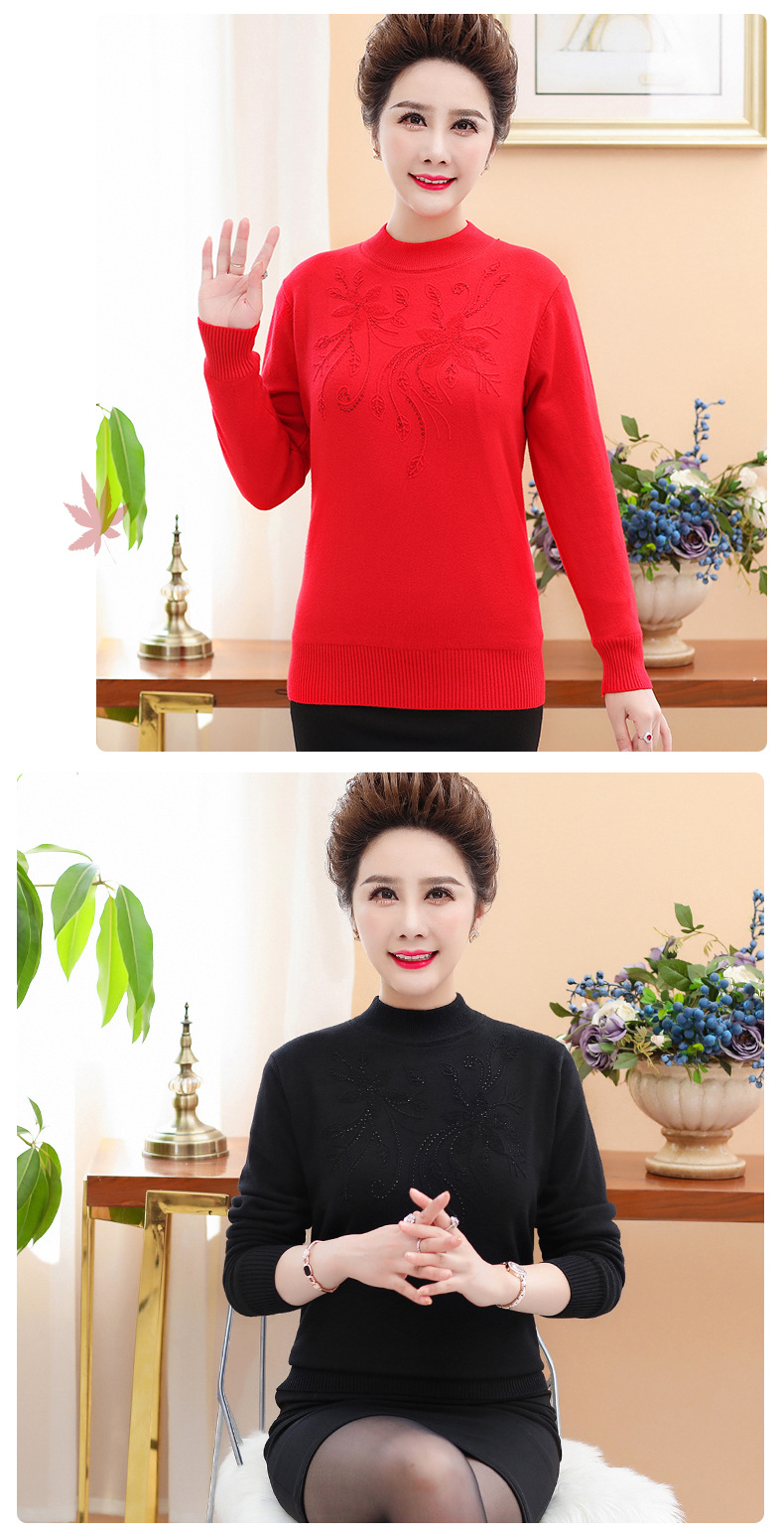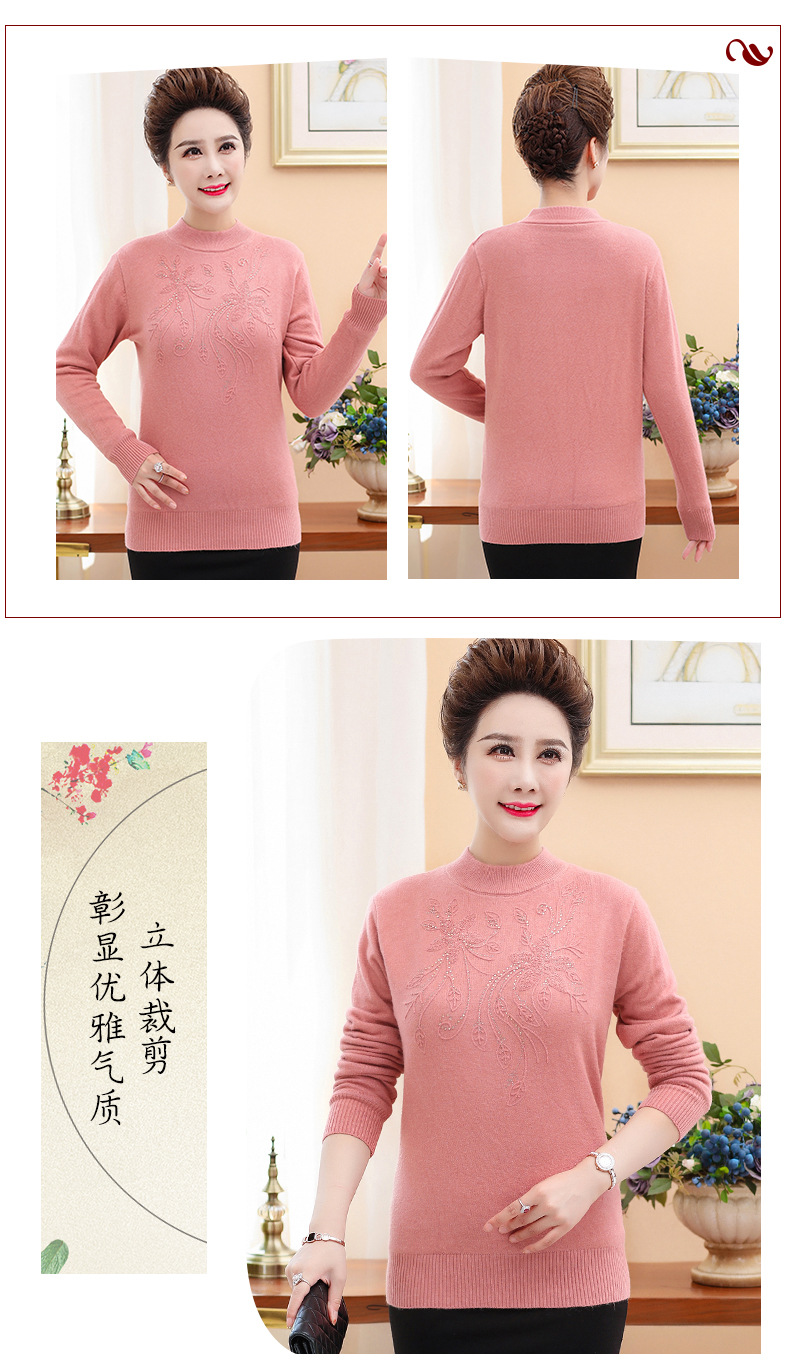BY-131冬季套头半高领加厚保暖妈妈装毛衣中年阔太太加绒打底衫