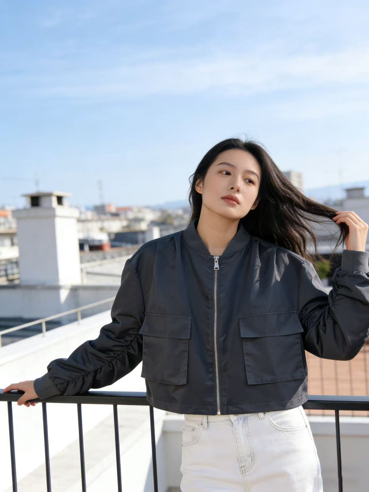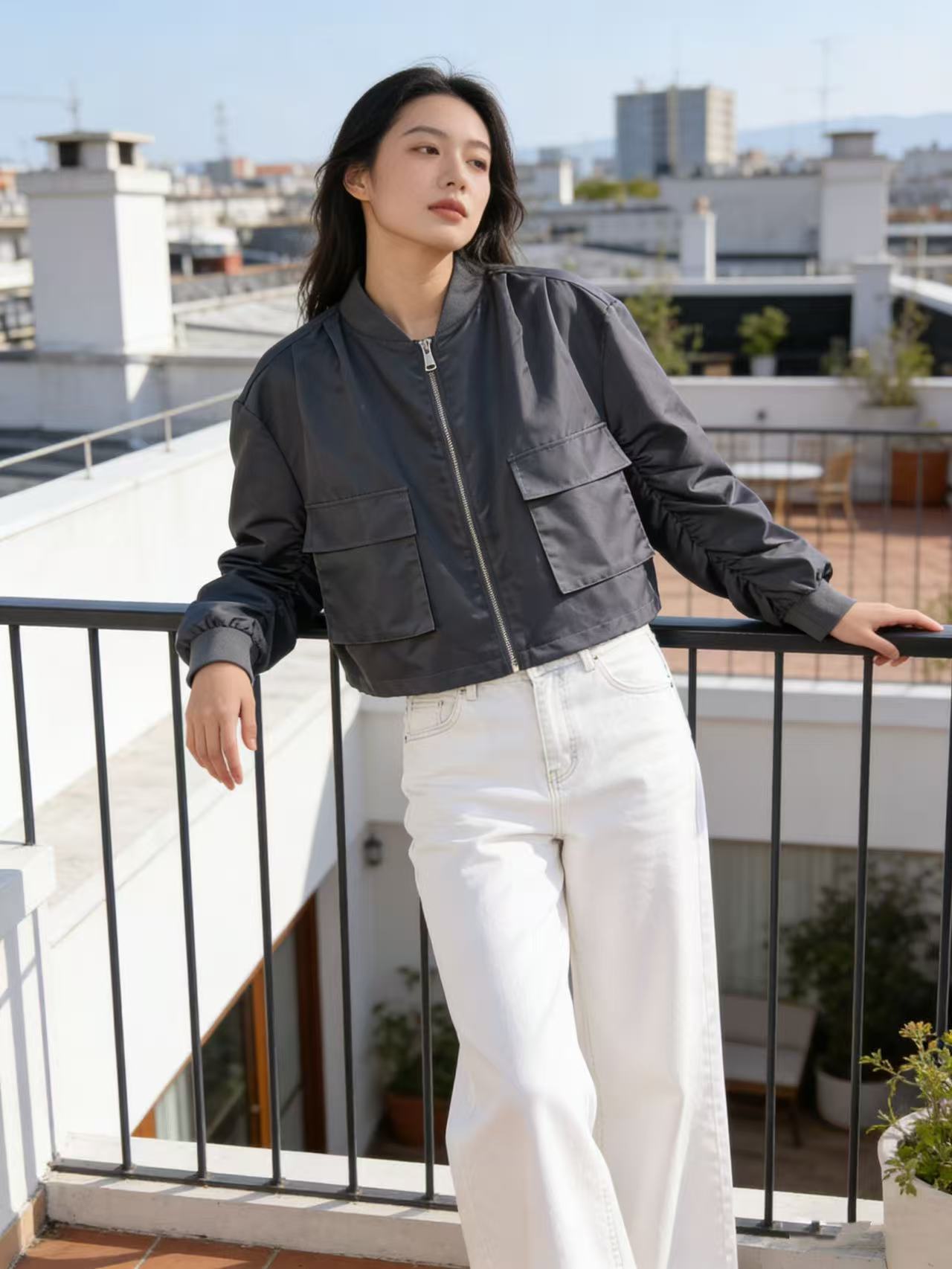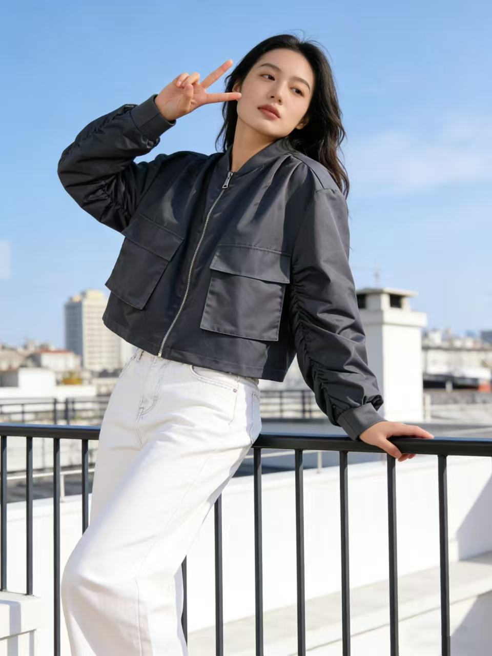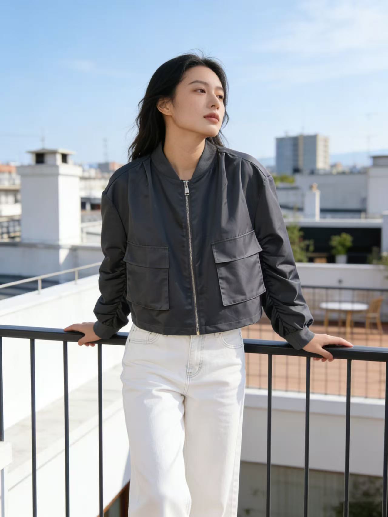 品牌特卖【外套】0911灰色棒球领夹克外套百搭女款-喜出