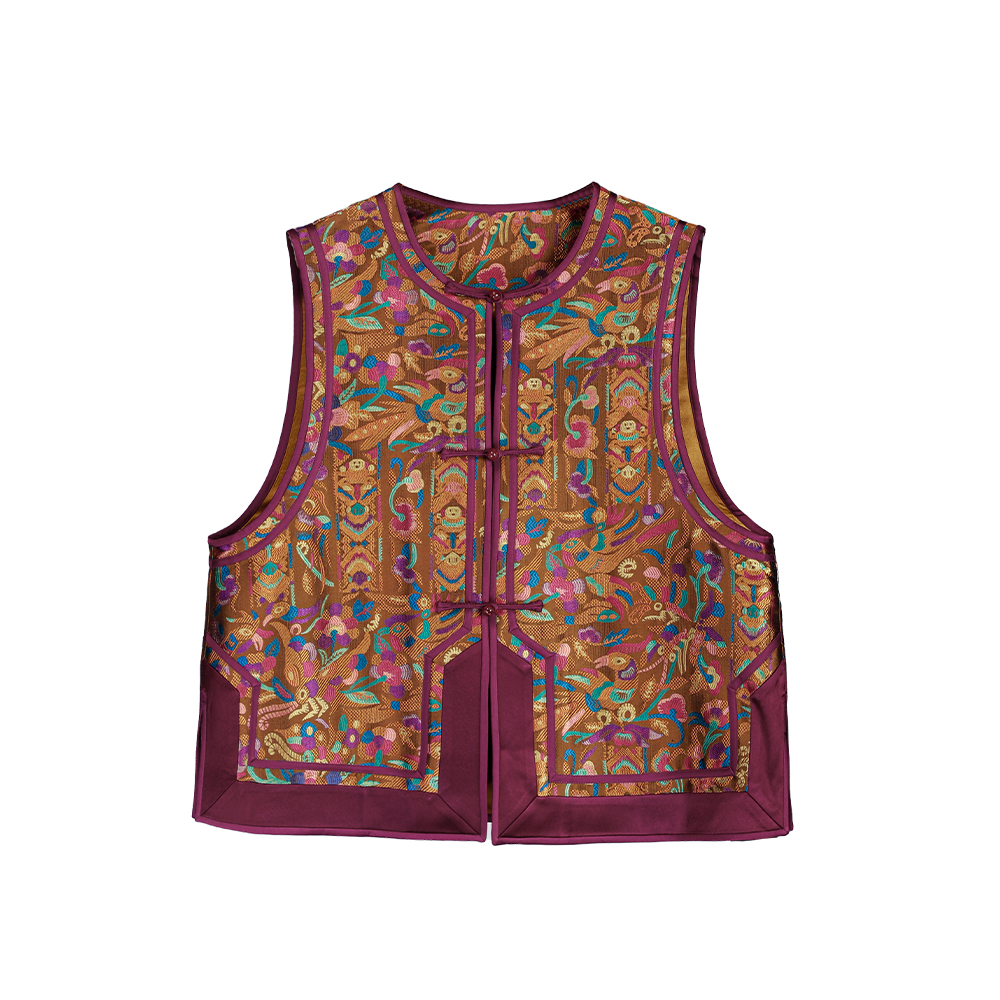 【咕咕同款】NANSONGSILK/NS新中式新款国风圆领提花盘扣新中式坎肩马甲M1D536106Y南宋